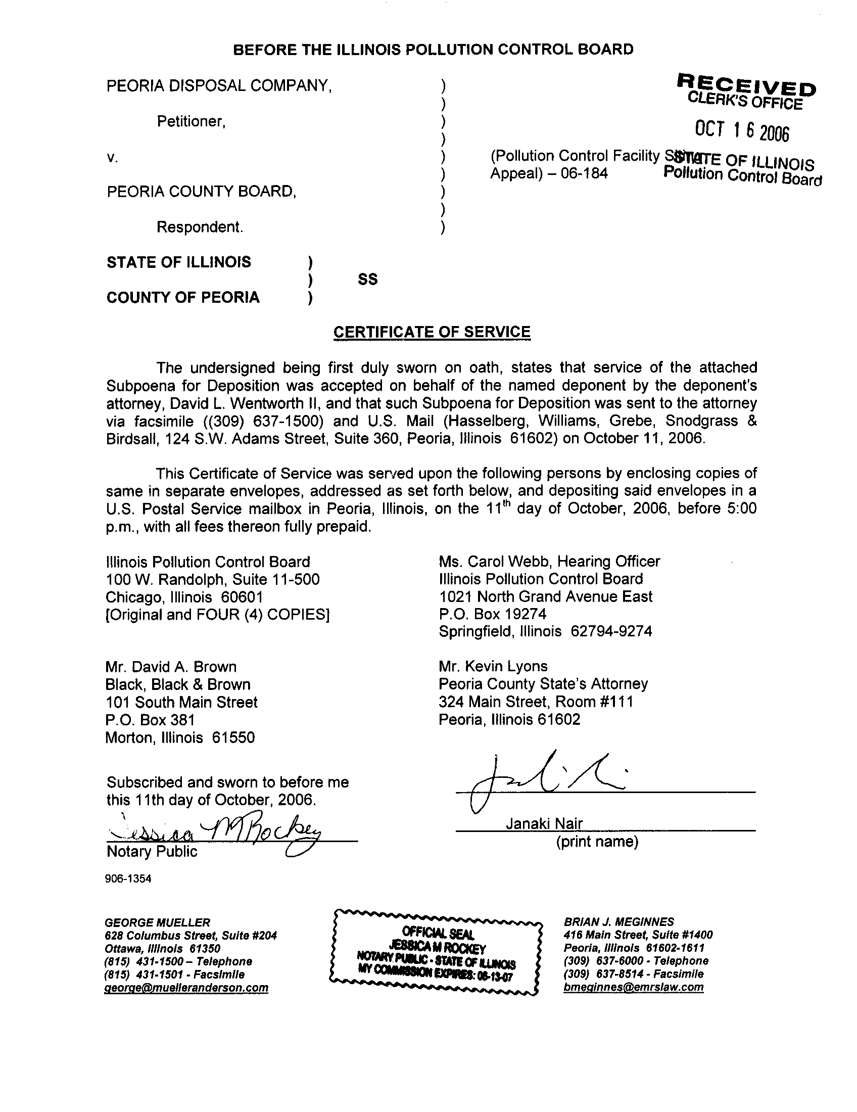 . Adams Street, Suite 360, Peoria, Illinois 61602) on October 11, 2006 .
