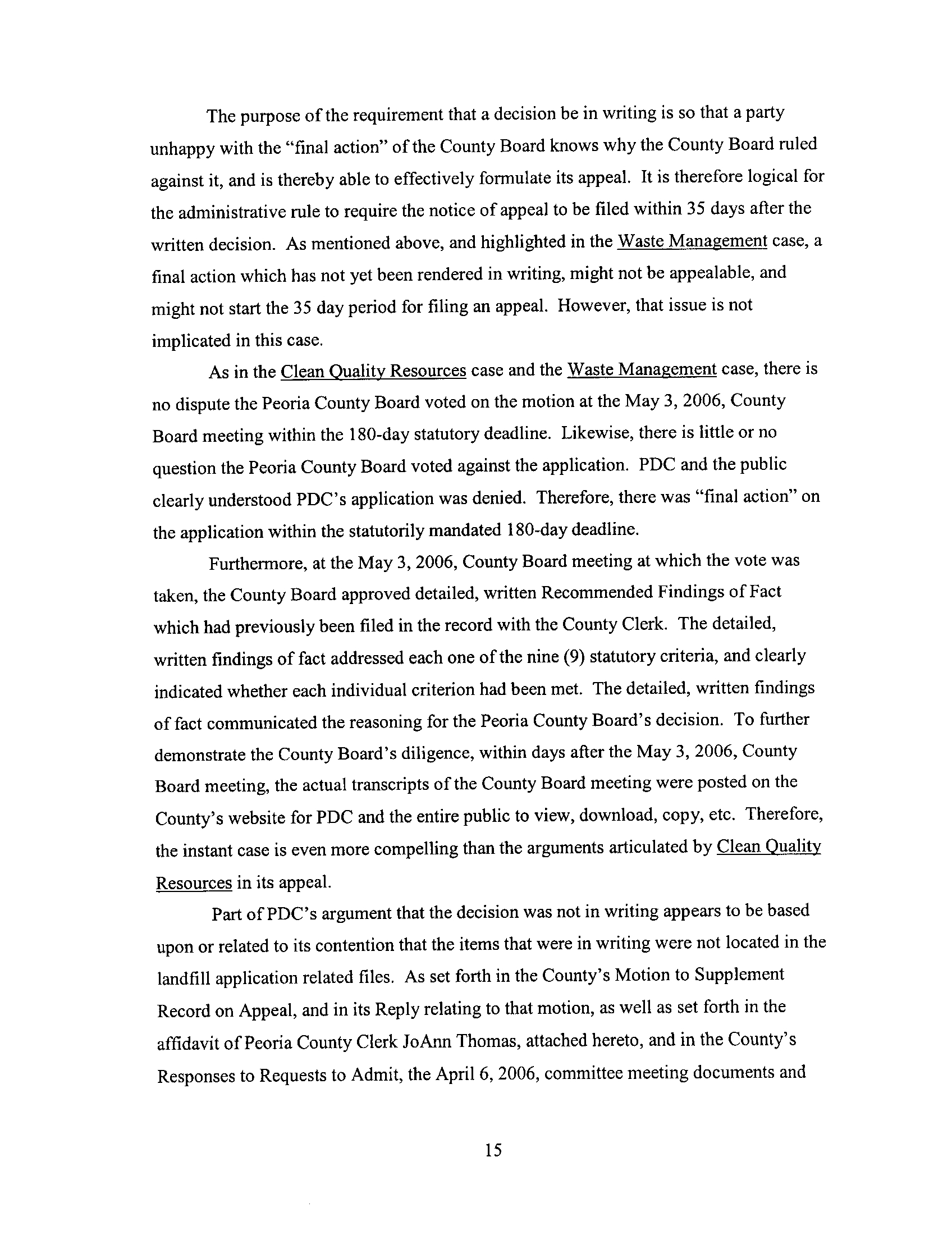 deadline, the Peoria County Board's approval of the detailed written findings of fact at