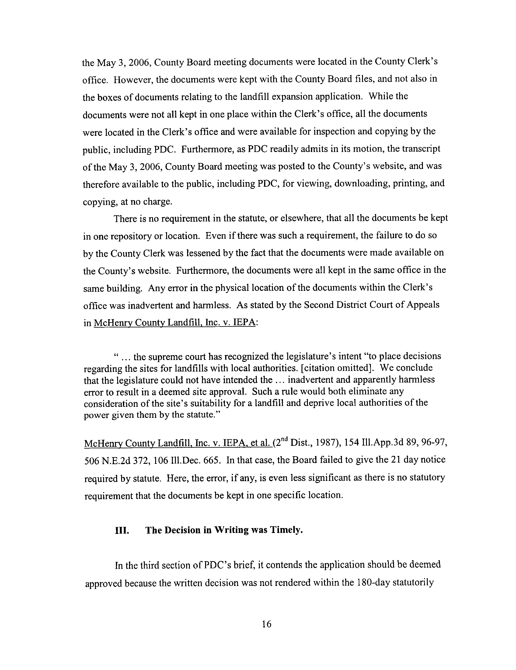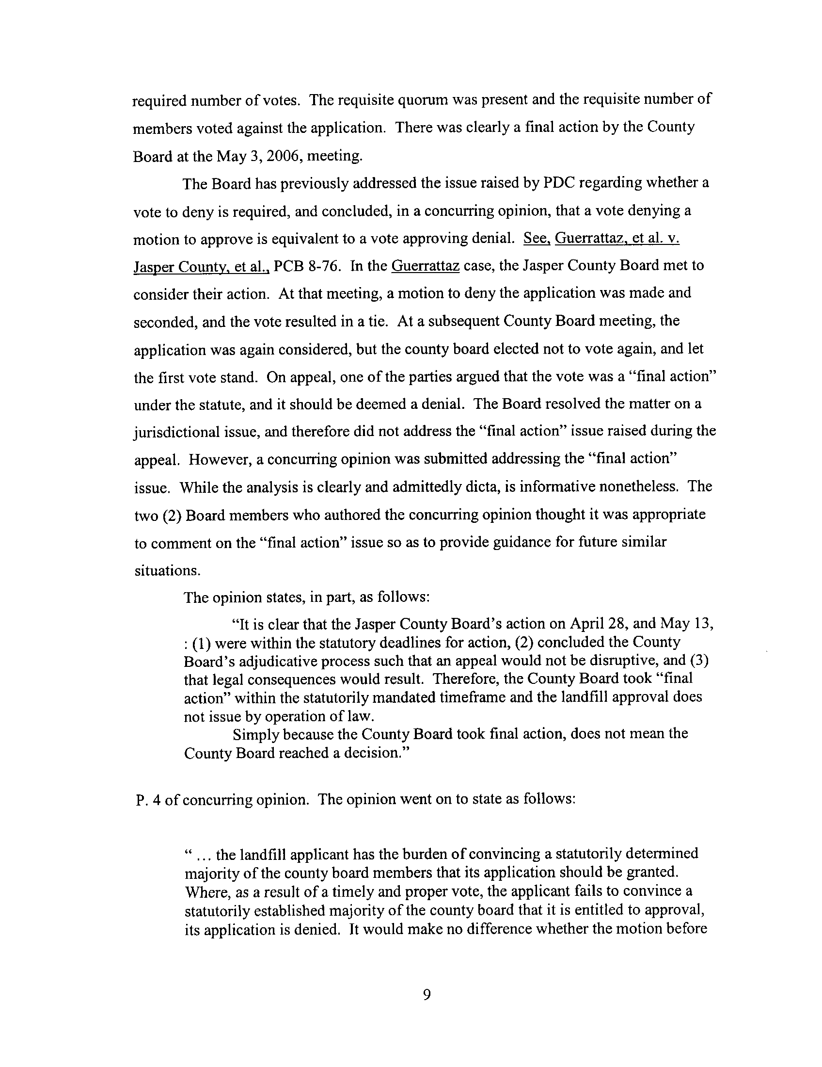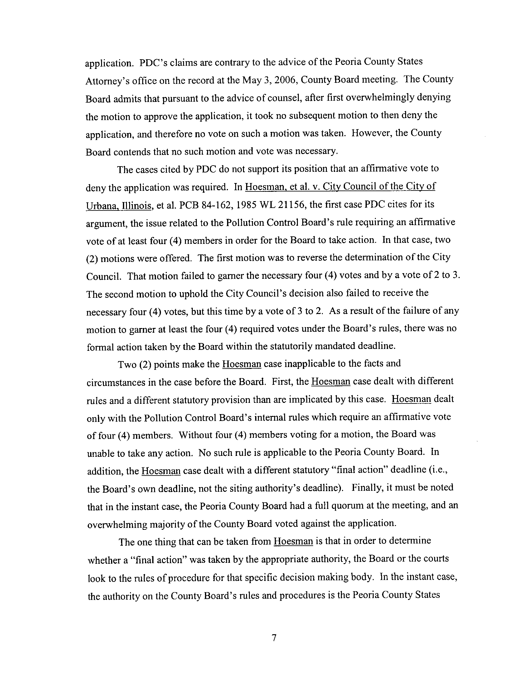 following the hearings, the County Board met and voted overwhelmingly against PDC's