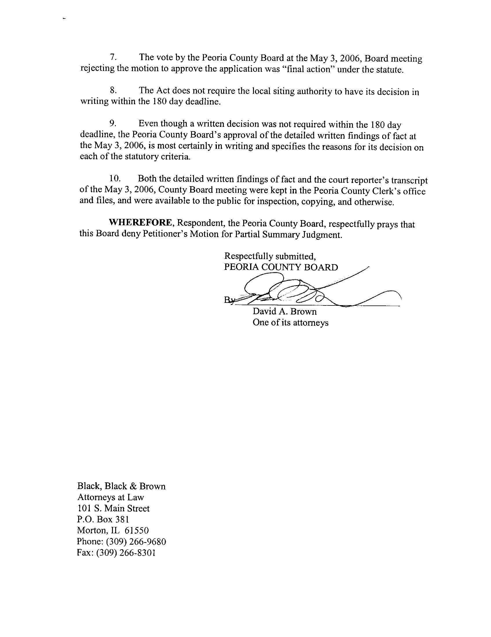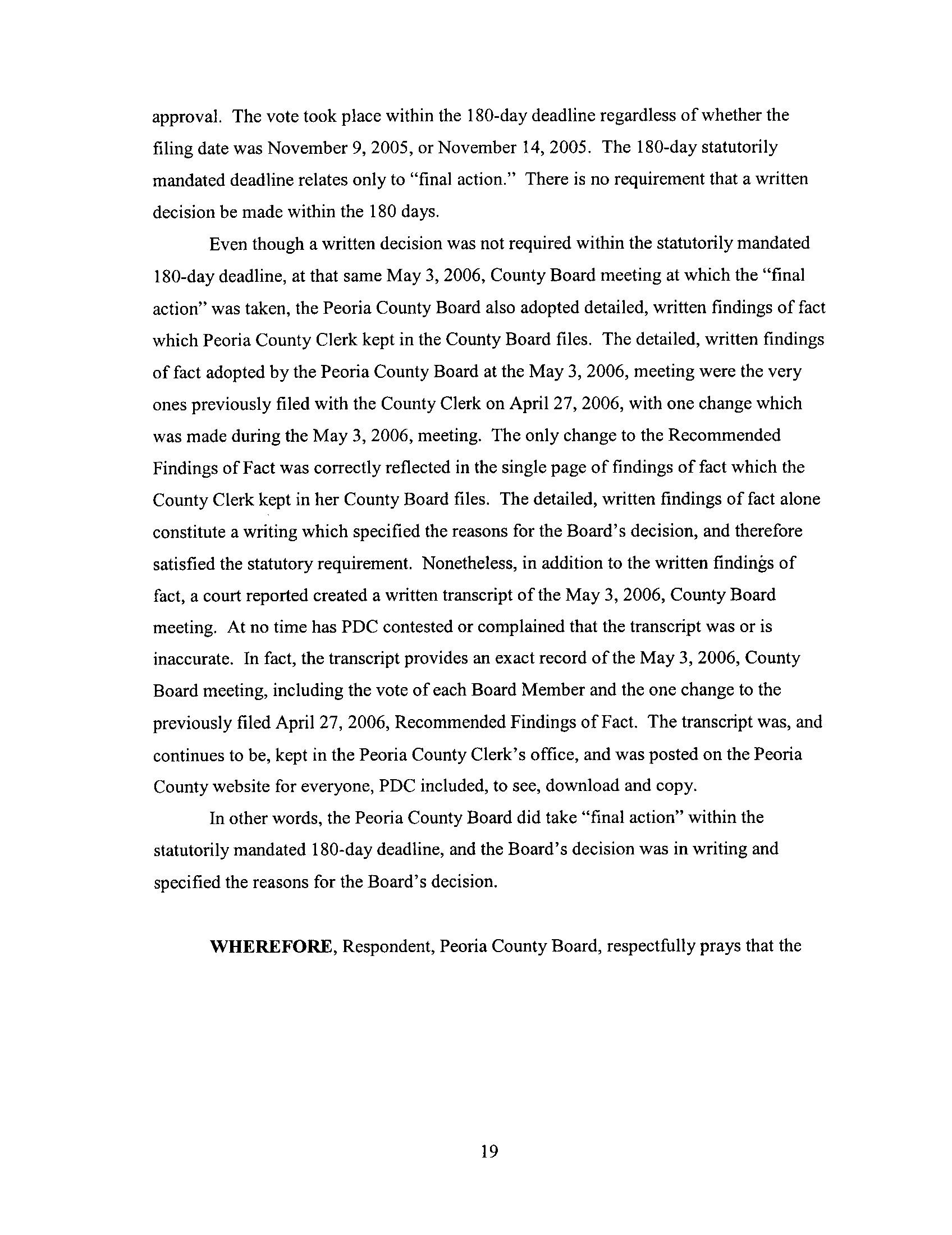 WHEREFORE, Respondent, the Peoria County Board, respectfully prays that