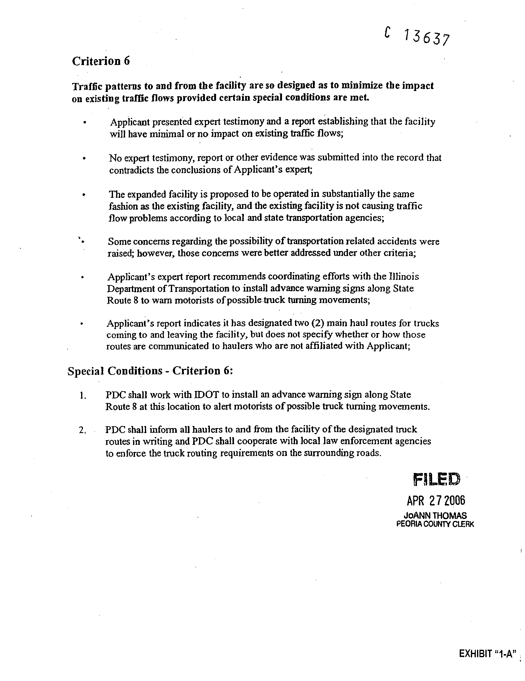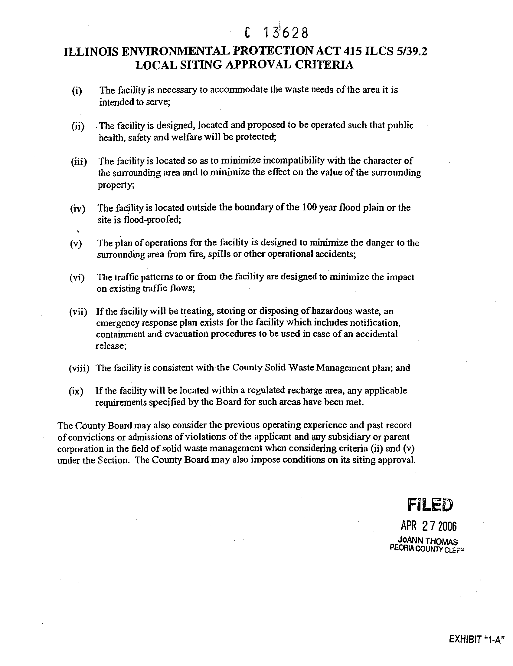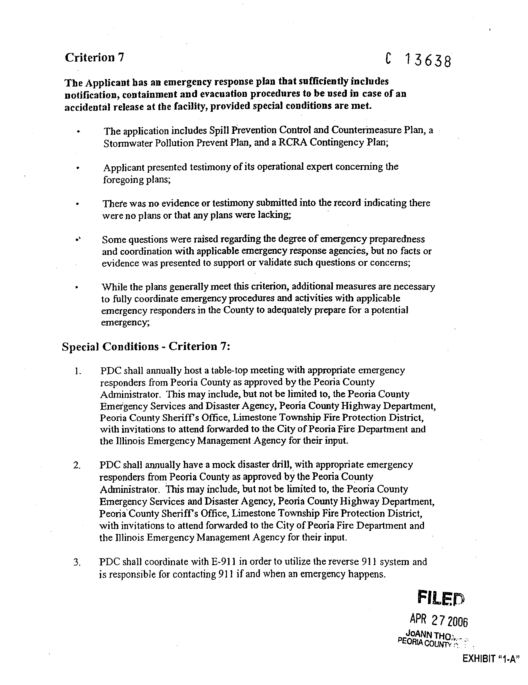 At the May 3, 2006, the Peoria County Board approved detailed written