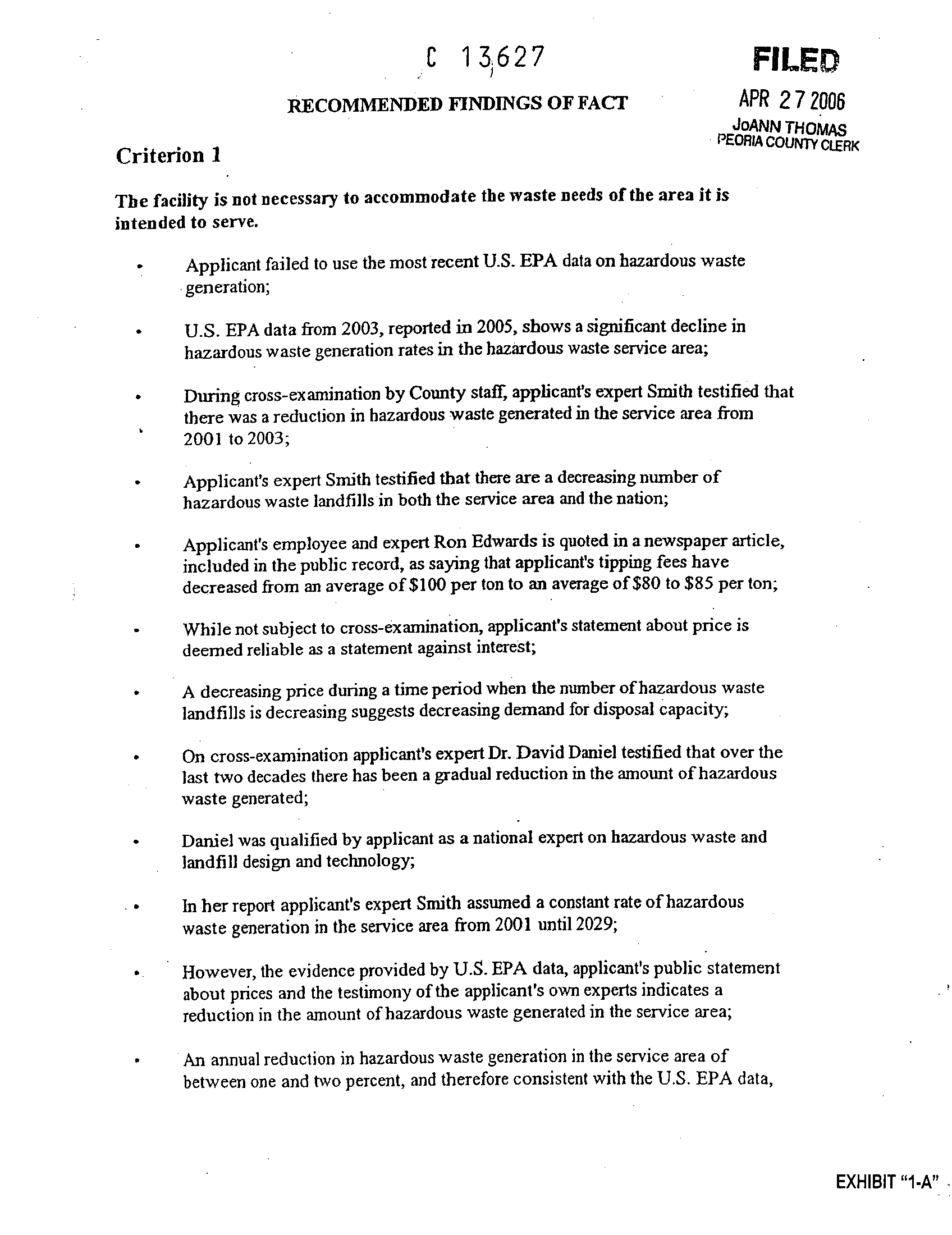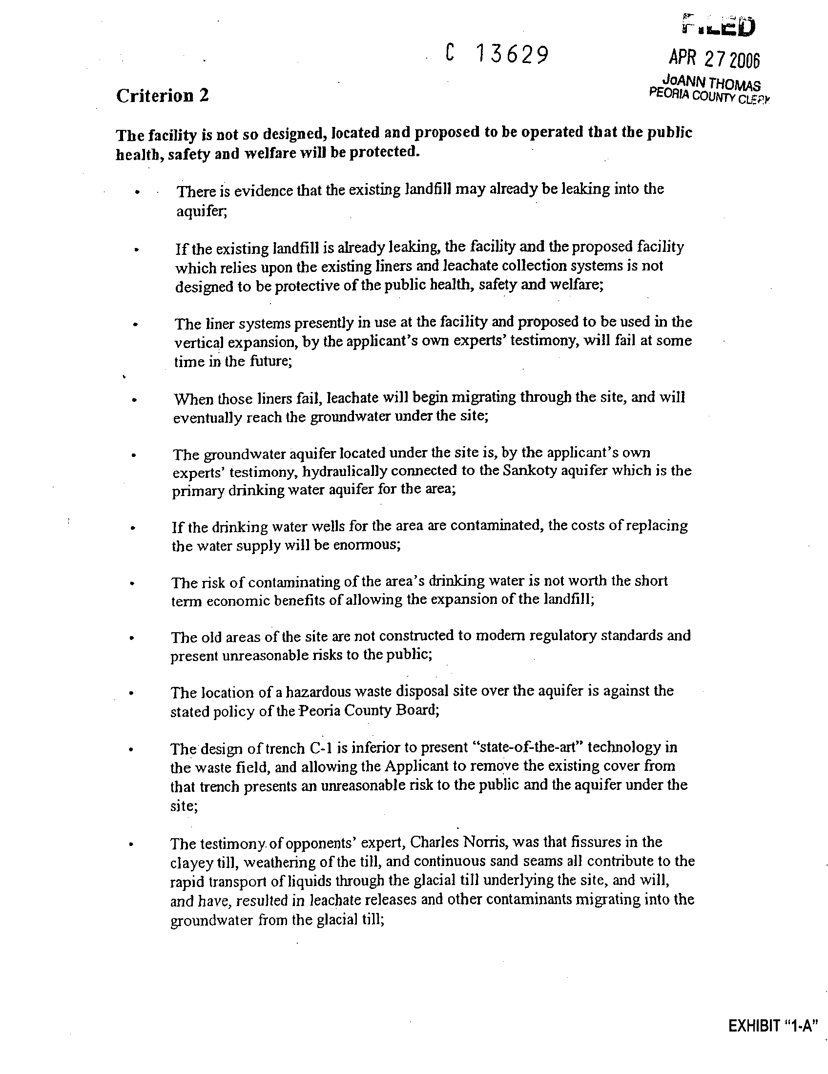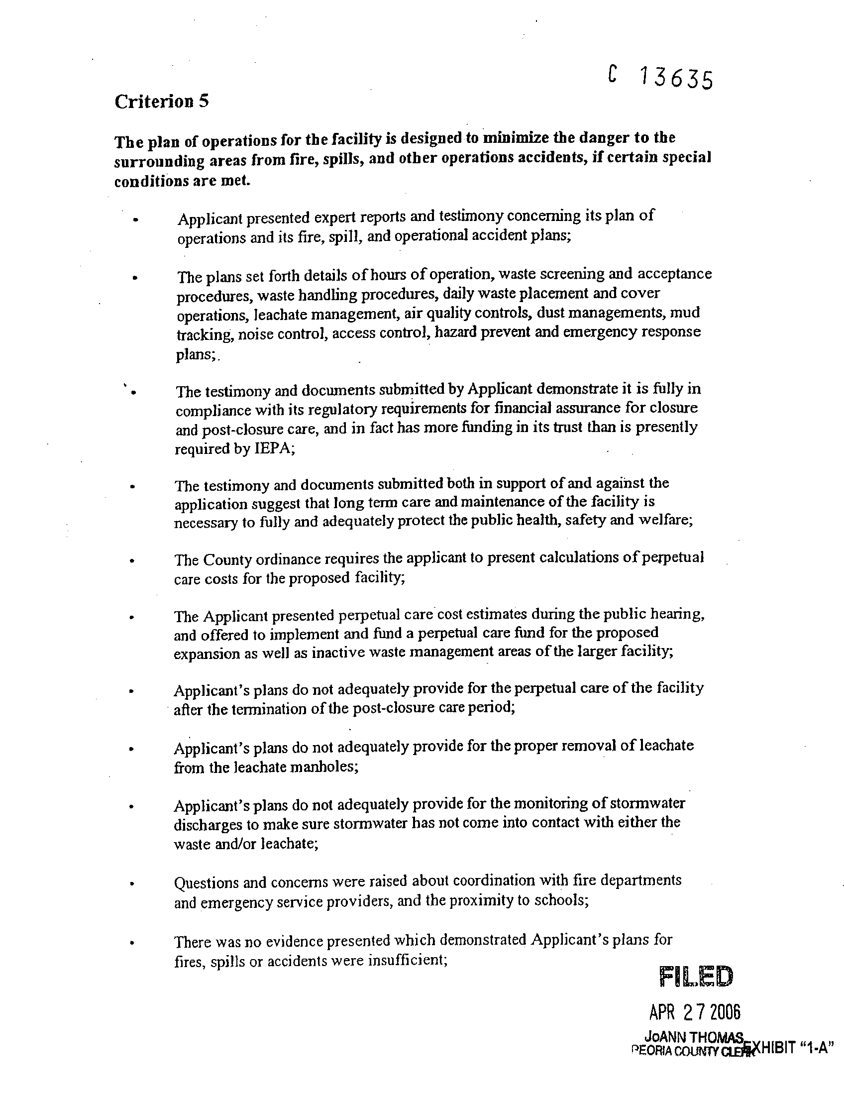 At the May 3, 2006, the Peoria County Board approved detailed written