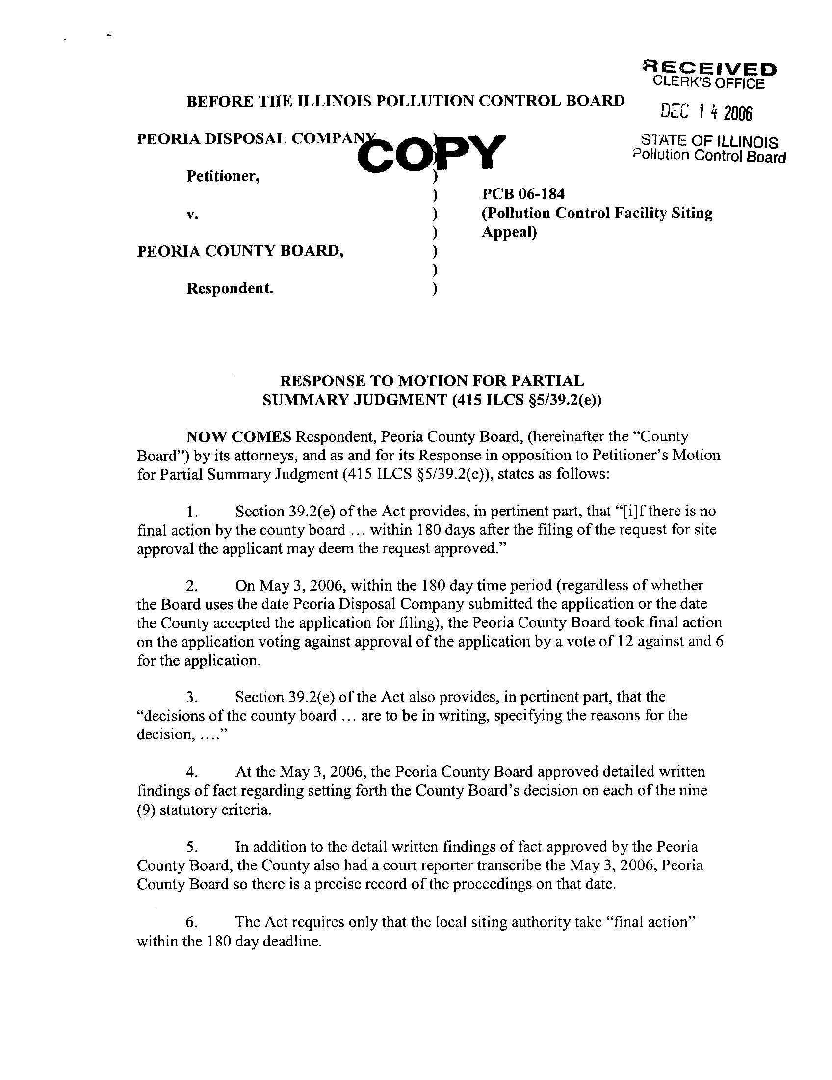 to Petitioner's Motion for Summary Judgment on 415 ILCS § 5/39