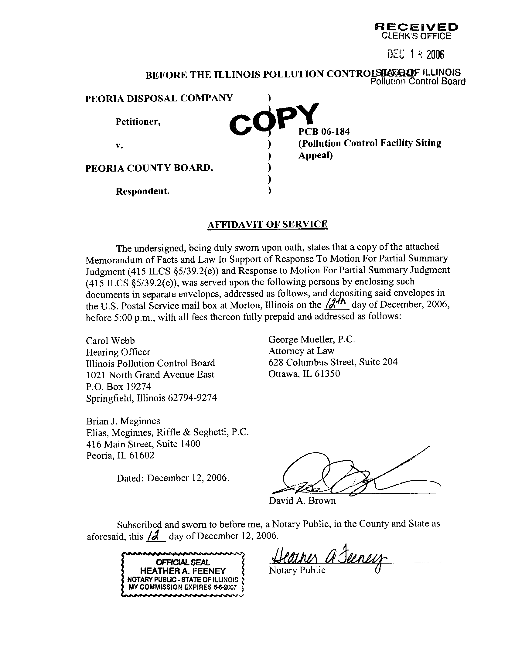 County Board, the County also had a court reporter transcribe the May 3, 2006, Peoria