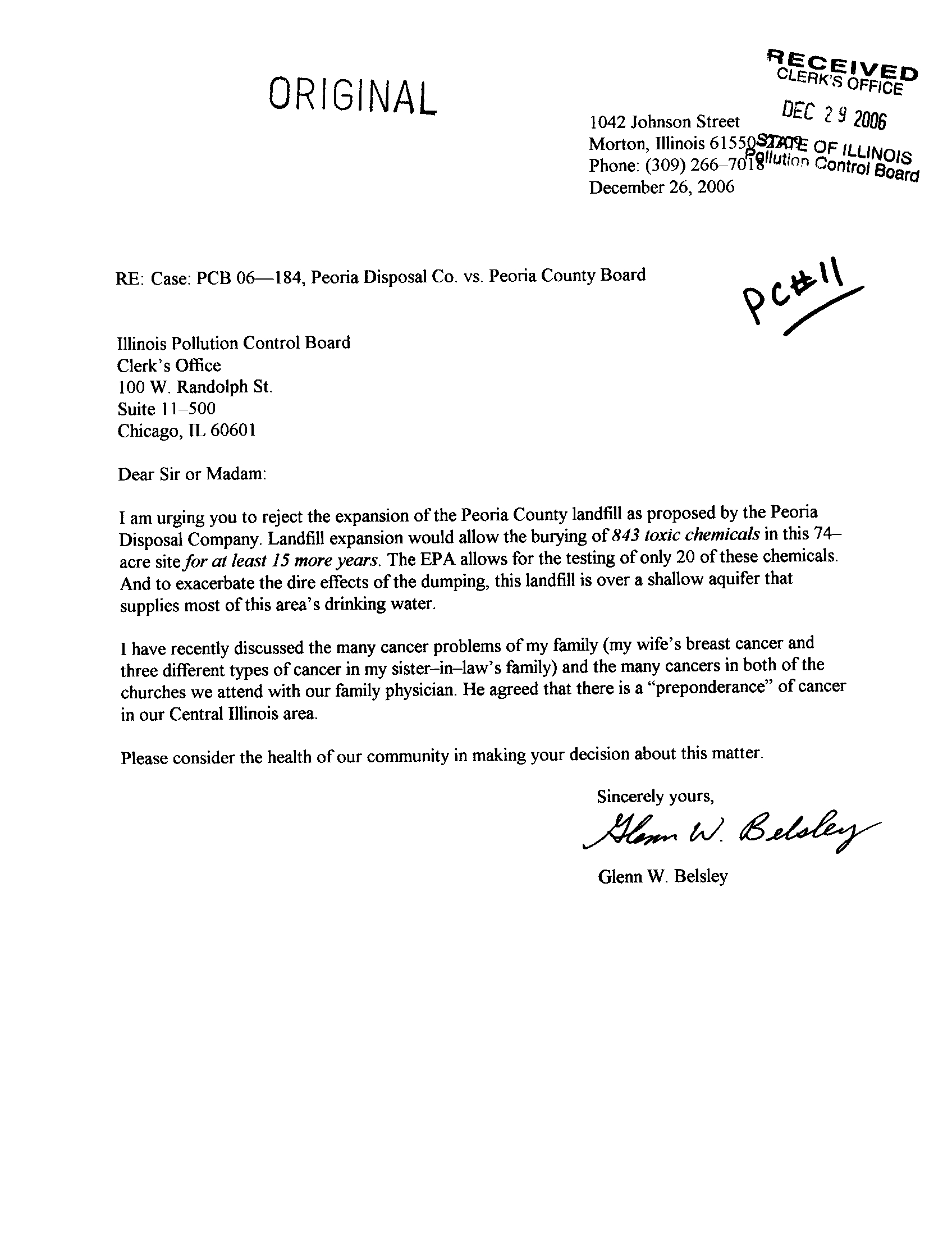 I am urging you to reject the expansion of the Peoria County landfill as proposed by the Peoria