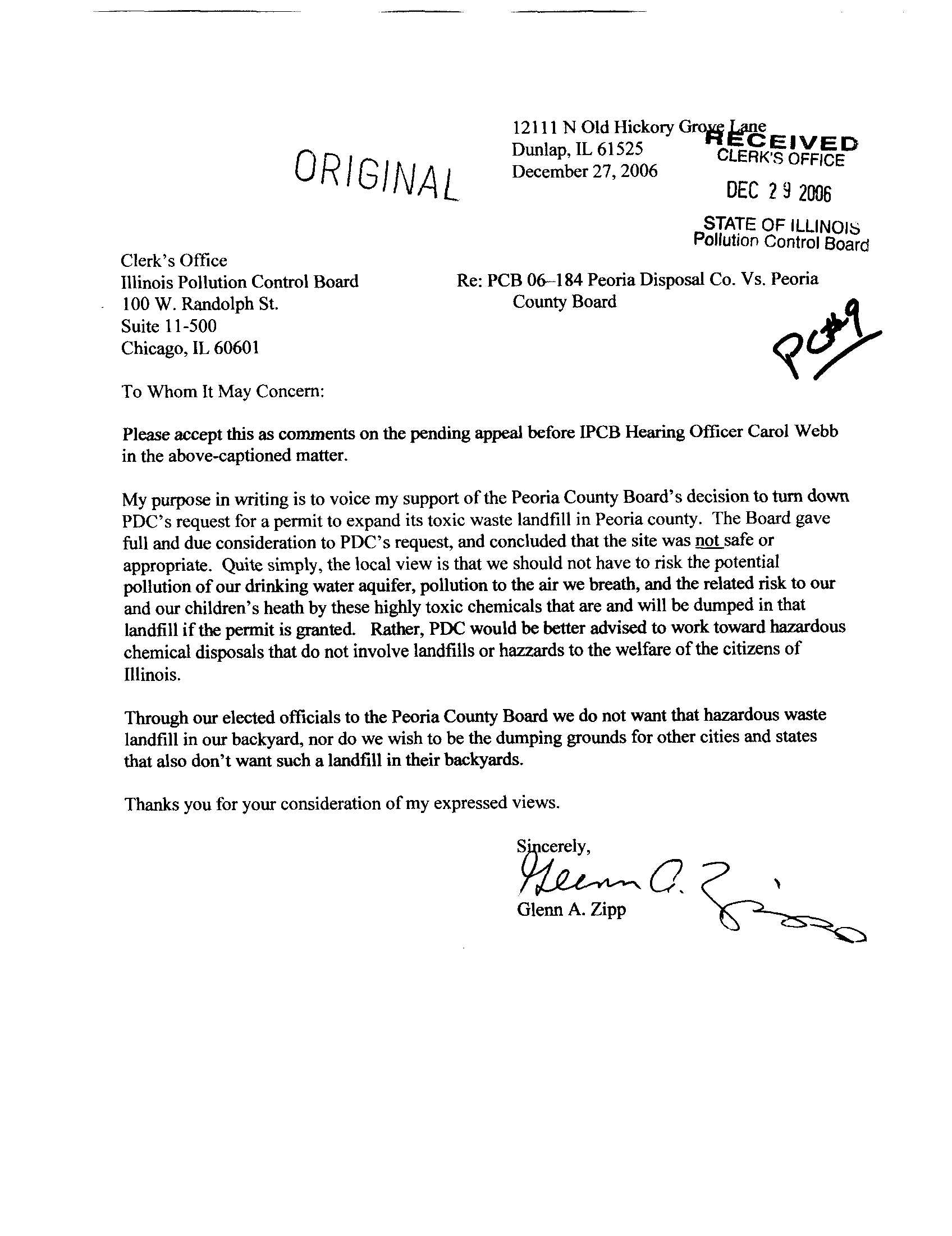 Through our elected officials to the Peoria County Board we do not want that hazardous waste