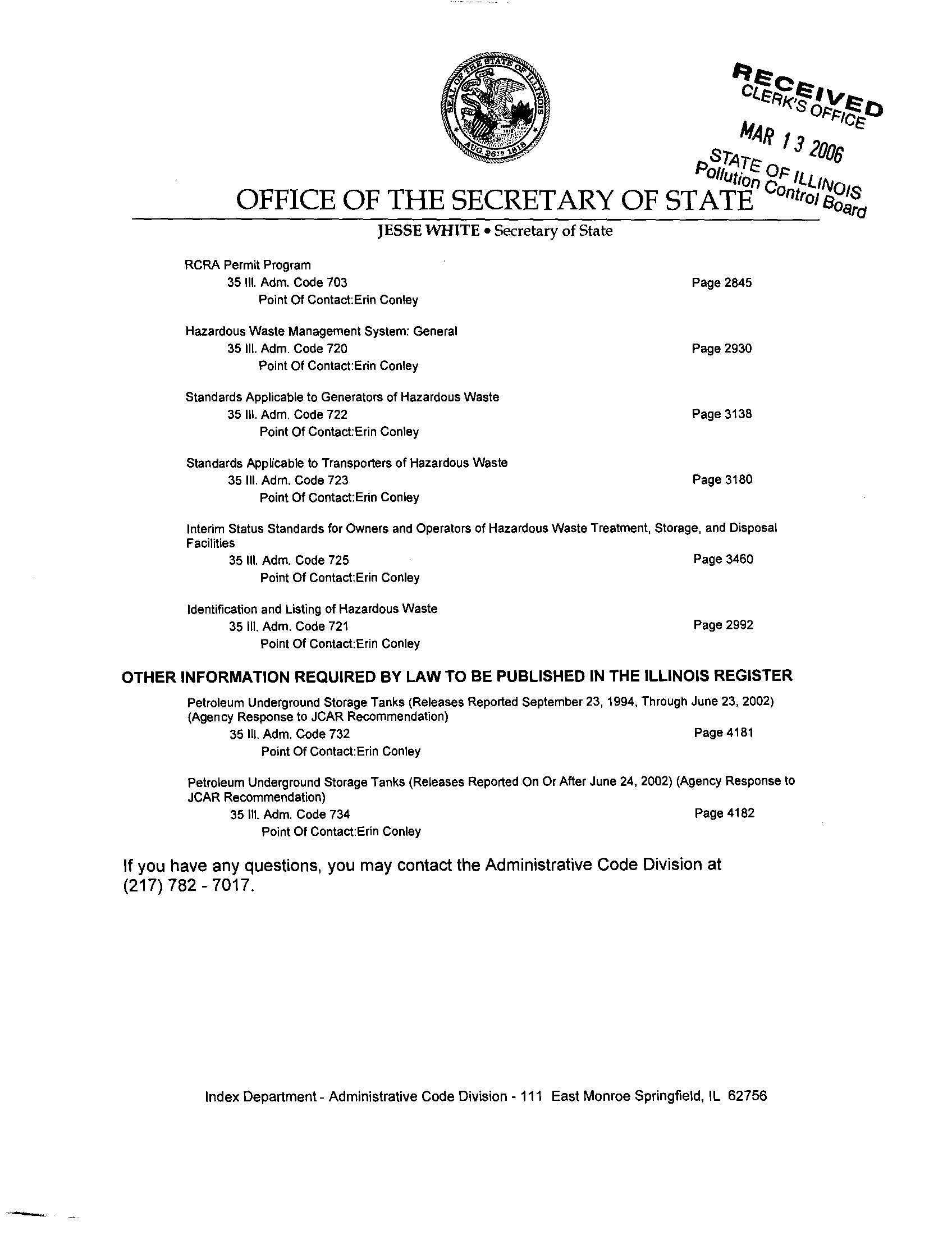 Volume 30, Issue 10 of the Illinois Register, dated 03/10/2006 .