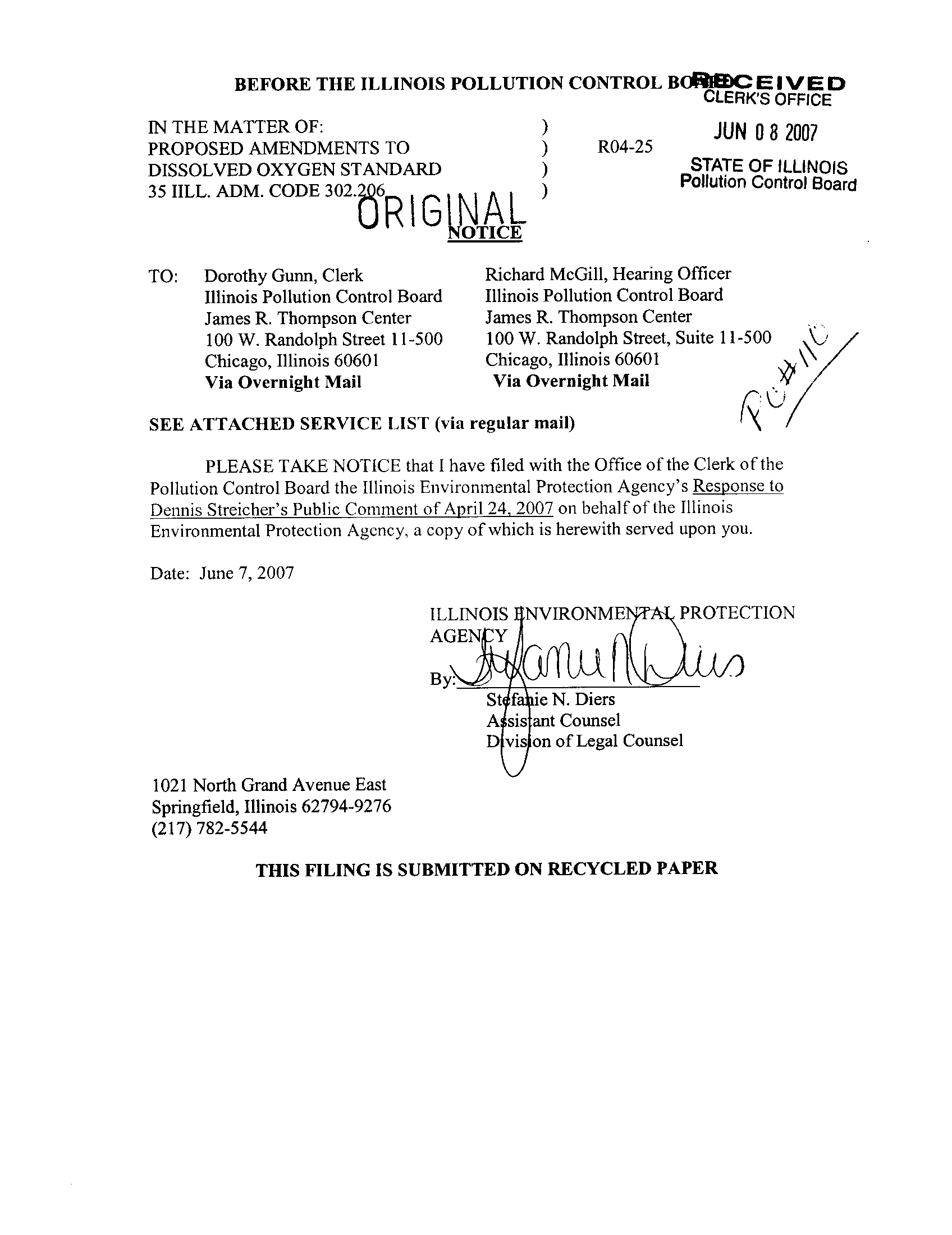 The Illinois Environmental Protection Agency ("Illinois EPA") hereby