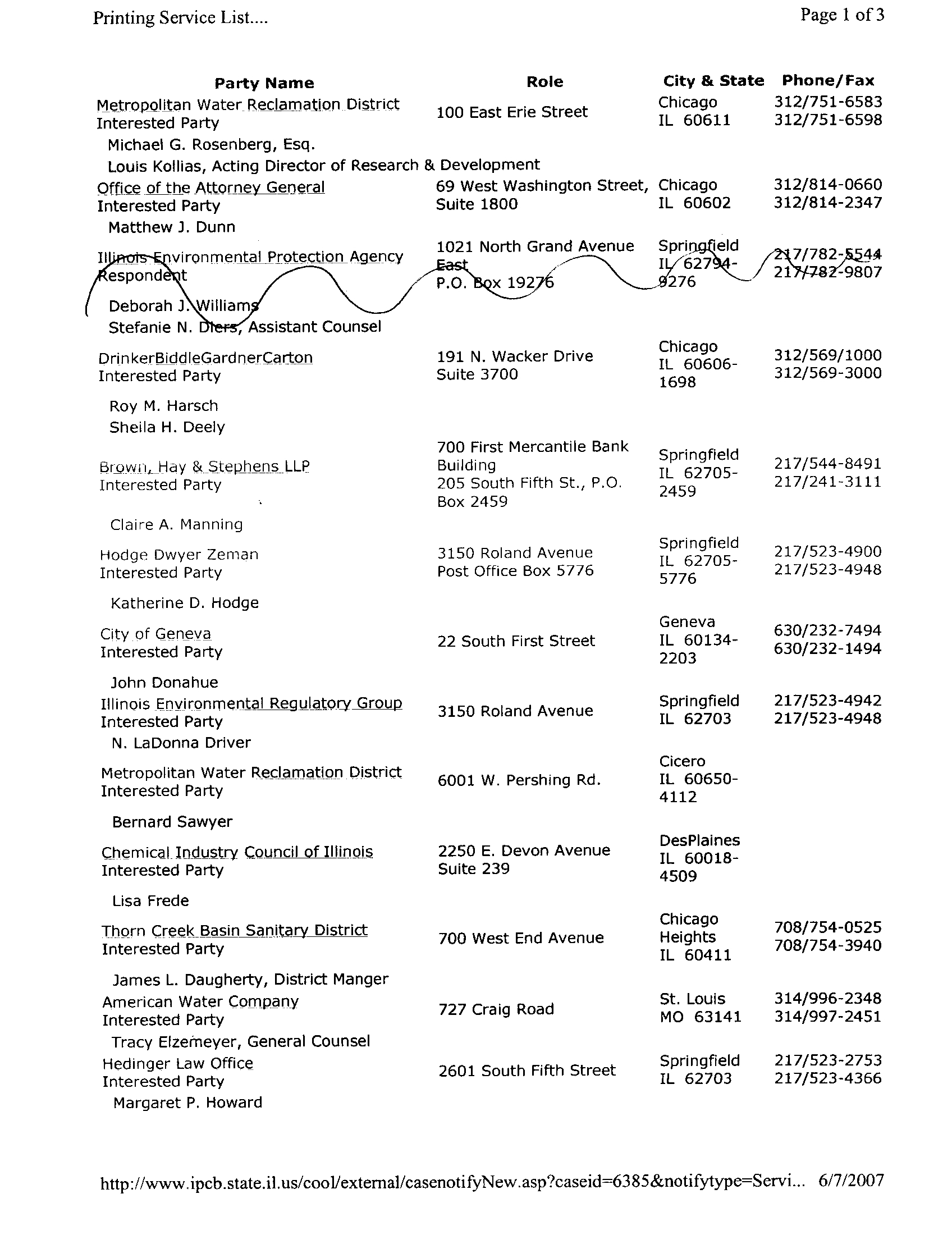 SEE ATTACHED SERVICE LIST (via regular mail)