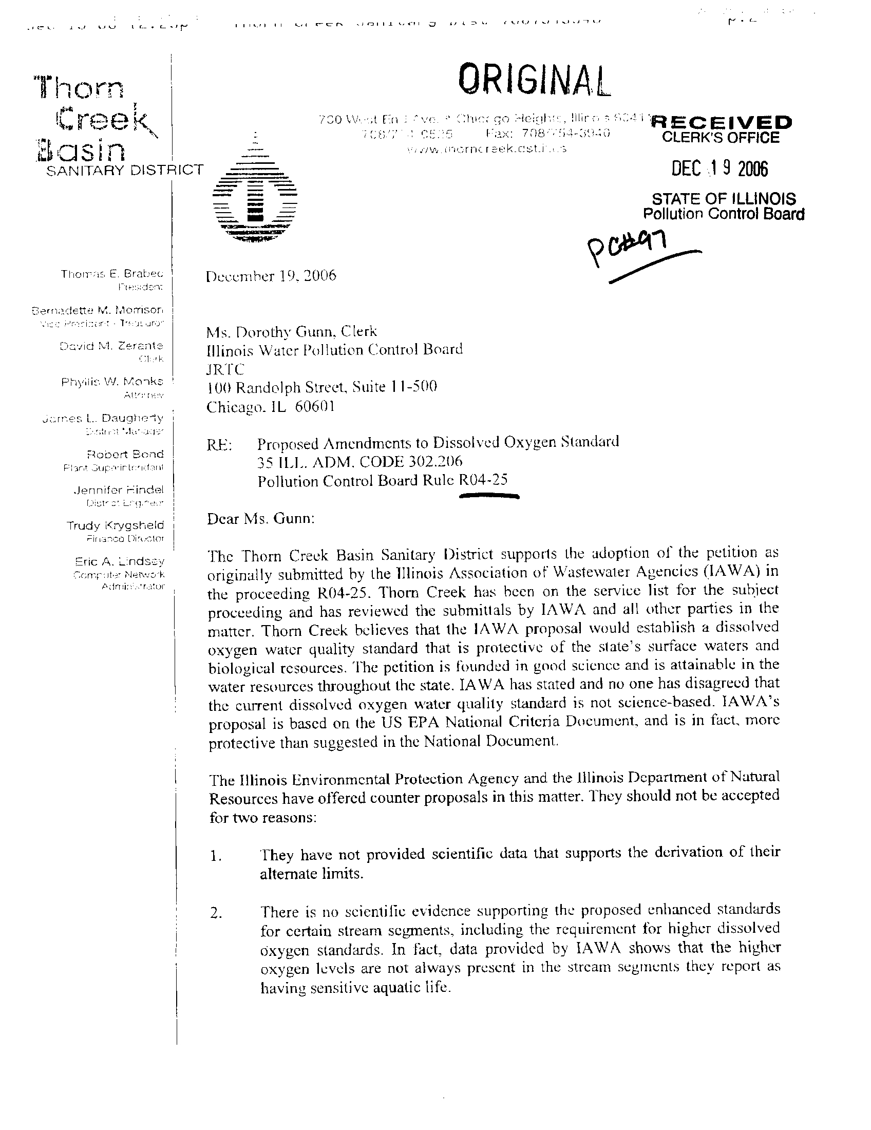 Thorn Creek appreciates this opportunity to offer comments in relationship to R04-