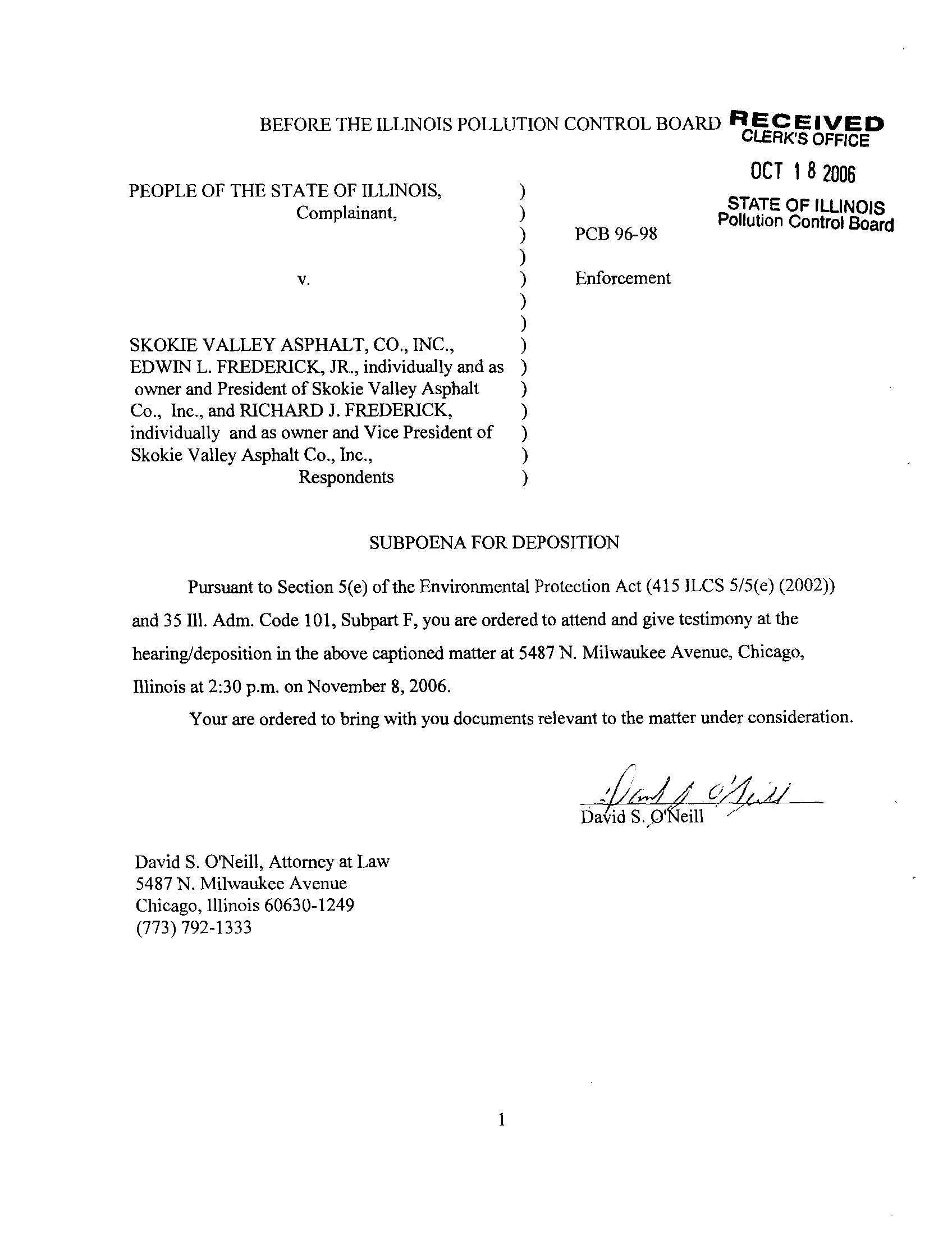 and 35111 . Adm. Code 101, Subpart F, you are ordered to attend and give testimony at the