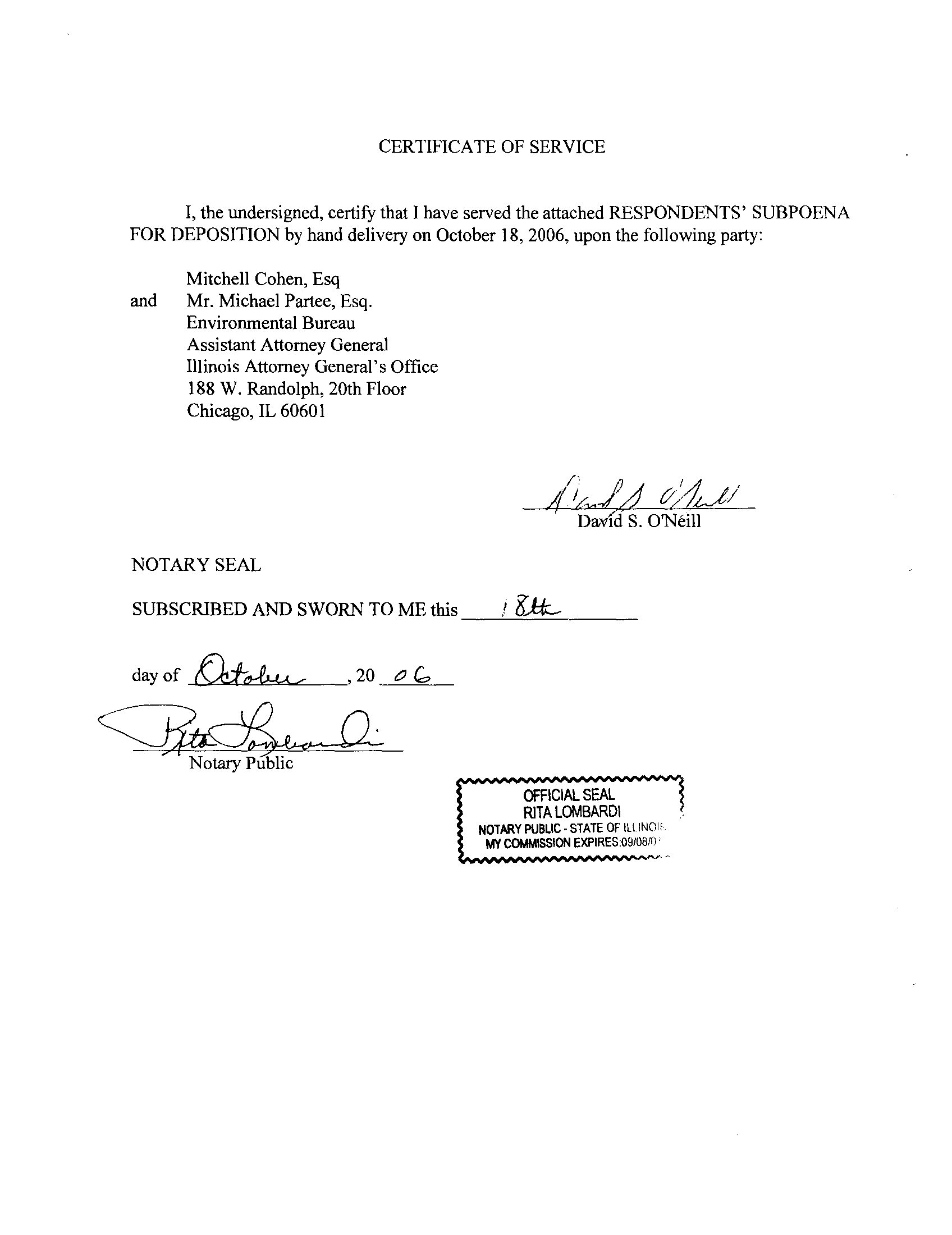 I, the undersigned, certify that I have served the attached RESPONDENTS' SUBPOENA