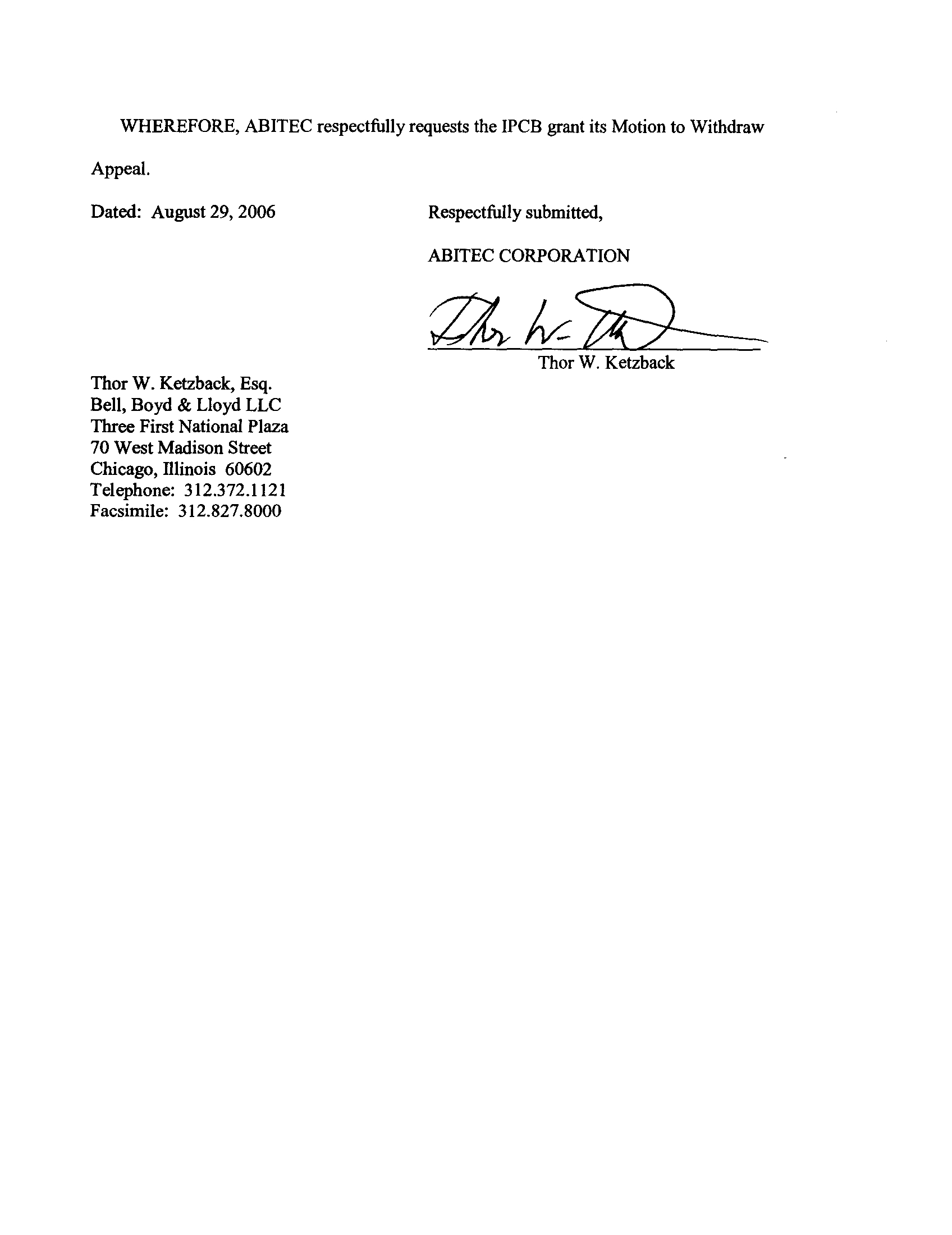 WHEREFORE, ABITEC respectfully requests the IPCB grant its Motion to Withdraw