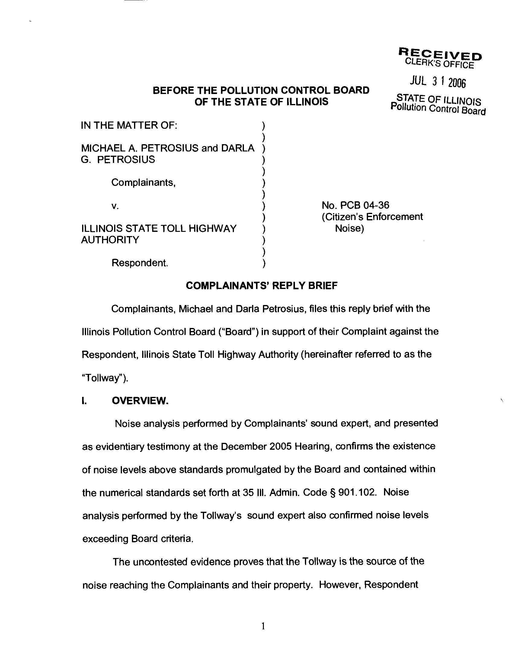 Complainants, Michael and Darla Petrosius, files this reply brief with the