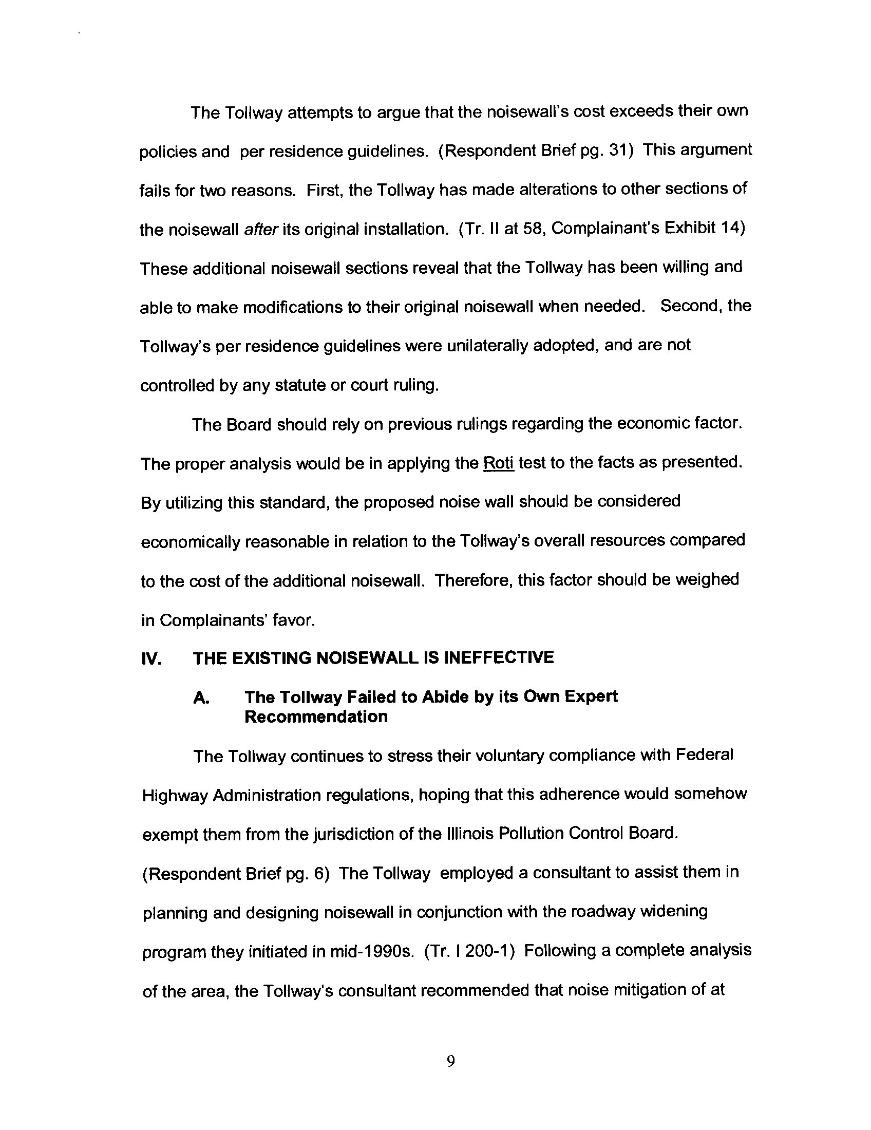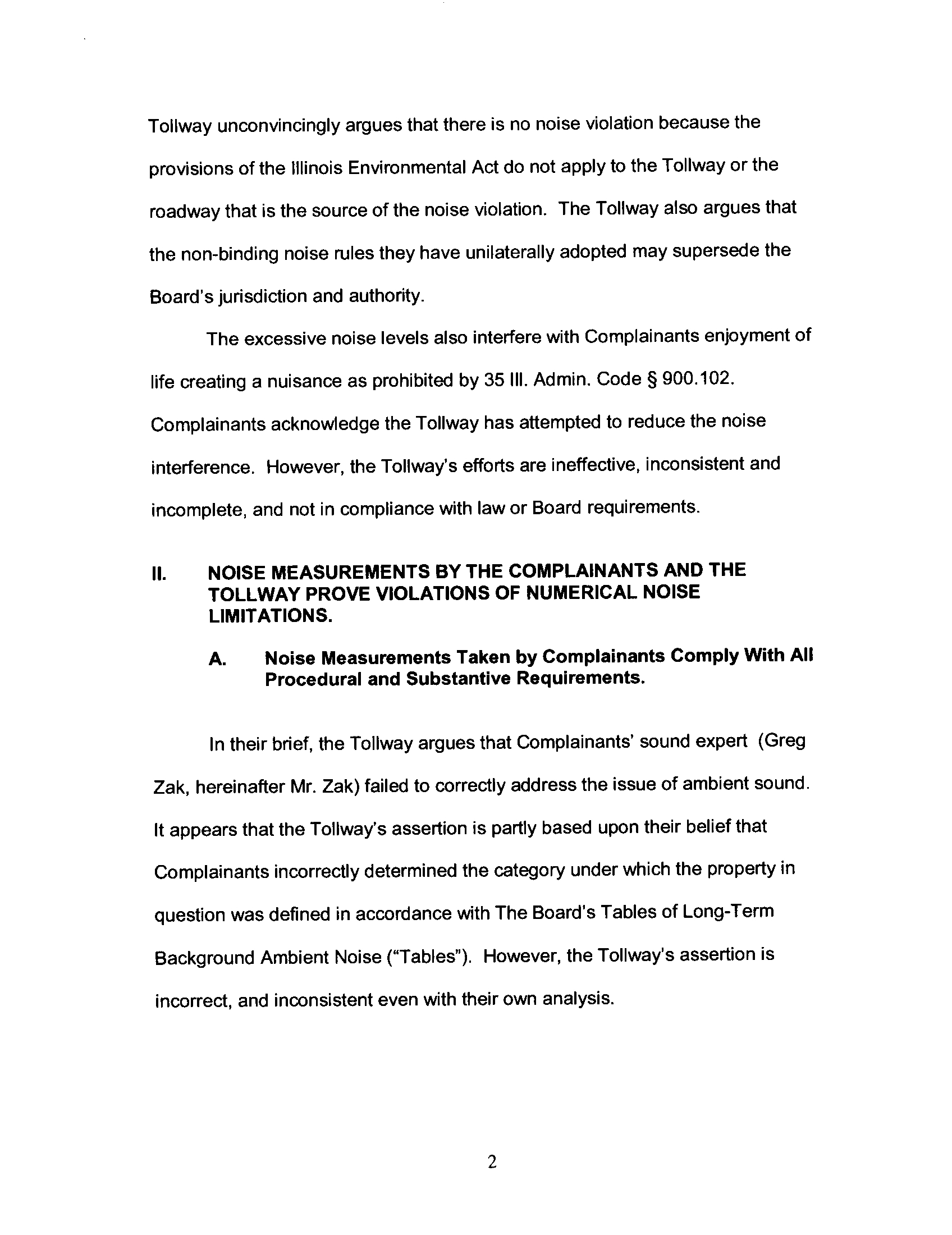 Complainants acknowledge the Tollway has attempted to reduce the noise
