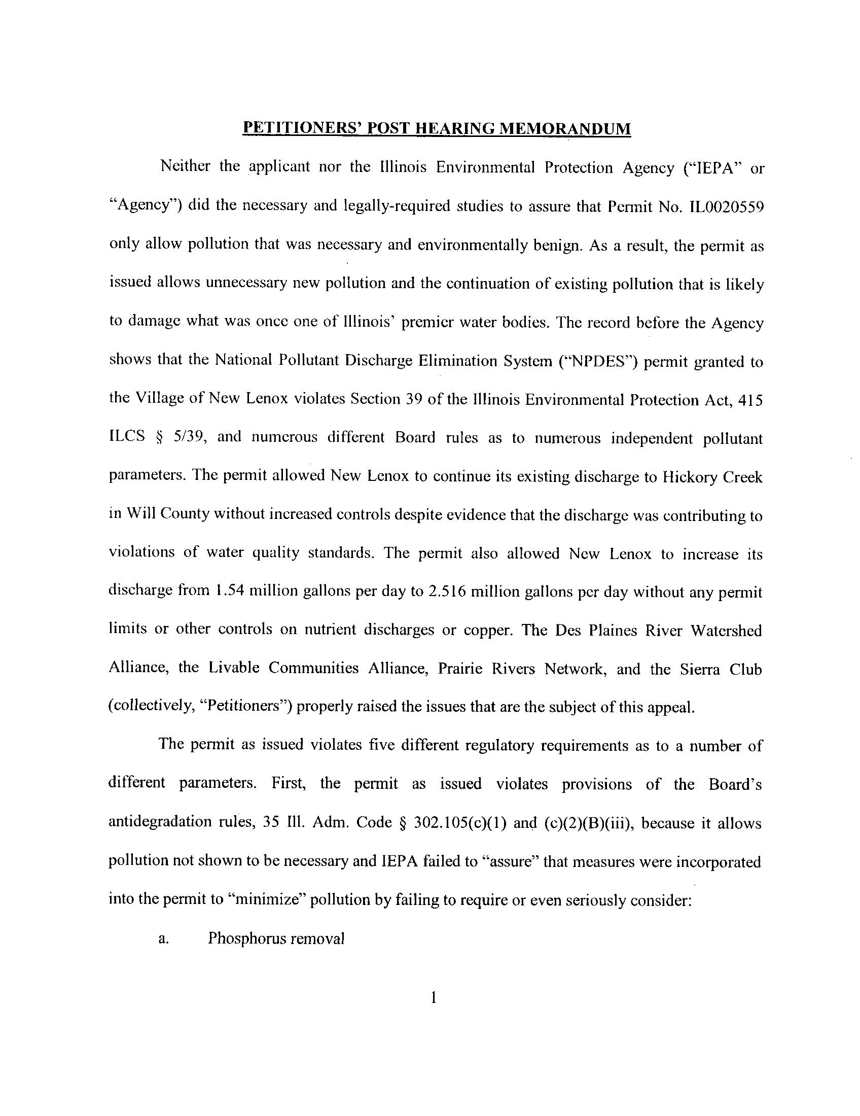 Communities Alliance, Prairie Rivers Network, and the Sierra Club have filed the attached