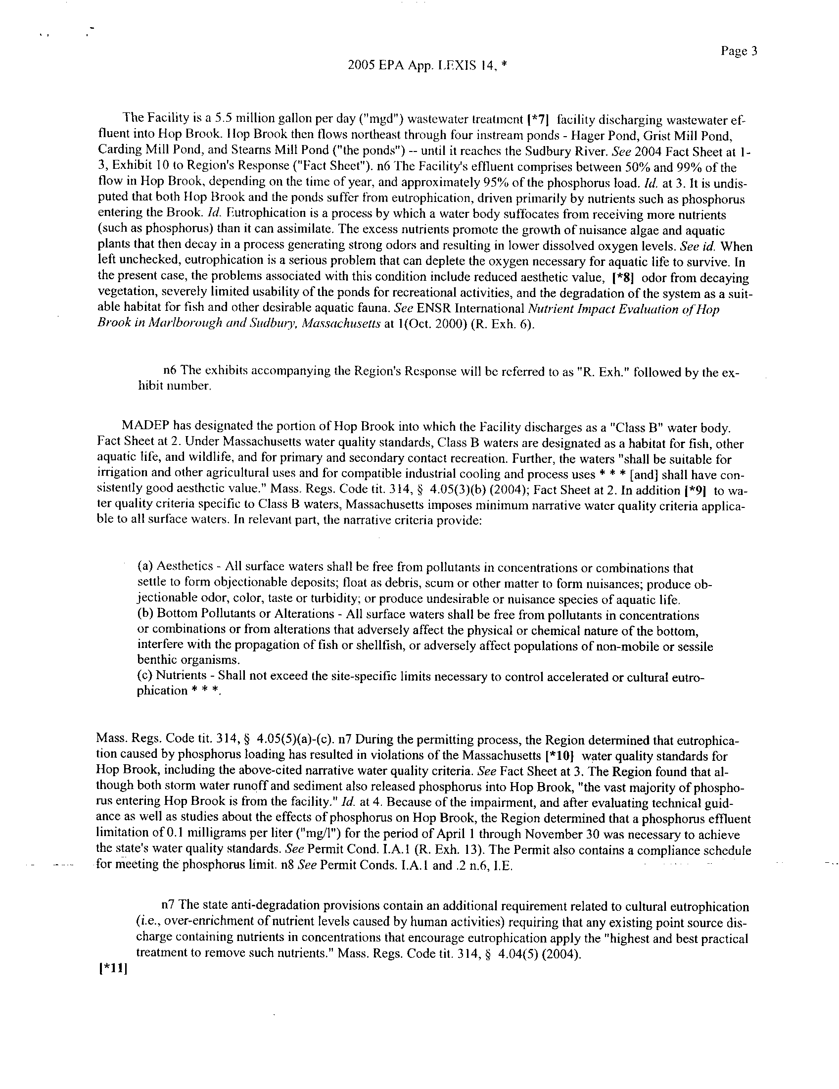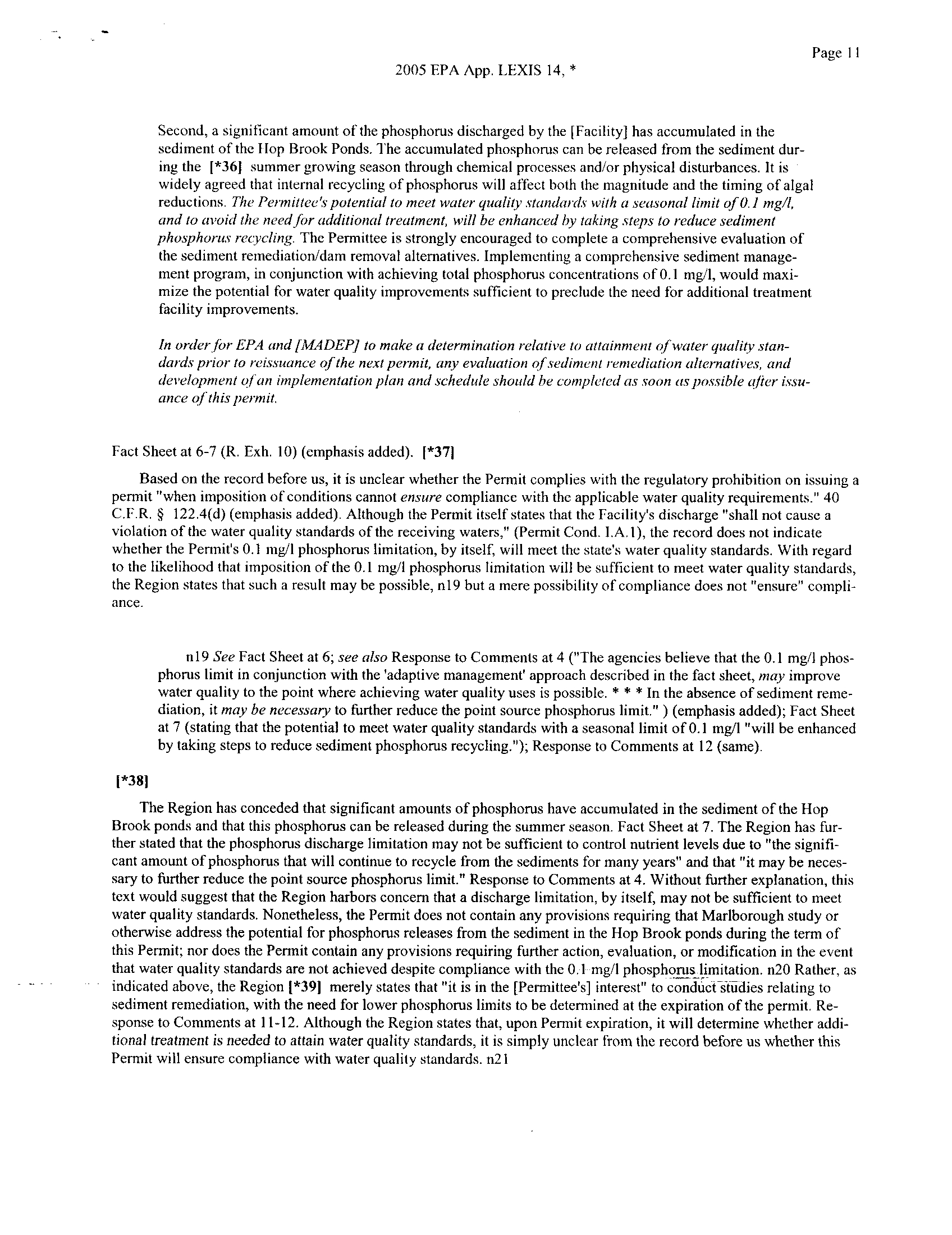 phosphorus from sediment in the Hop Brook ponds, the Permit, as written, will ensure compliance with applicable water
