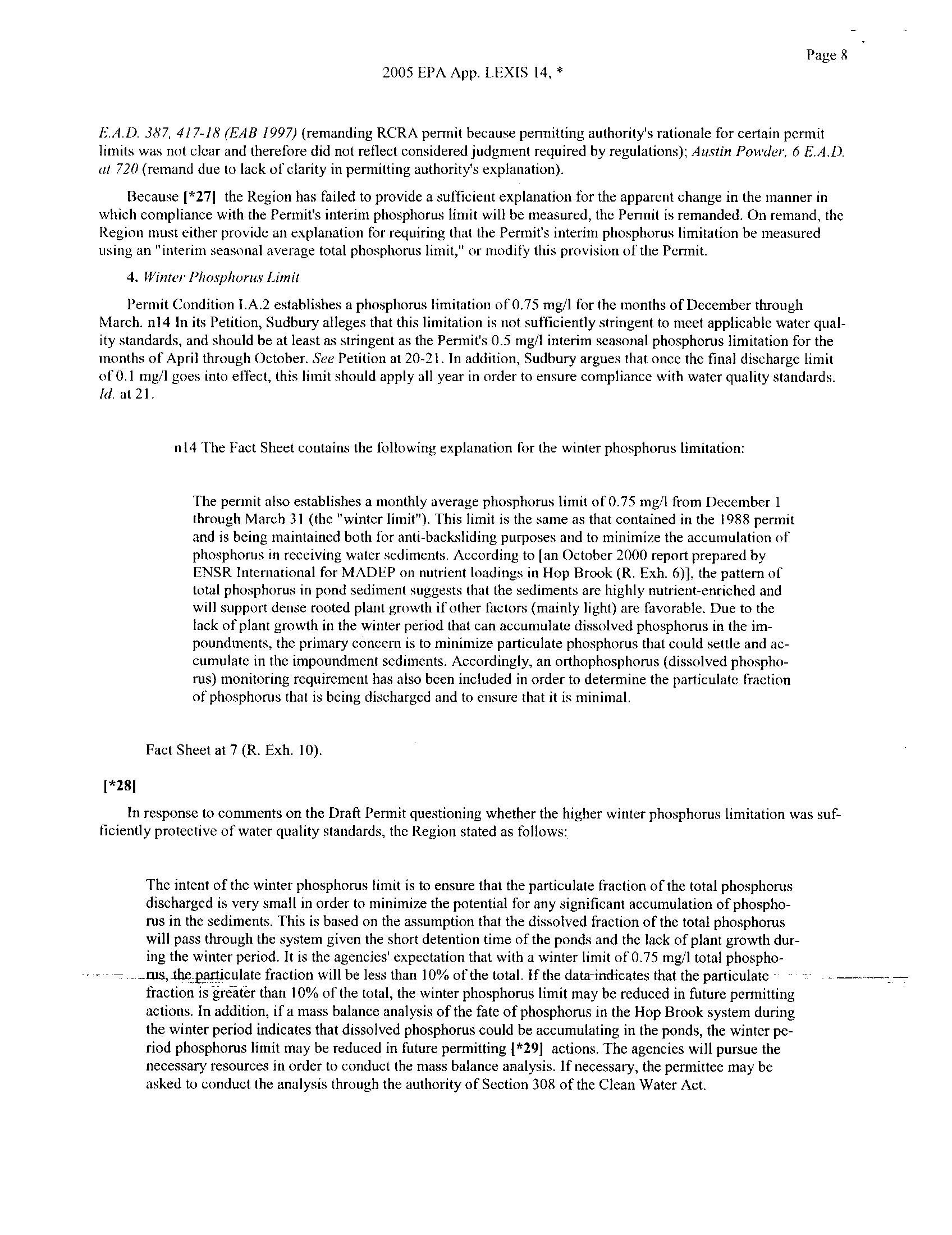 04-03, slip op. at 29 n .39 (EAB, Feb. 1, 2005), 12 E .A .D . . An administrative appeal of the determination on