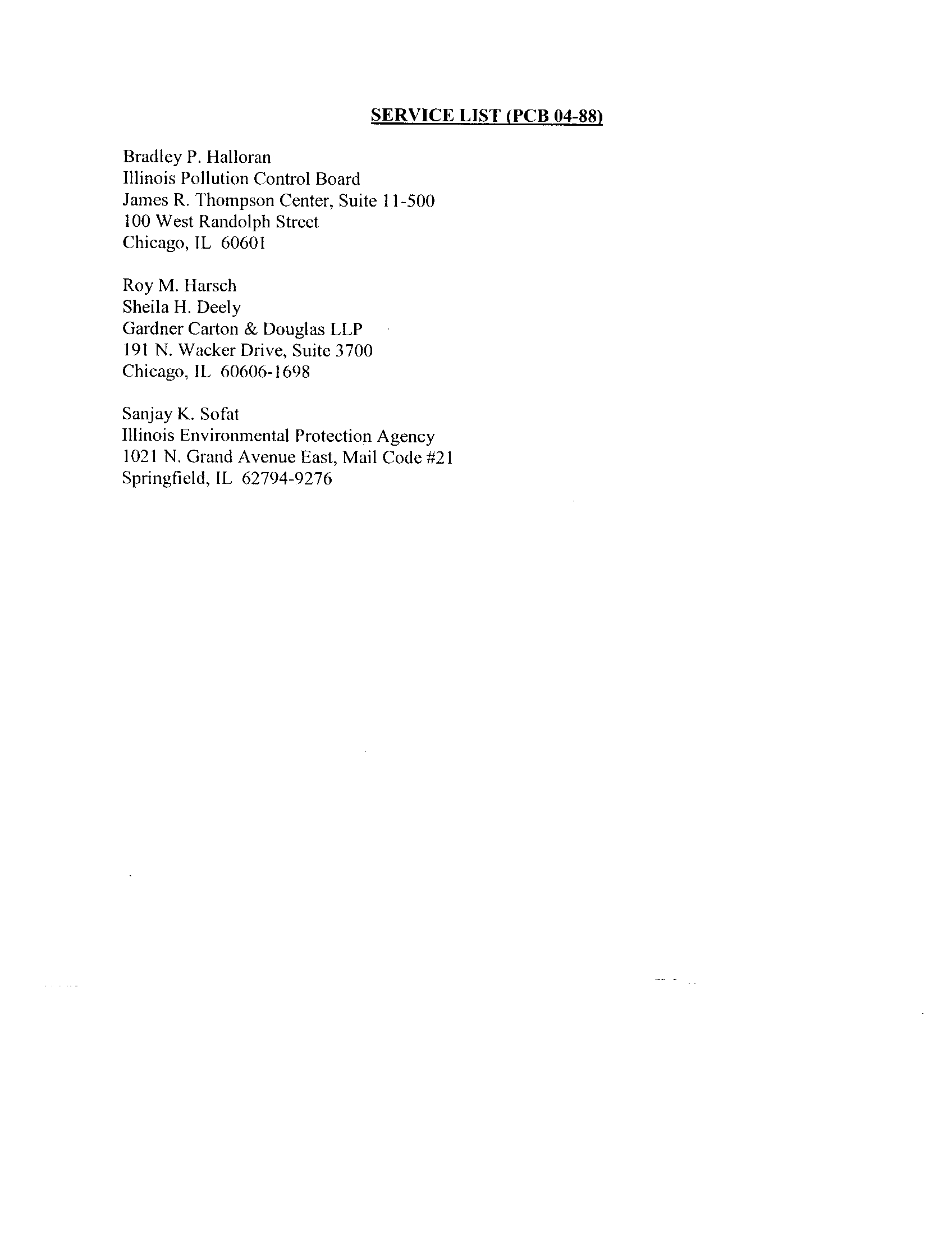 Chicago, IL 60601, and copies were served via United States Mail to those individuals on the
