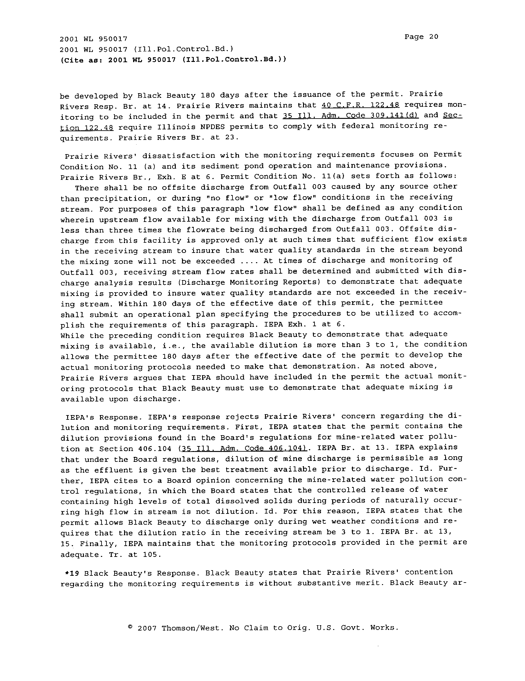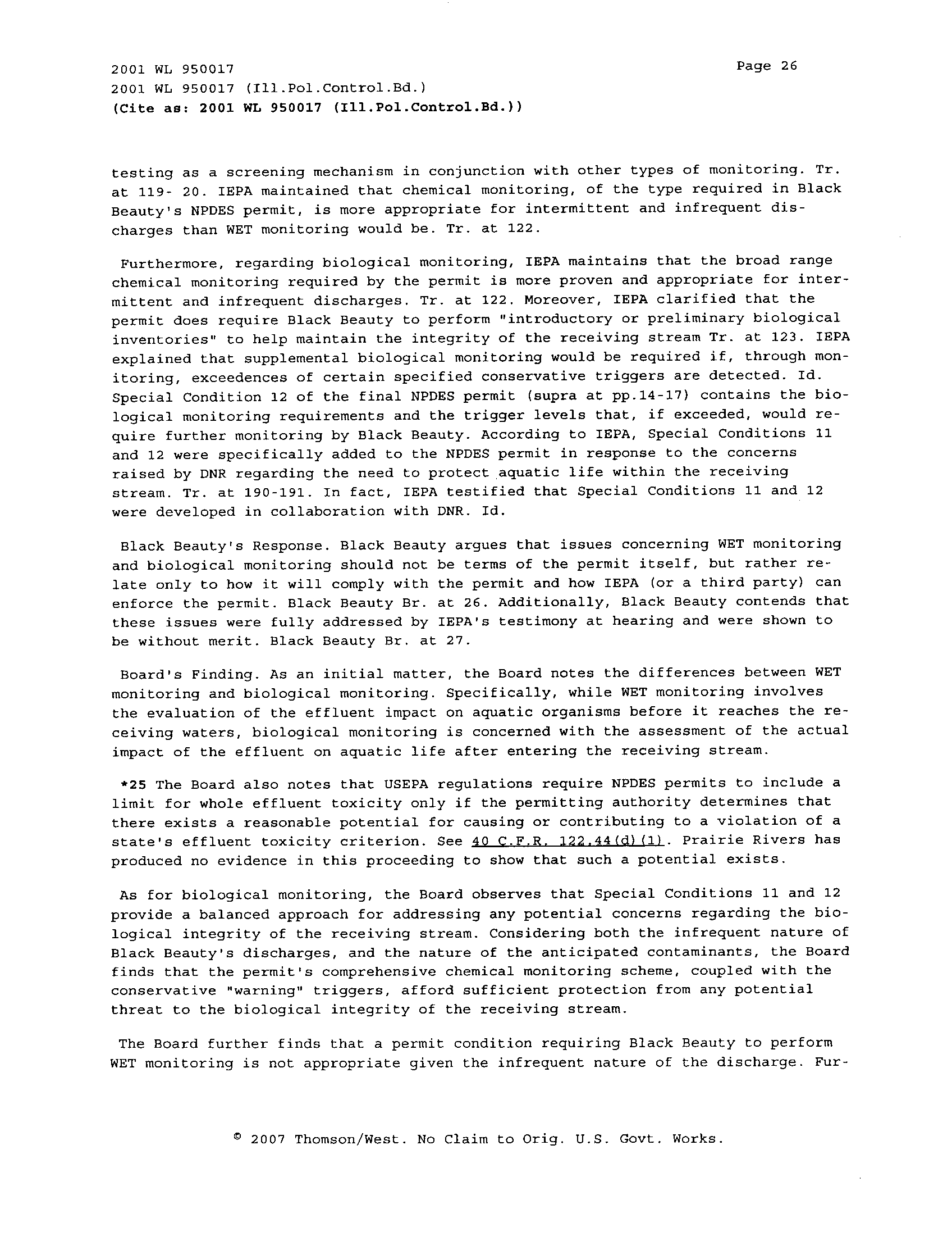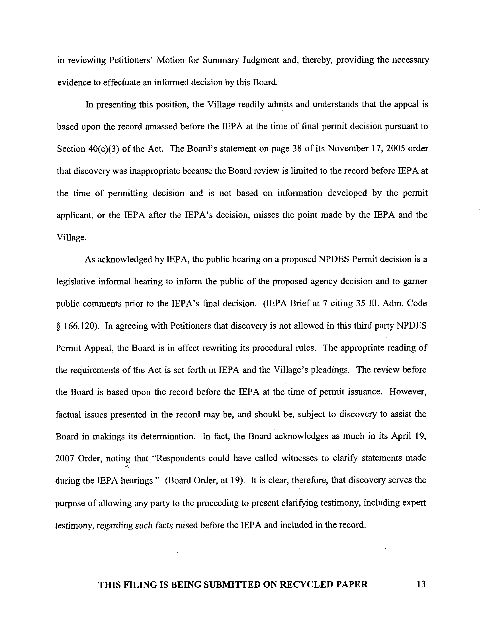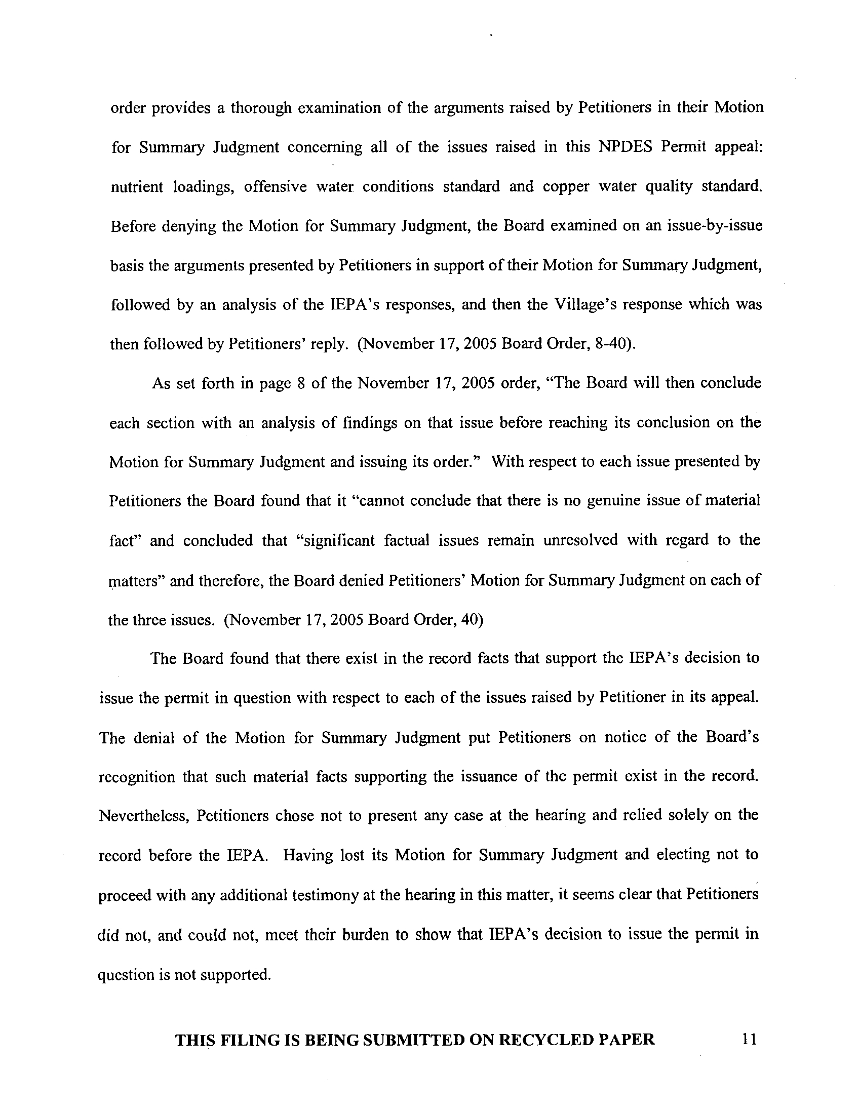 NPDES Permit as issued by IEPA on October 31, 2003, for the following reasons, and as set