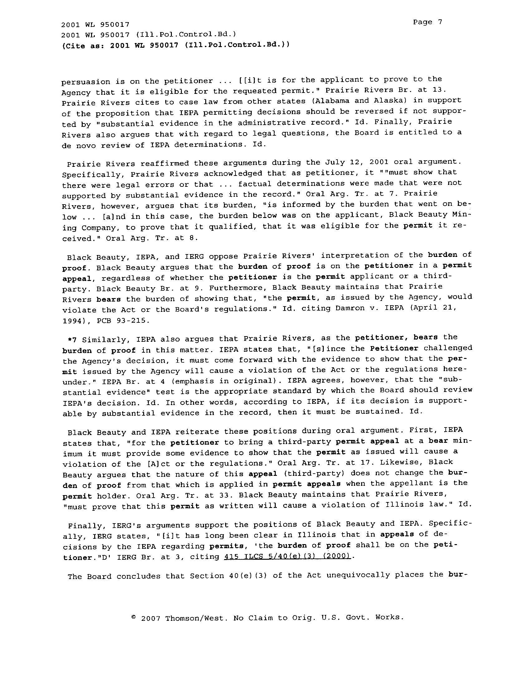 bears the burden to rn ove that the permit as issued violates the Act or Board regulations