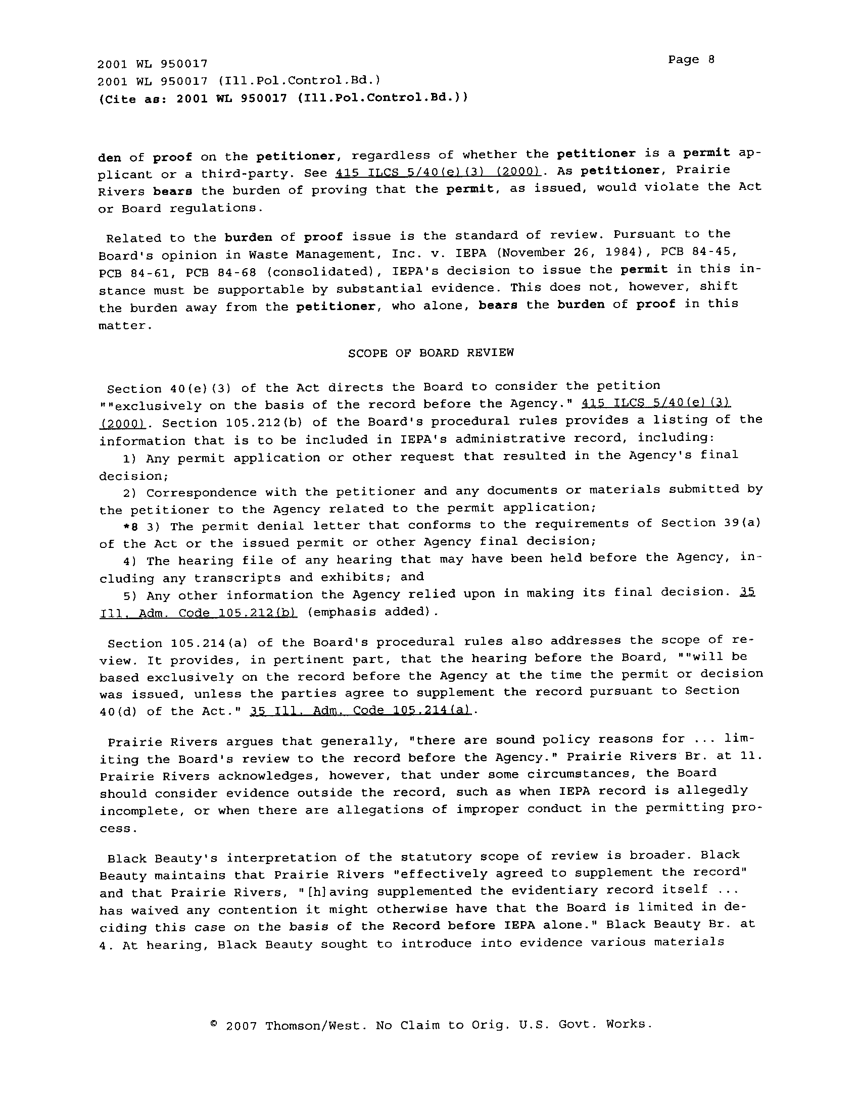 ILCS 5/40(a)(1)(2004); 35 Ill . Adm. Code § 105 .112 (a). While the Board repeatedly recited this