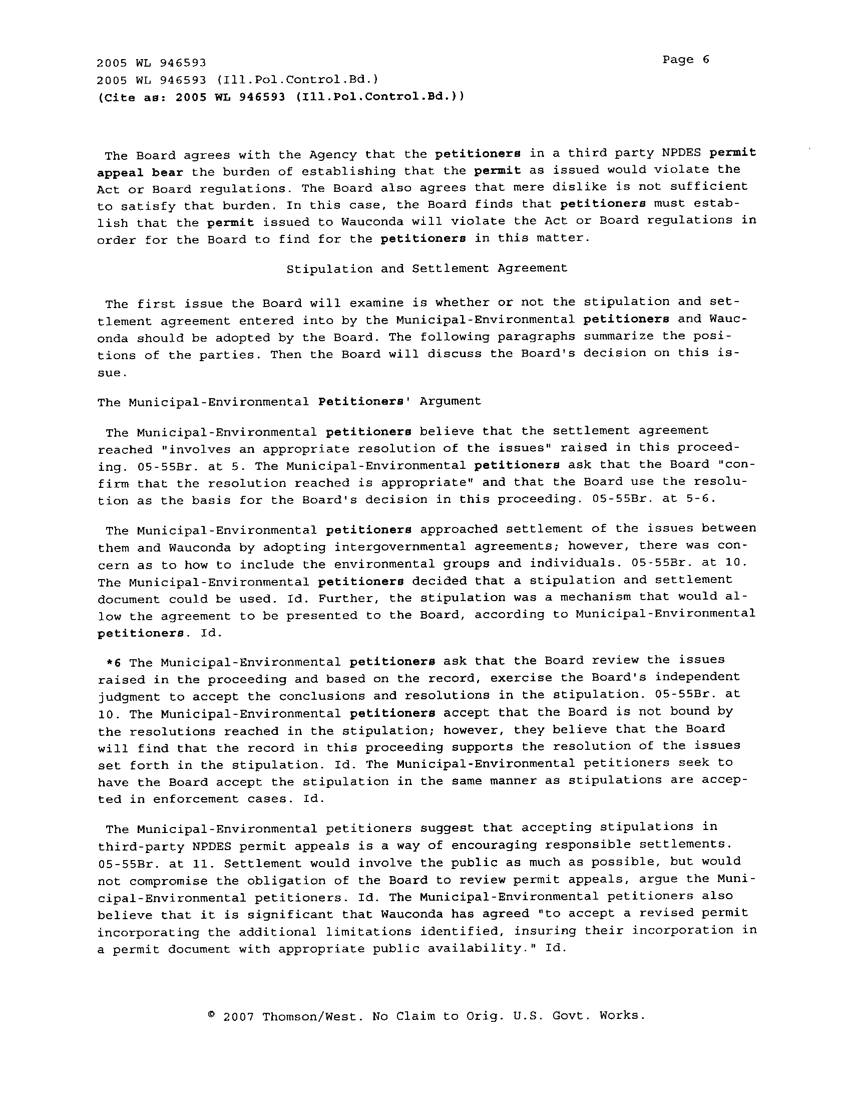tional Pollutant Discharge Elimination System permit to the Village of Wauconda