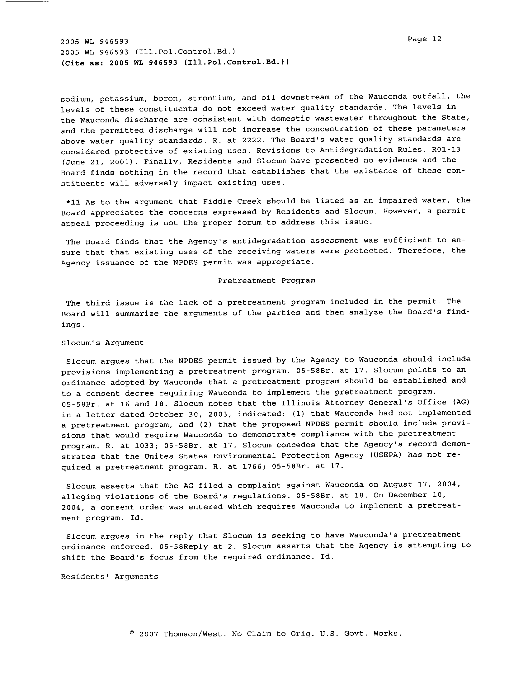 2000) requiring a pretreatment program be developed for the Wauconda plant