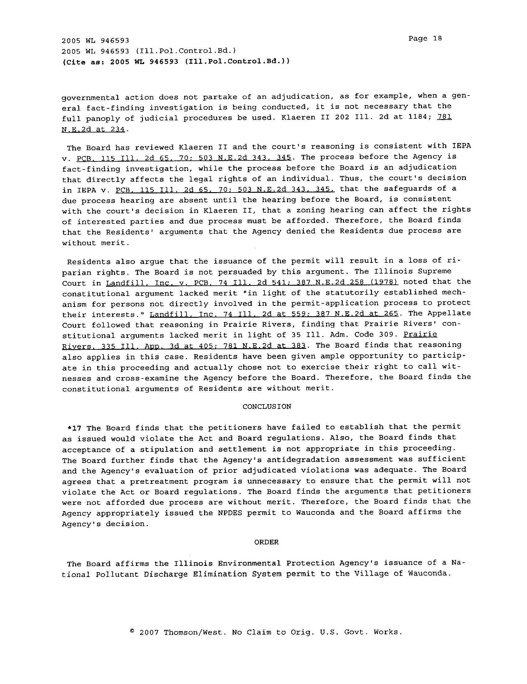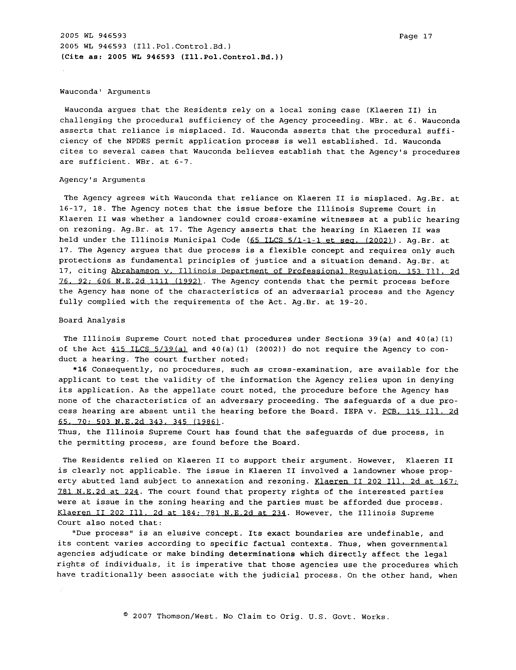 The Board has reviewed Klaeren II and the court's reasoning is consistent with IEPA