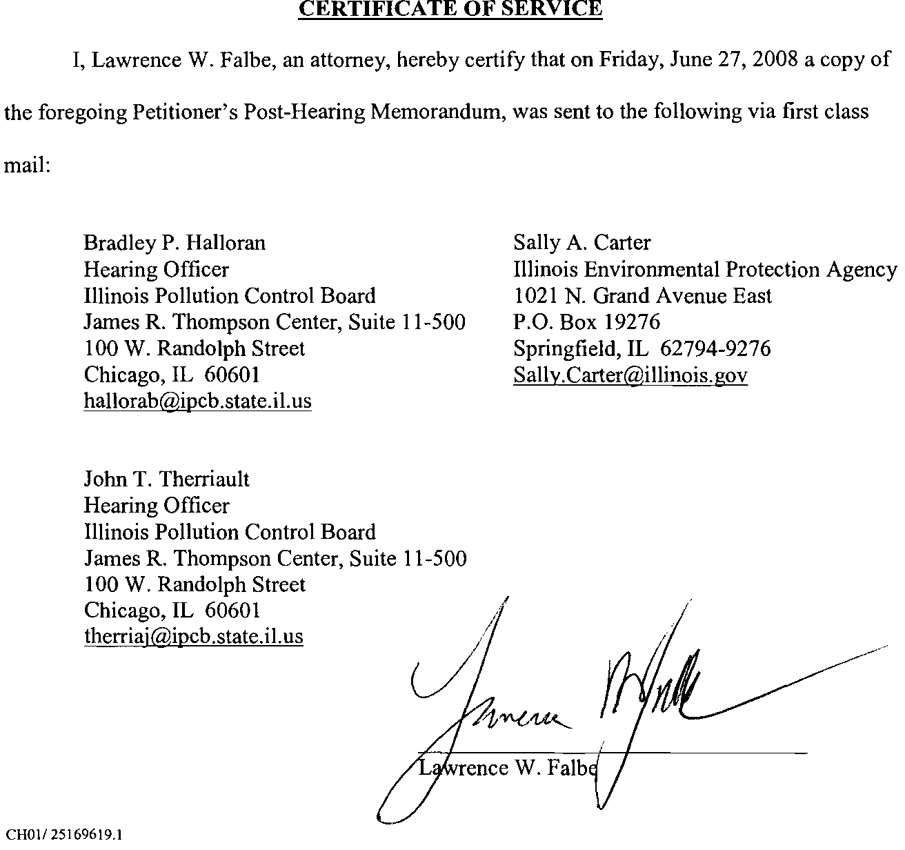 I, Lawrence W. Falbe, an attorney, hereby certify that on Friday, June 27, 2008 a copy of