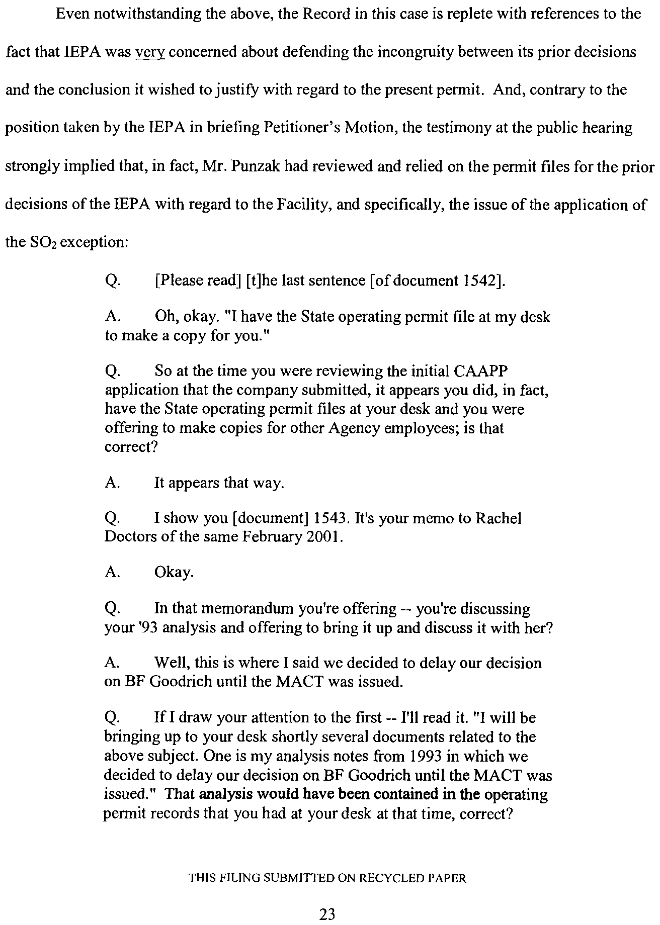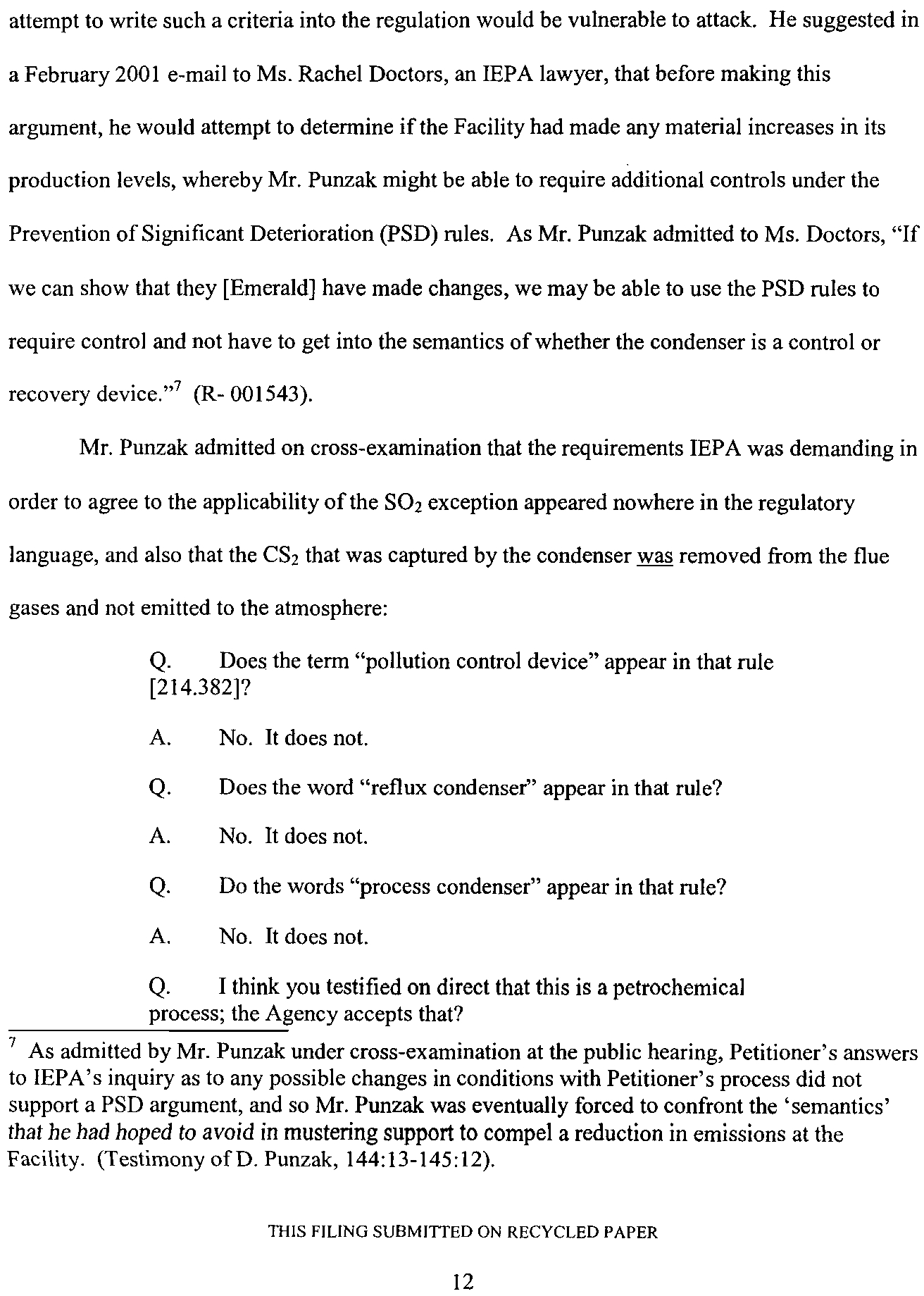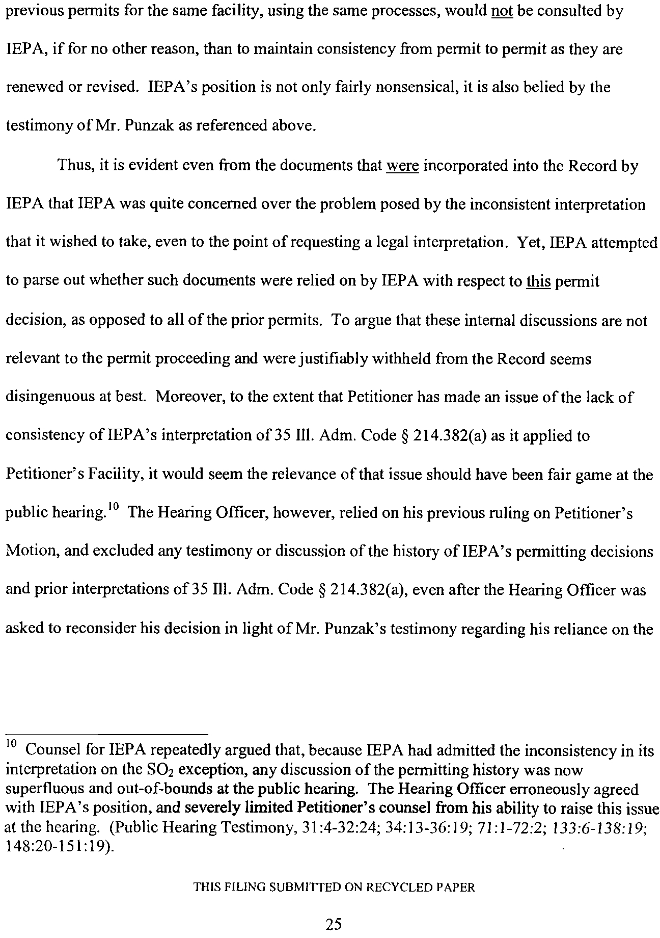 with IEPA's position, and severely limited Petitioner's counsel from his ability to raise this issue