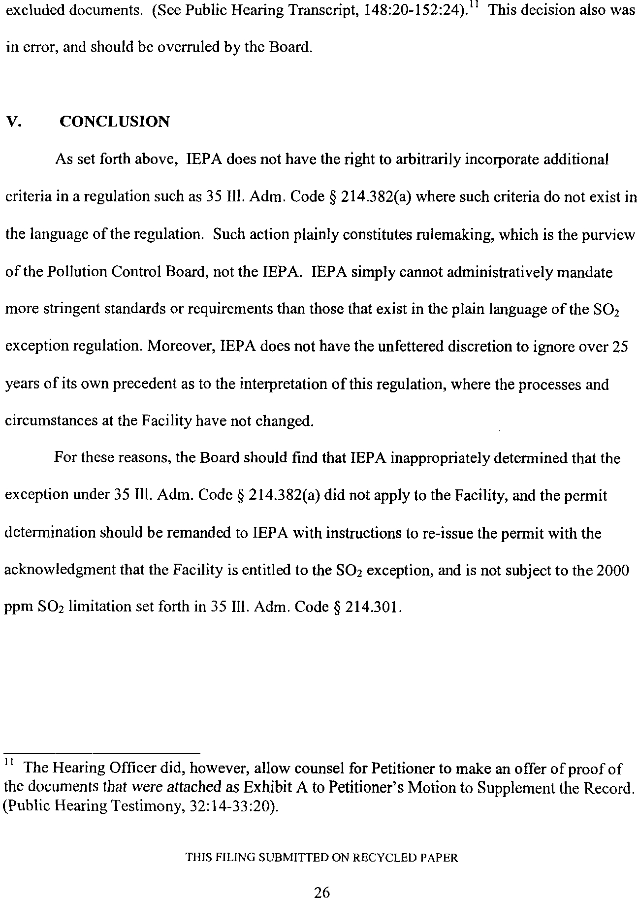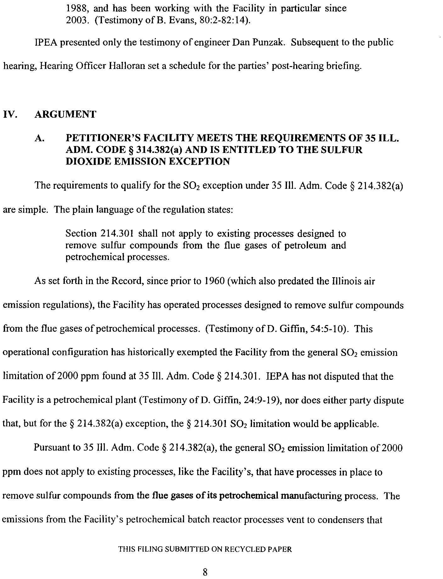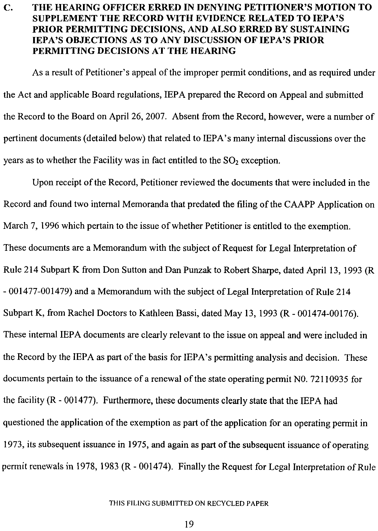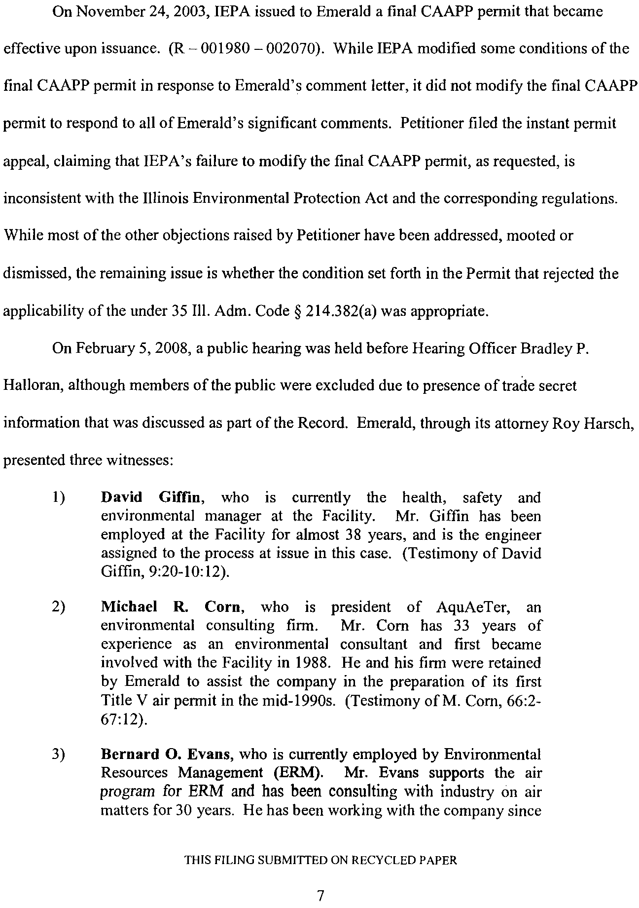 with IEPA's position, and severely limited Petitioner's counsel from his ability to raise this issue