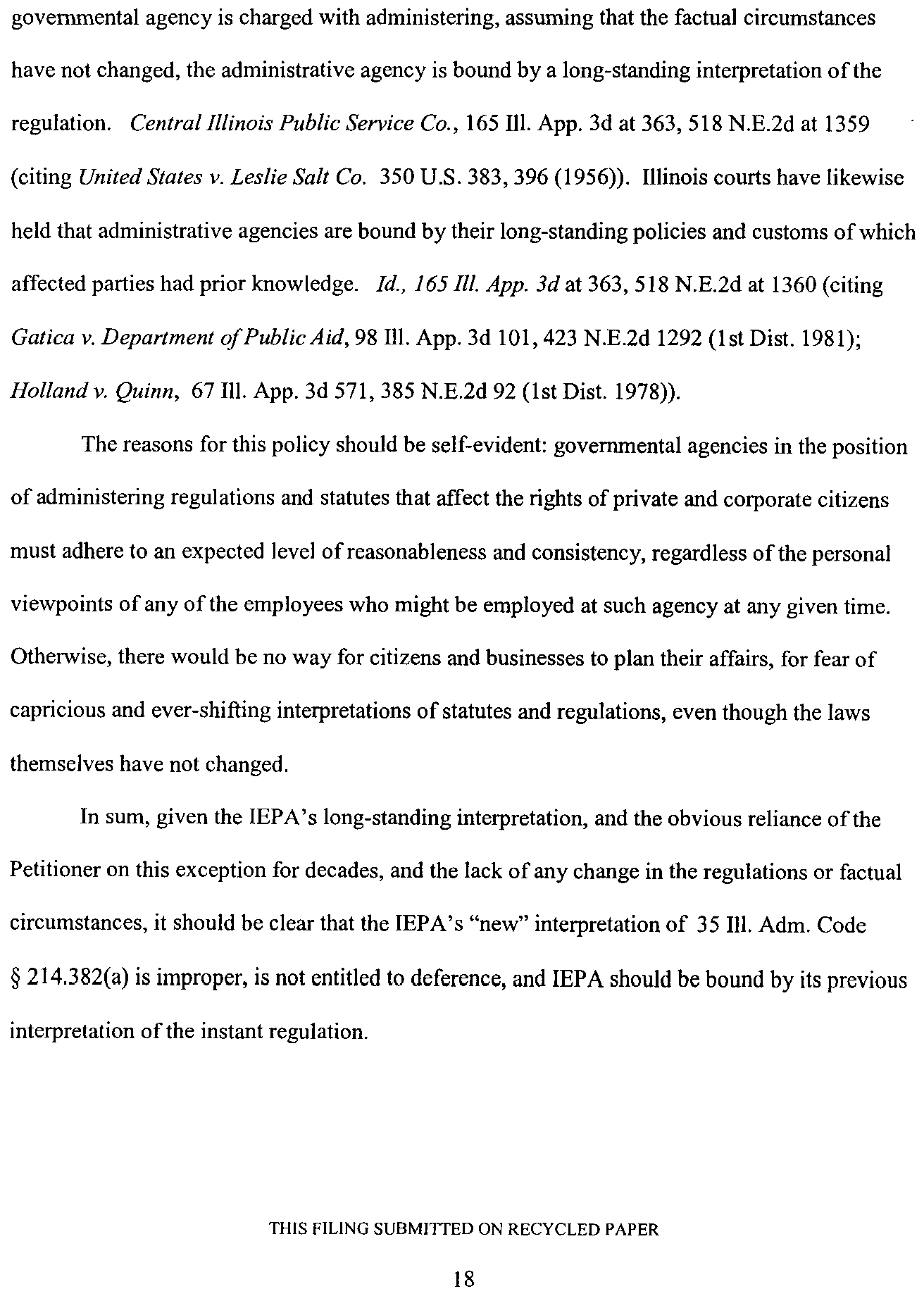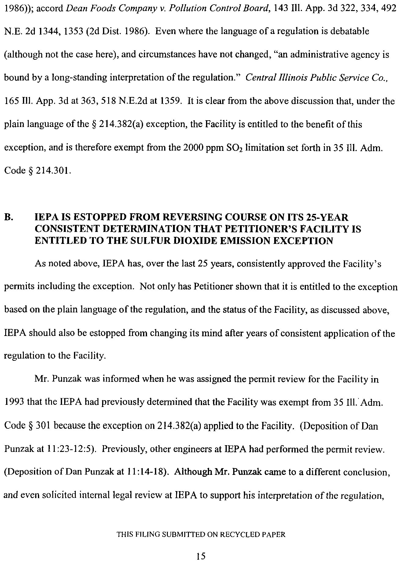 consistency of IEPA's interpretation of 35 Ill. Adm. Code § 214.382(a) as it applied to