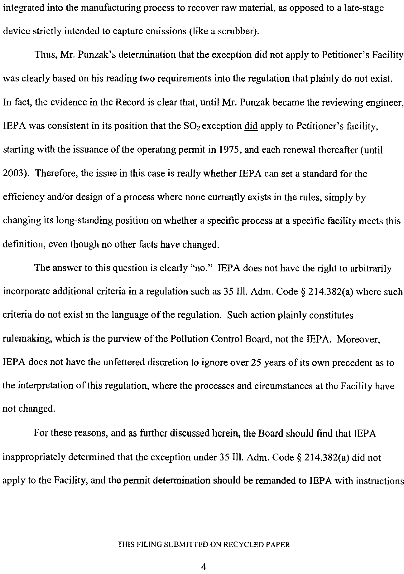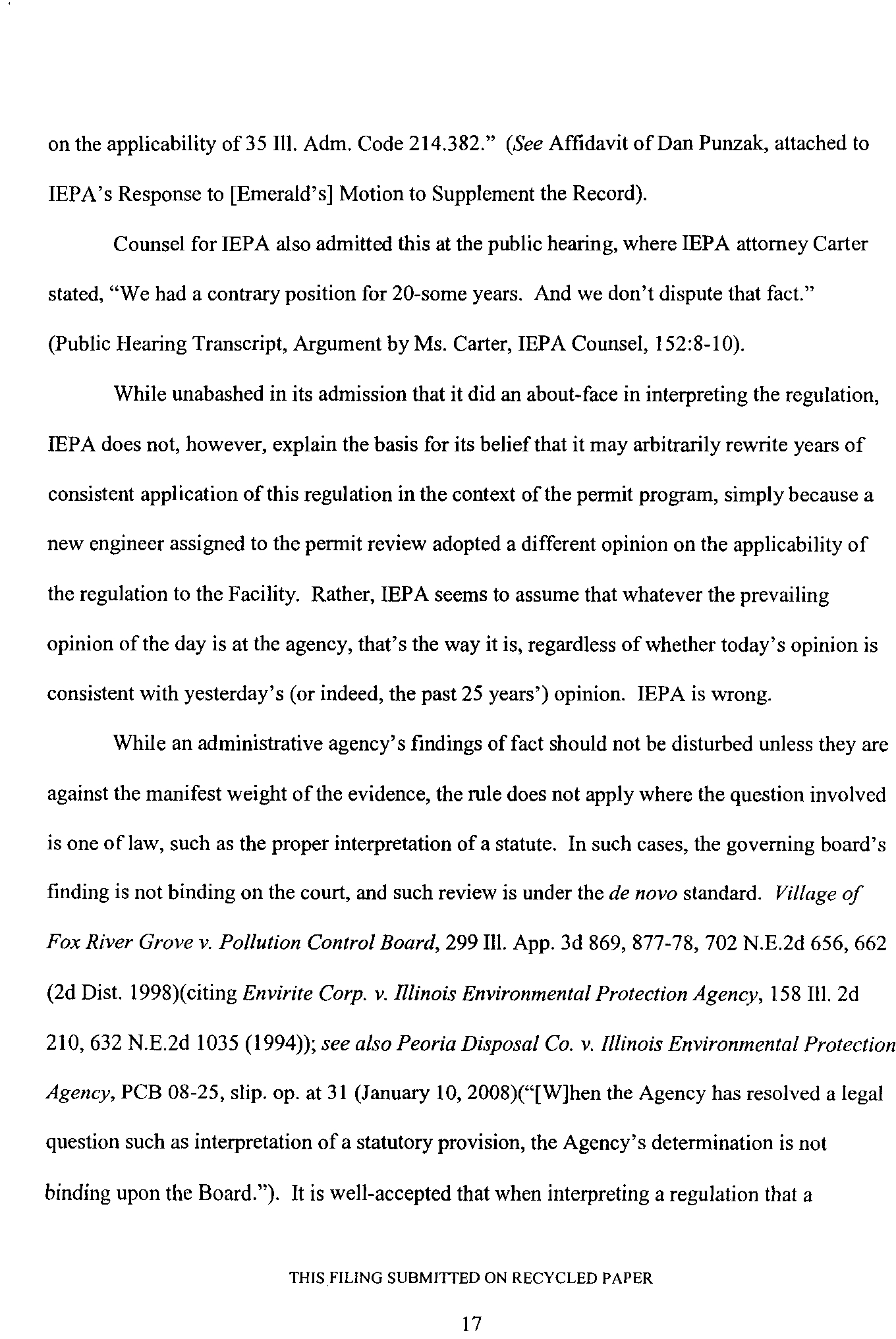 and prior interpretations of 35 Ill. Adm. Code § 214.382(a), even after the Hearing Officer was