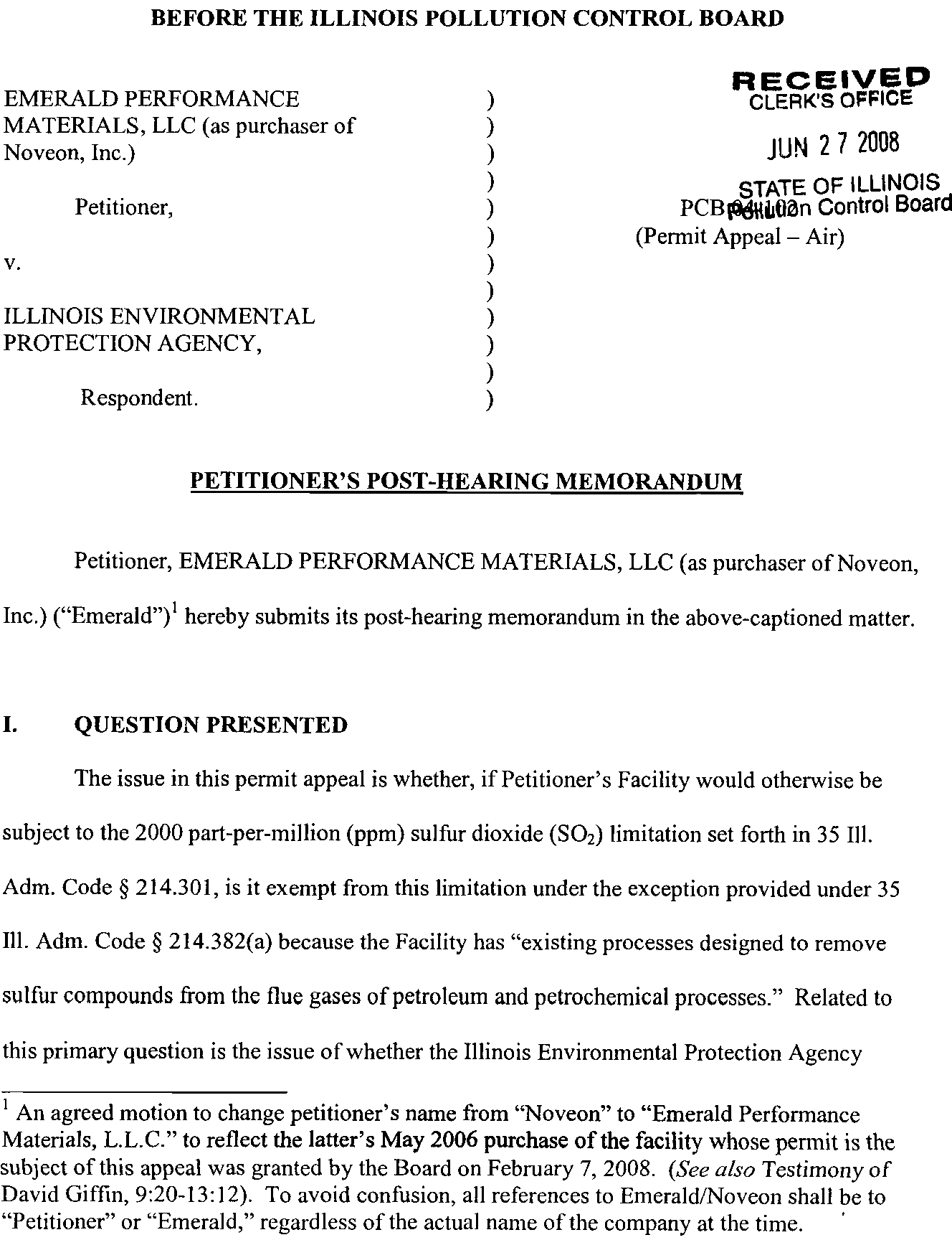 Petitioner, EMERALD PERFORMANCE MATERIALS, LLC (as purchaser of Noveon,
