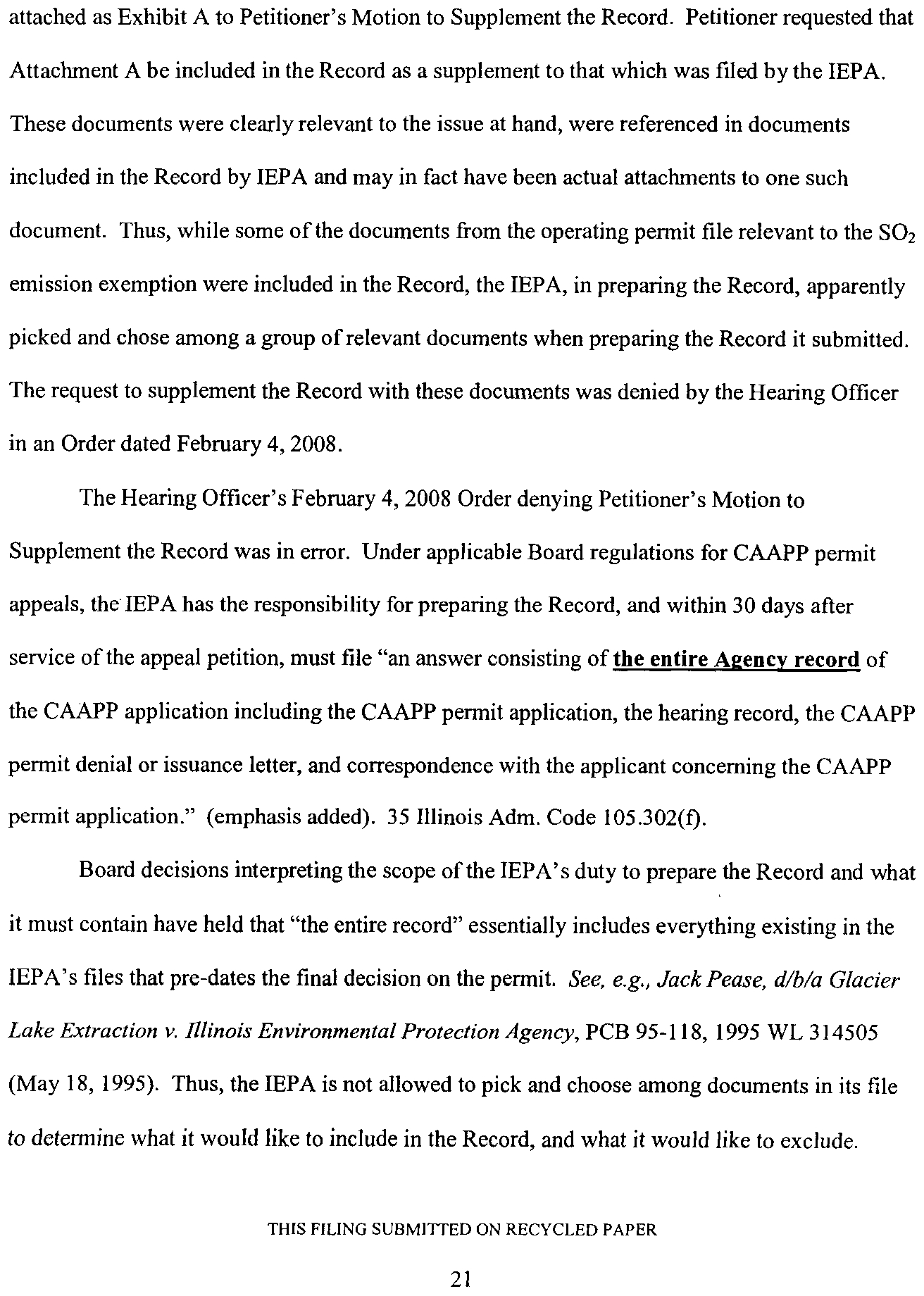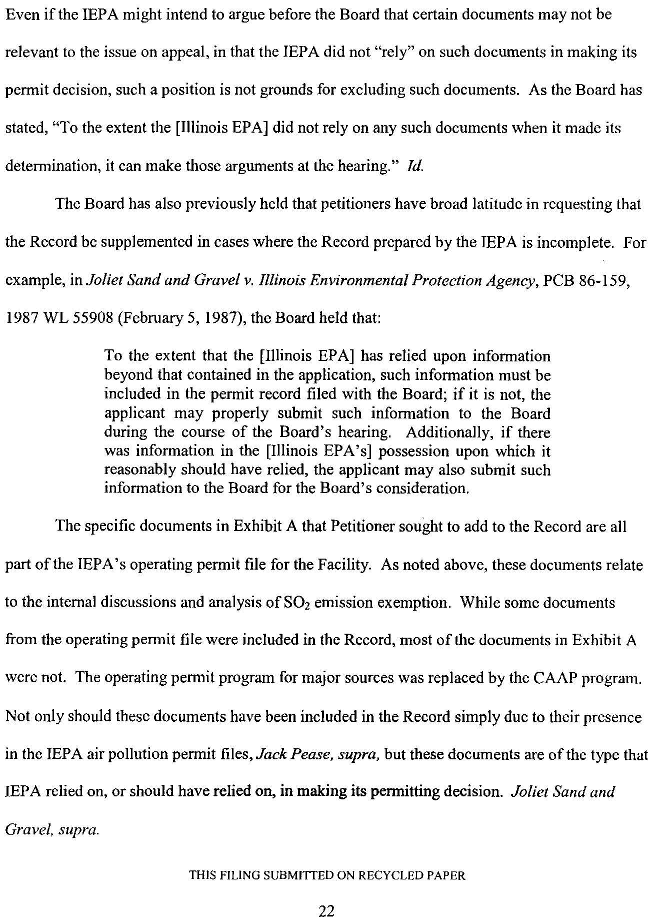 to parse out whether such documents were relied on by IEPA with respect to this permit