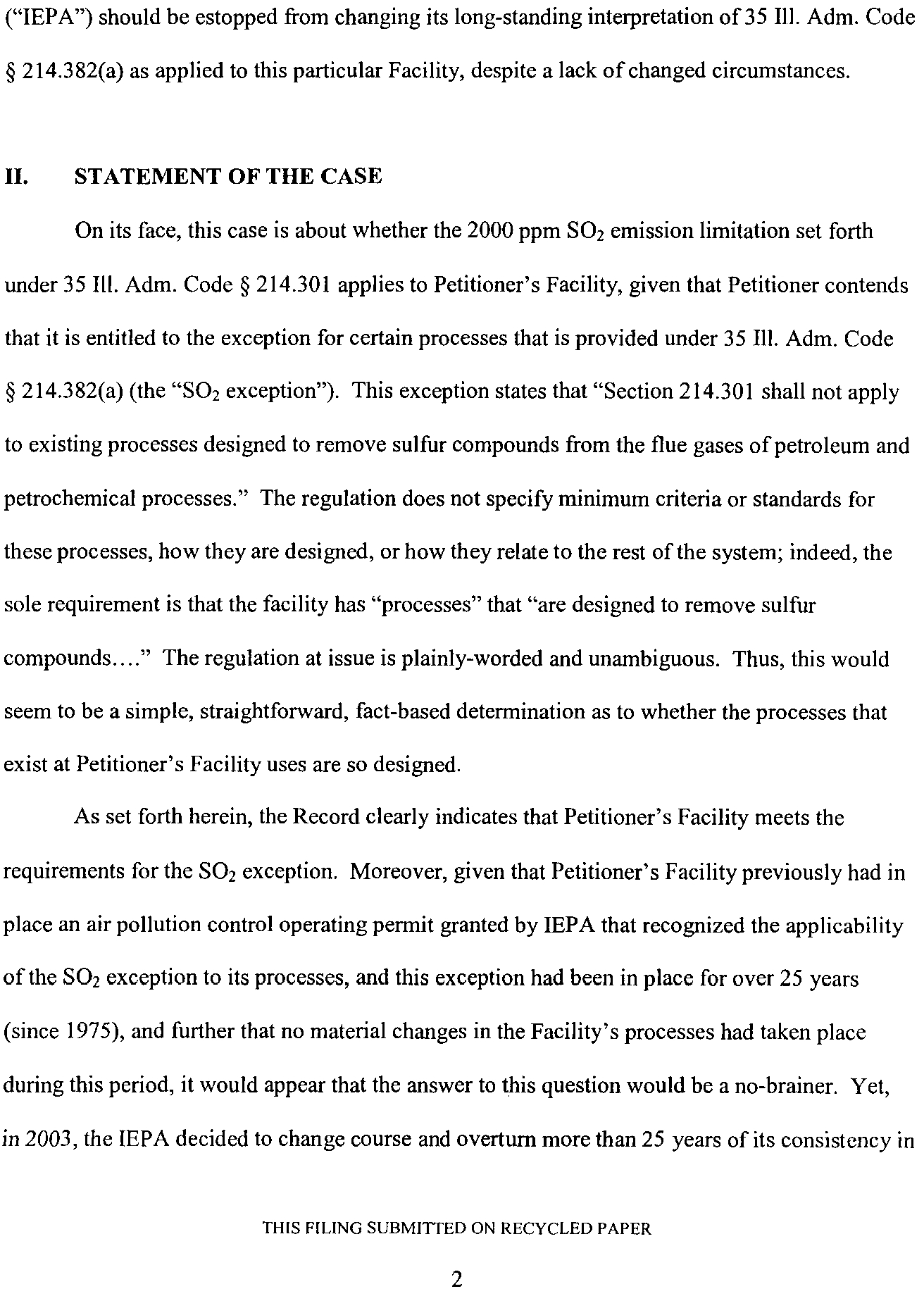 exception under 35 Ill. Adm. Code § 214.382(a) did not apply to the Facility, and the permit