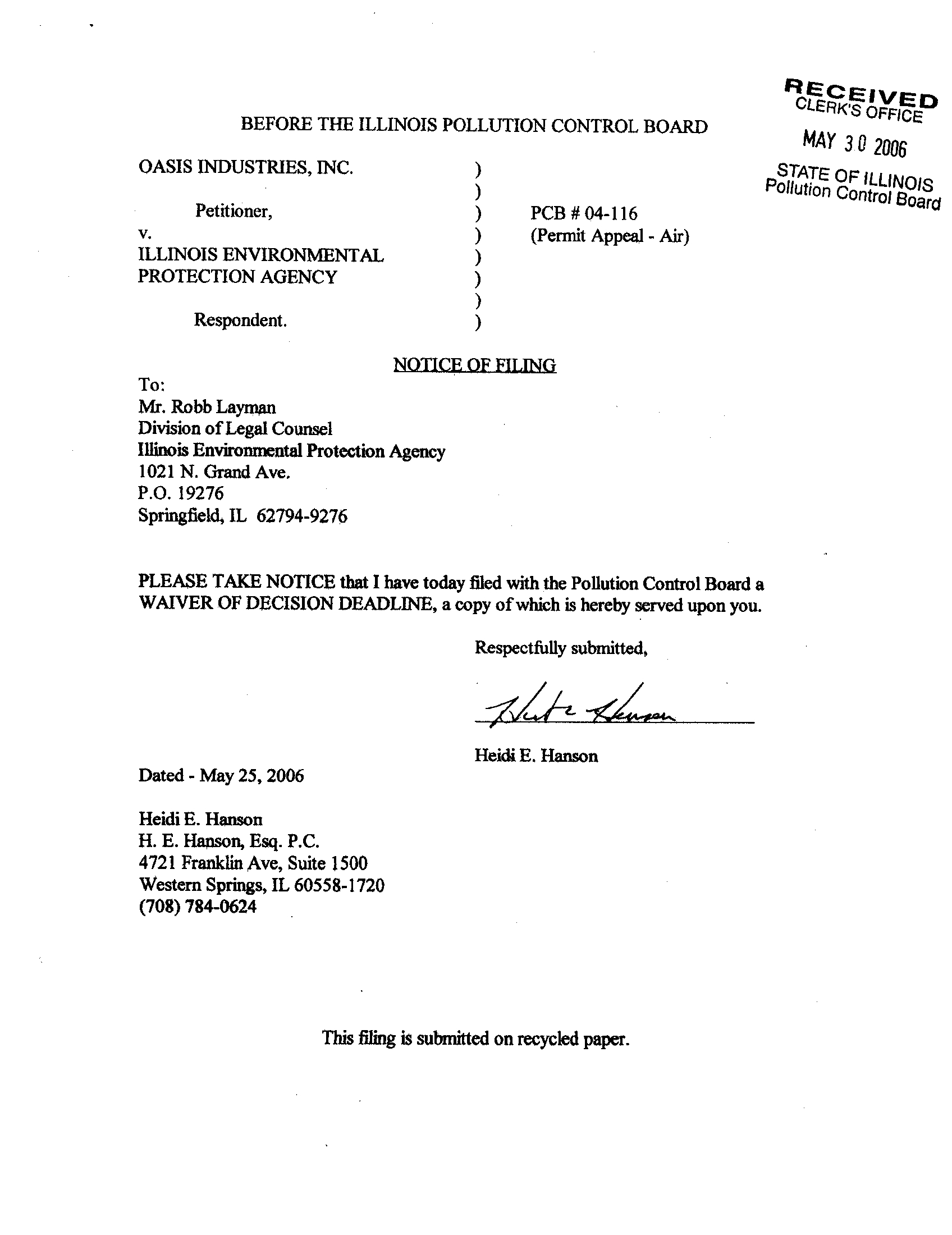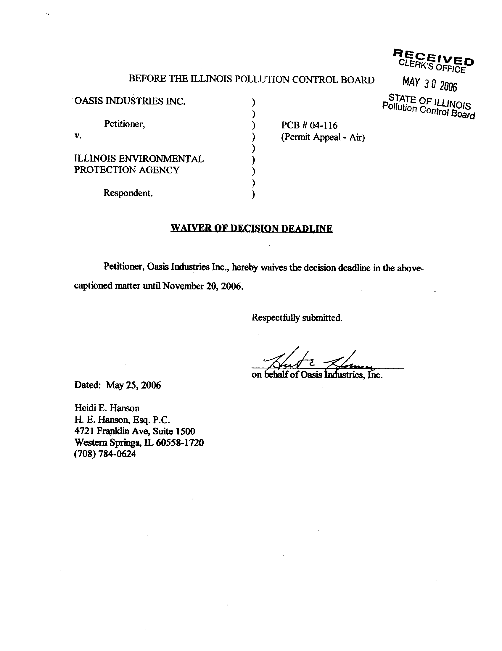 WAIVER OF DECISION DEADLINE, a copy of which is hereby served upon you