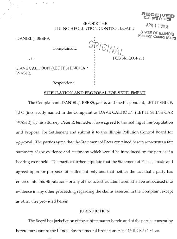 Daniel J. Beers filed a Formal Complaint (PCB 04-204) alleging excessive noise