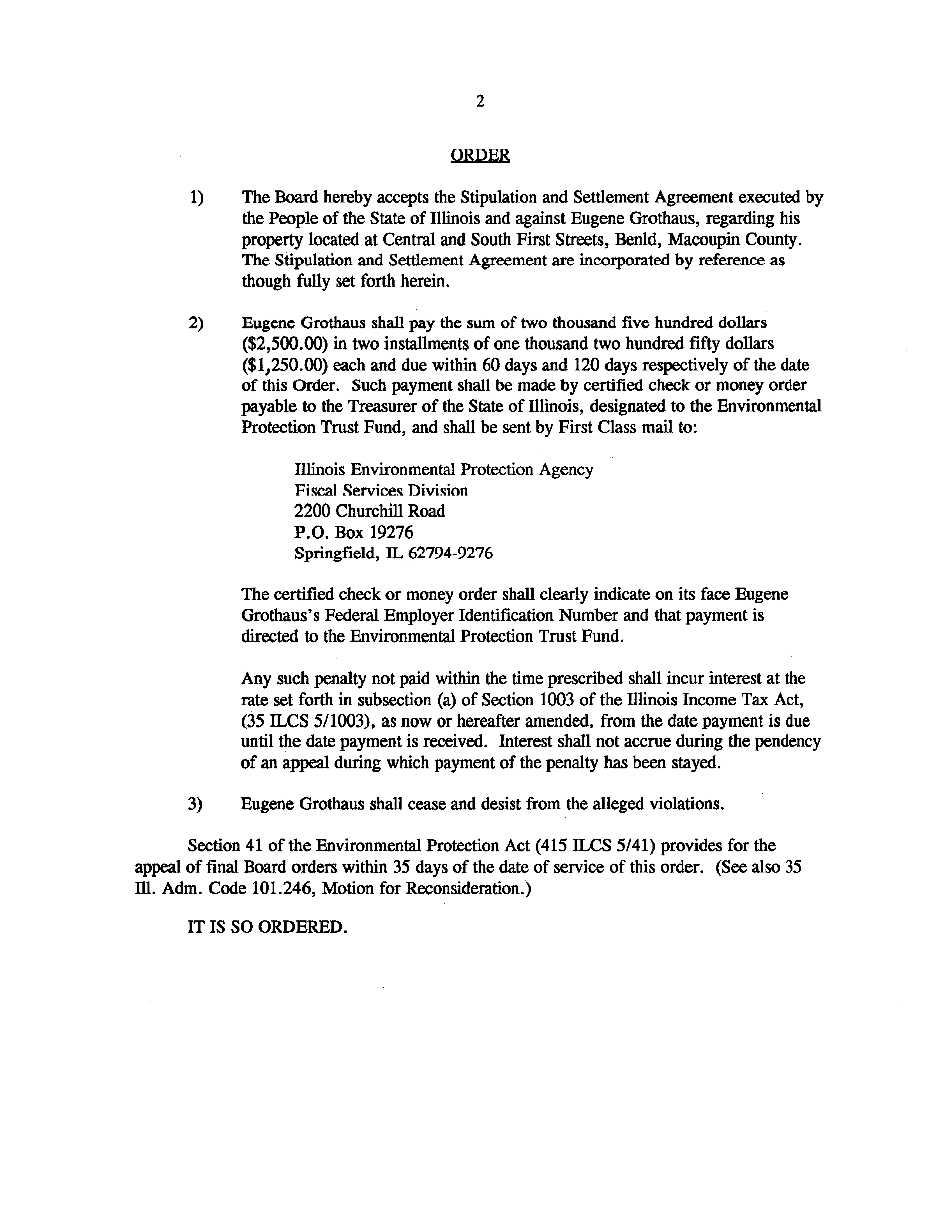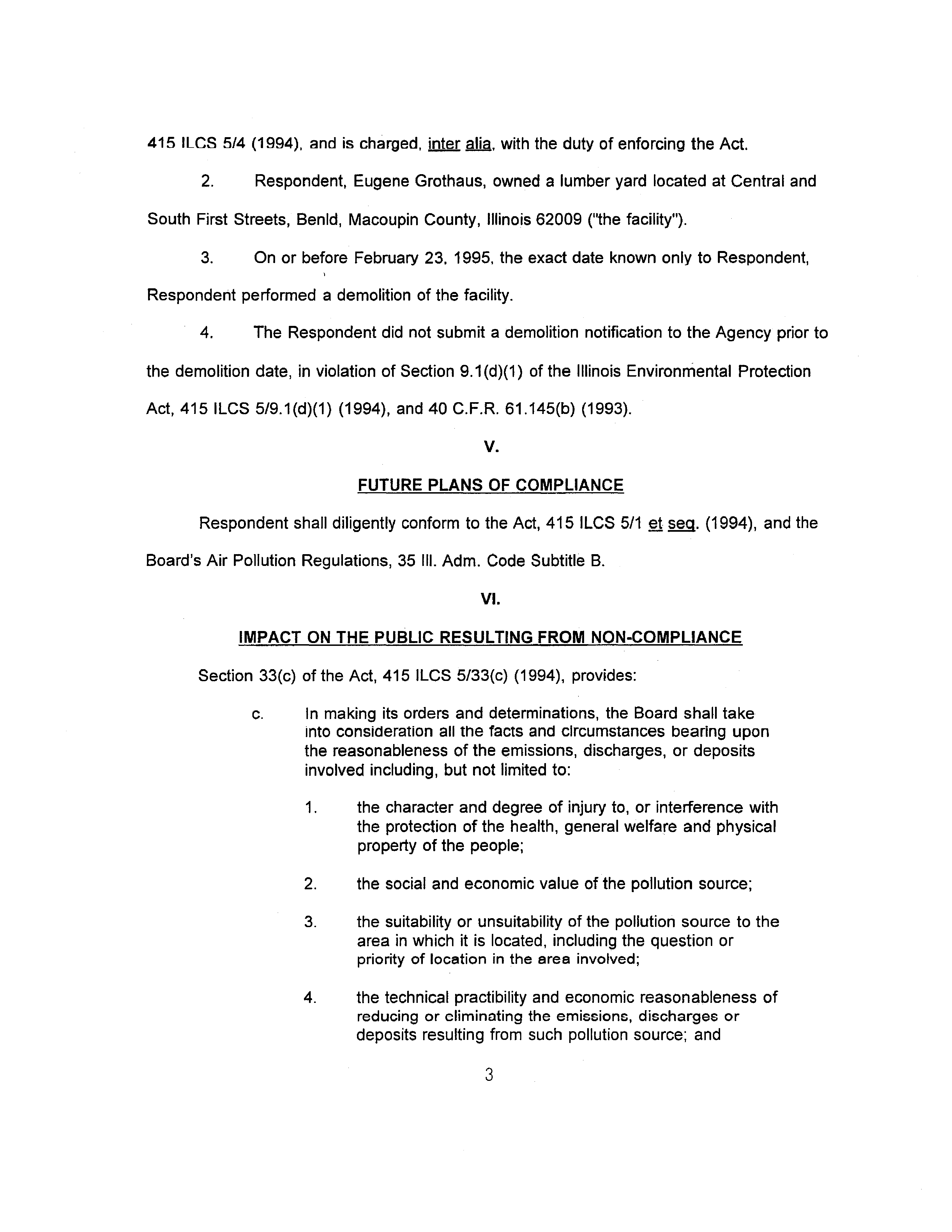plaint alleges that Eugene Grothaus has violated Section 9(d)(1) of the Illinois Environmental