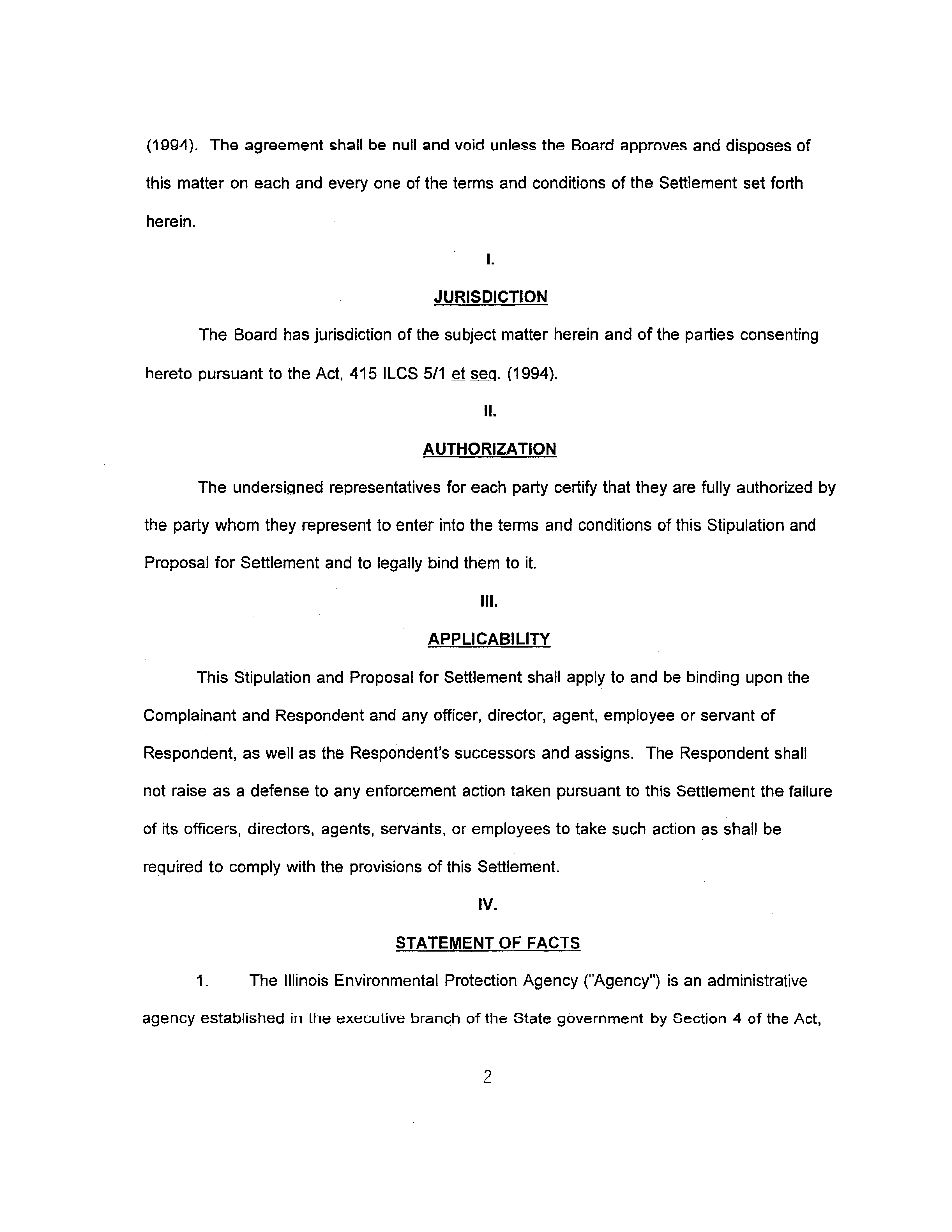 The Board hereby accepts the Stipulation and Settlement Agreement executed by