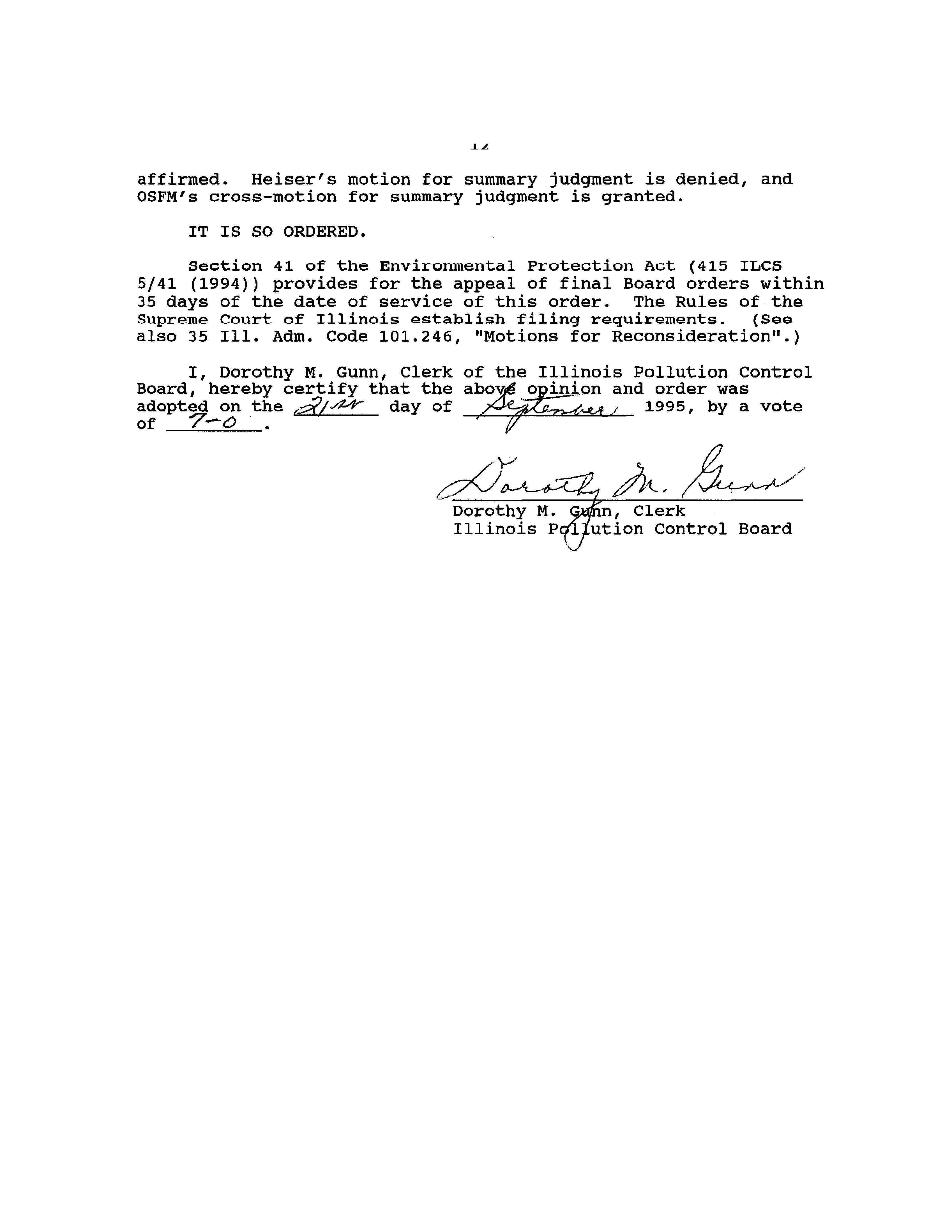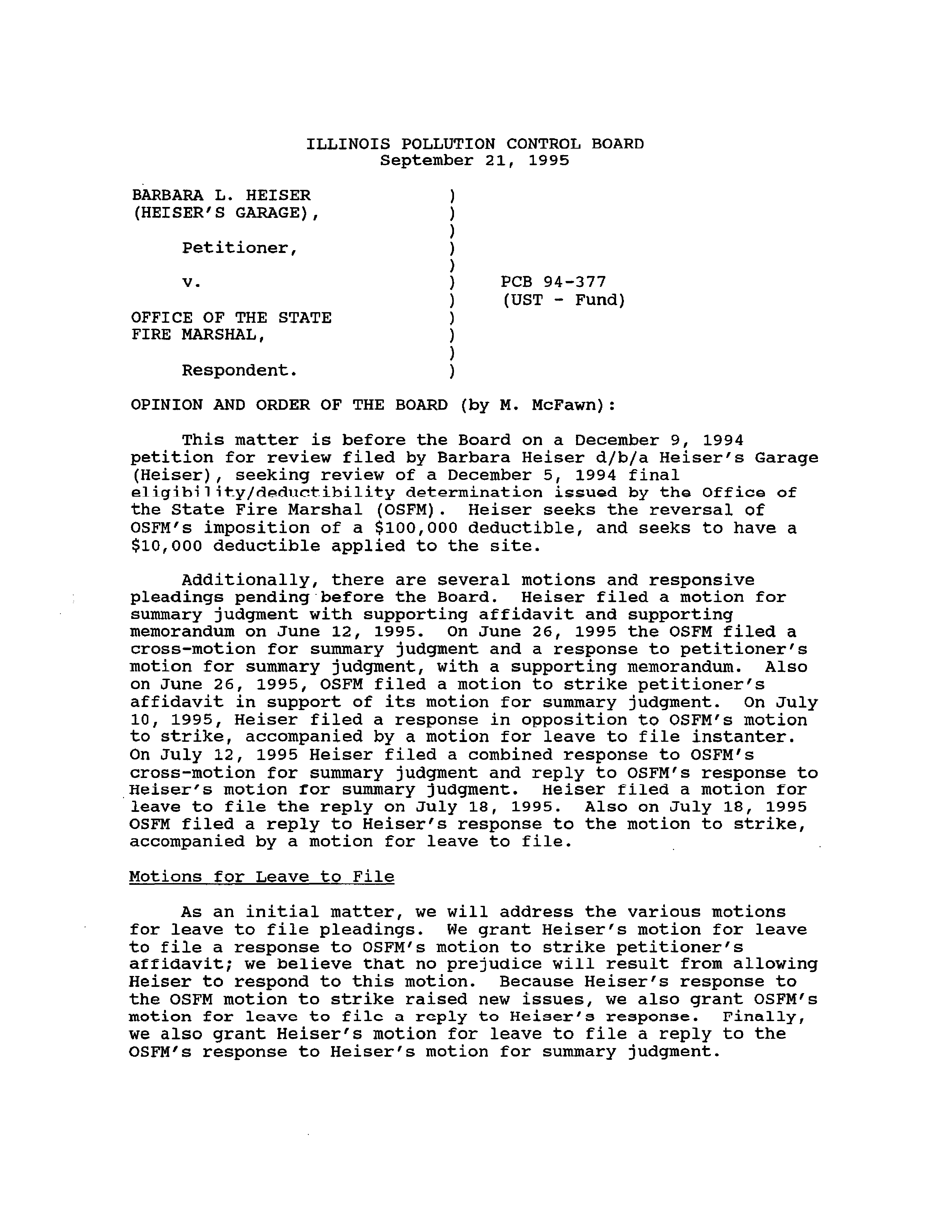 1995, Heiser filed a response in opposition to OSFM’s motion