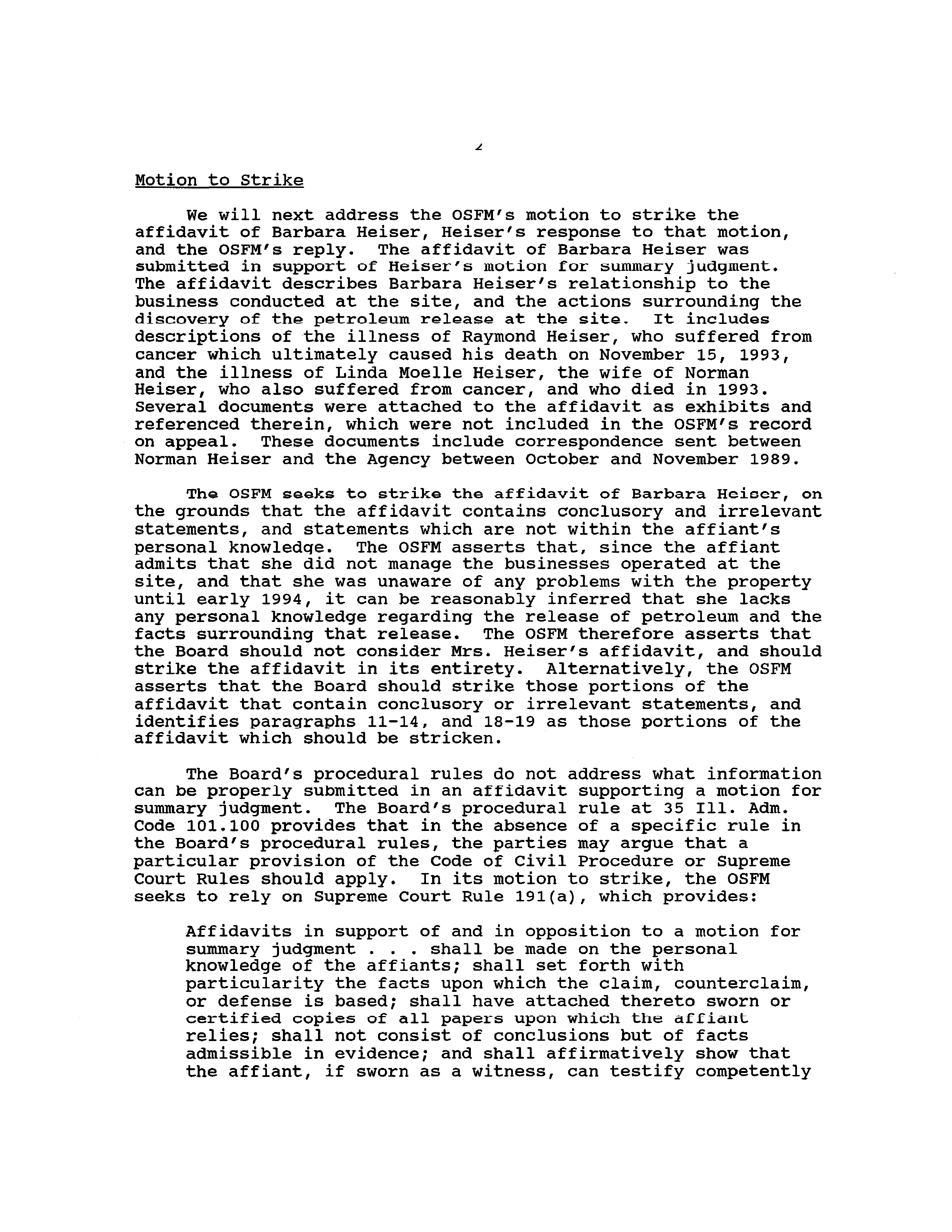 OSFM filed a reply to Heiser’s response to the motion to strike,
