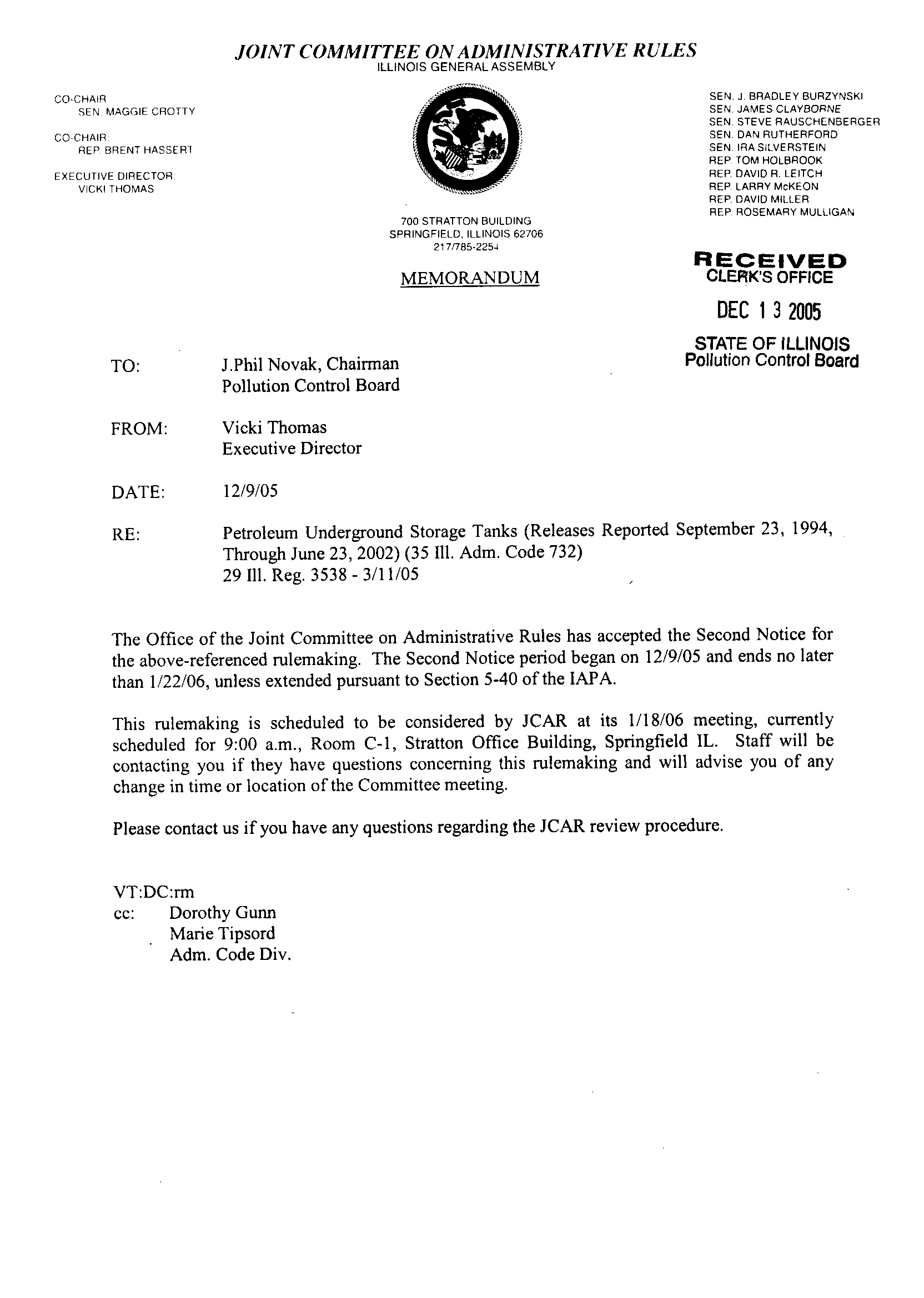 The Office of the Joint Committee on Administrative Rules has accepted the Second Notice for