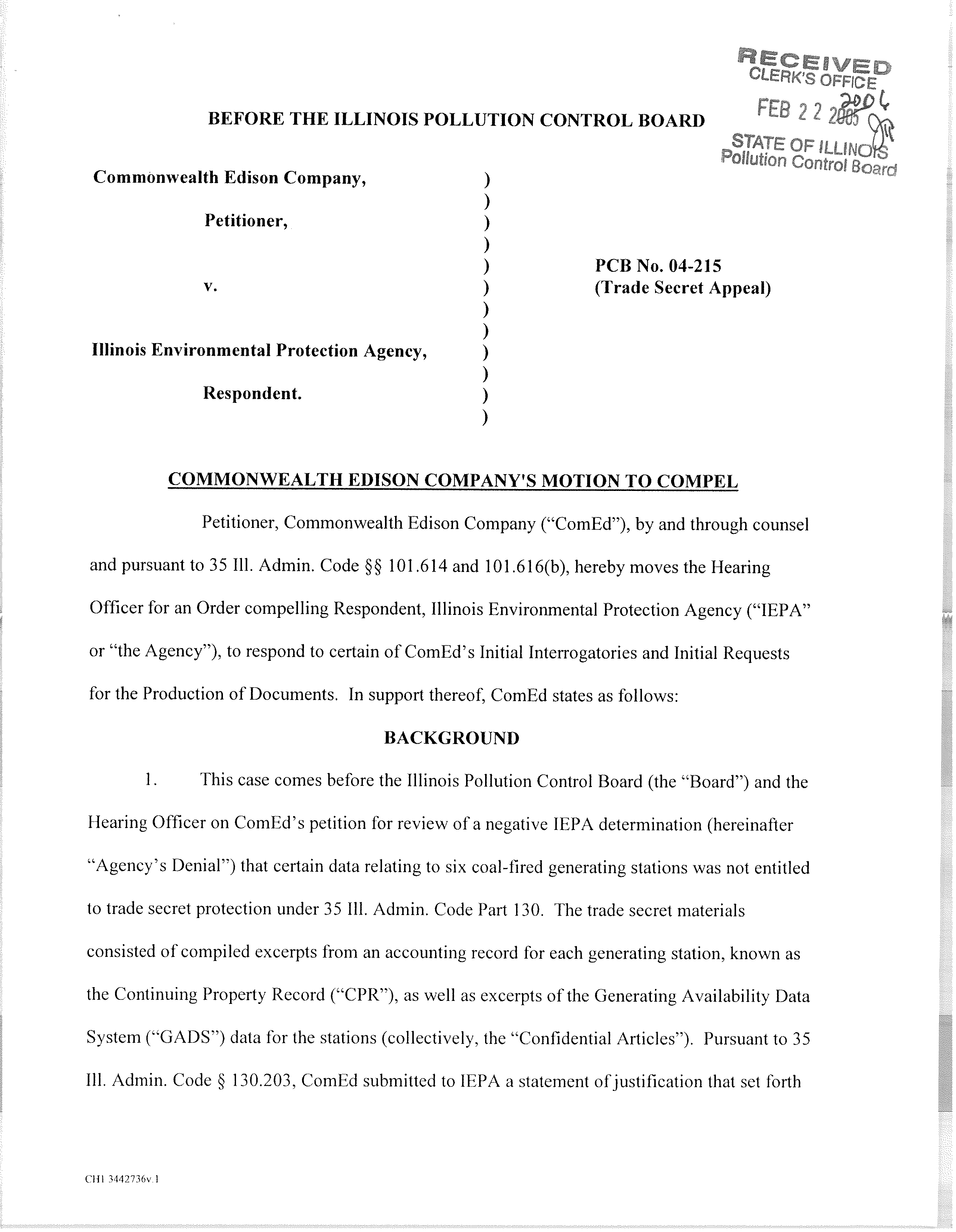 COMMONWEALTH EDISON COMPANY'S MOTION TO COMPEL