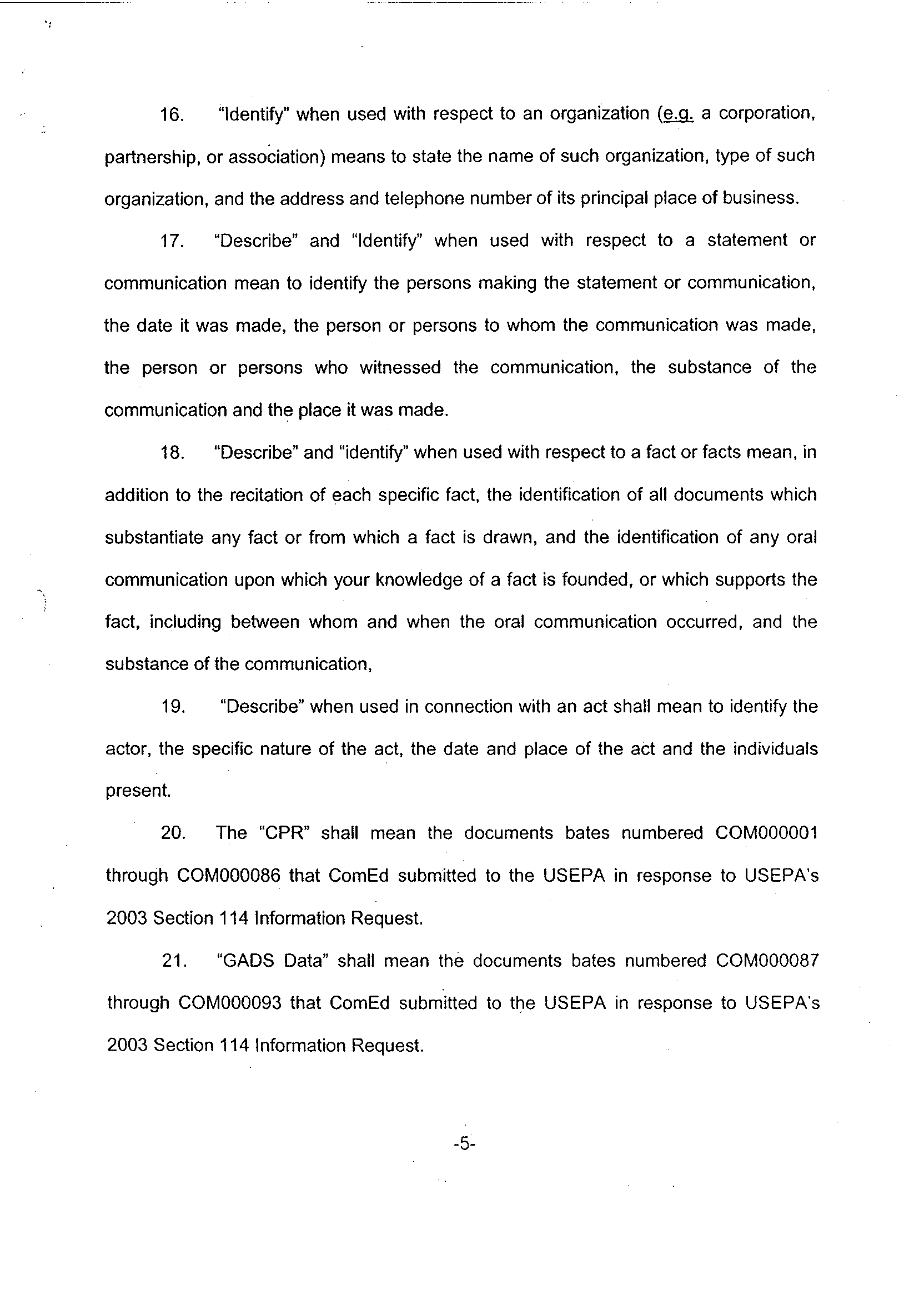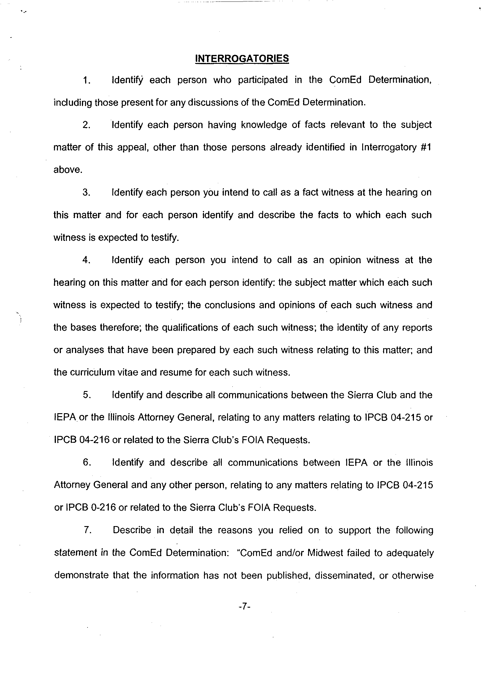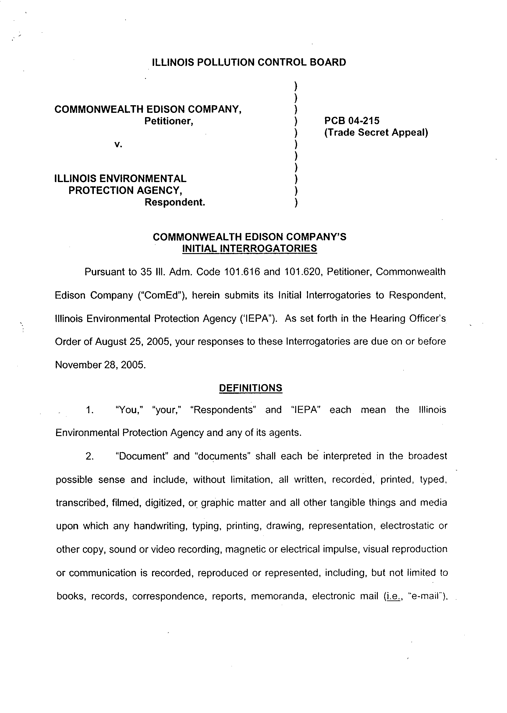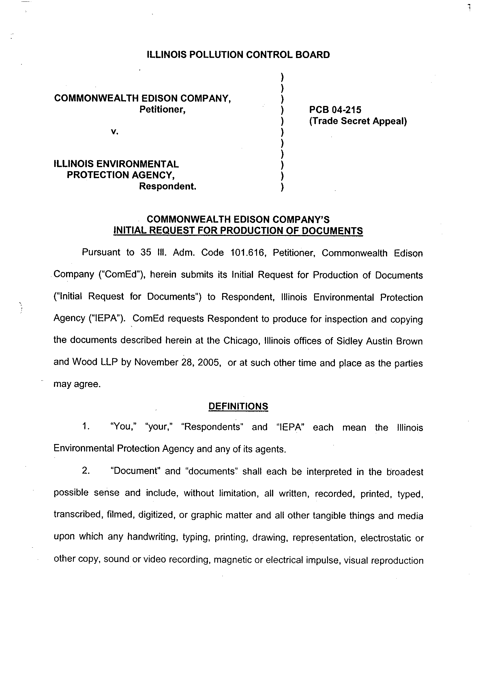 or "the Agency"), to respond to certain of ComEd's Initial Interrogatories and Initial Requests