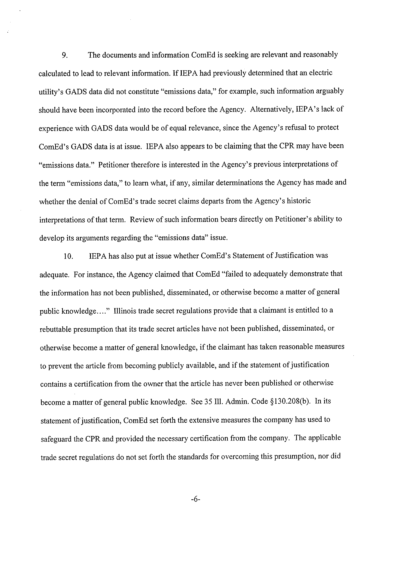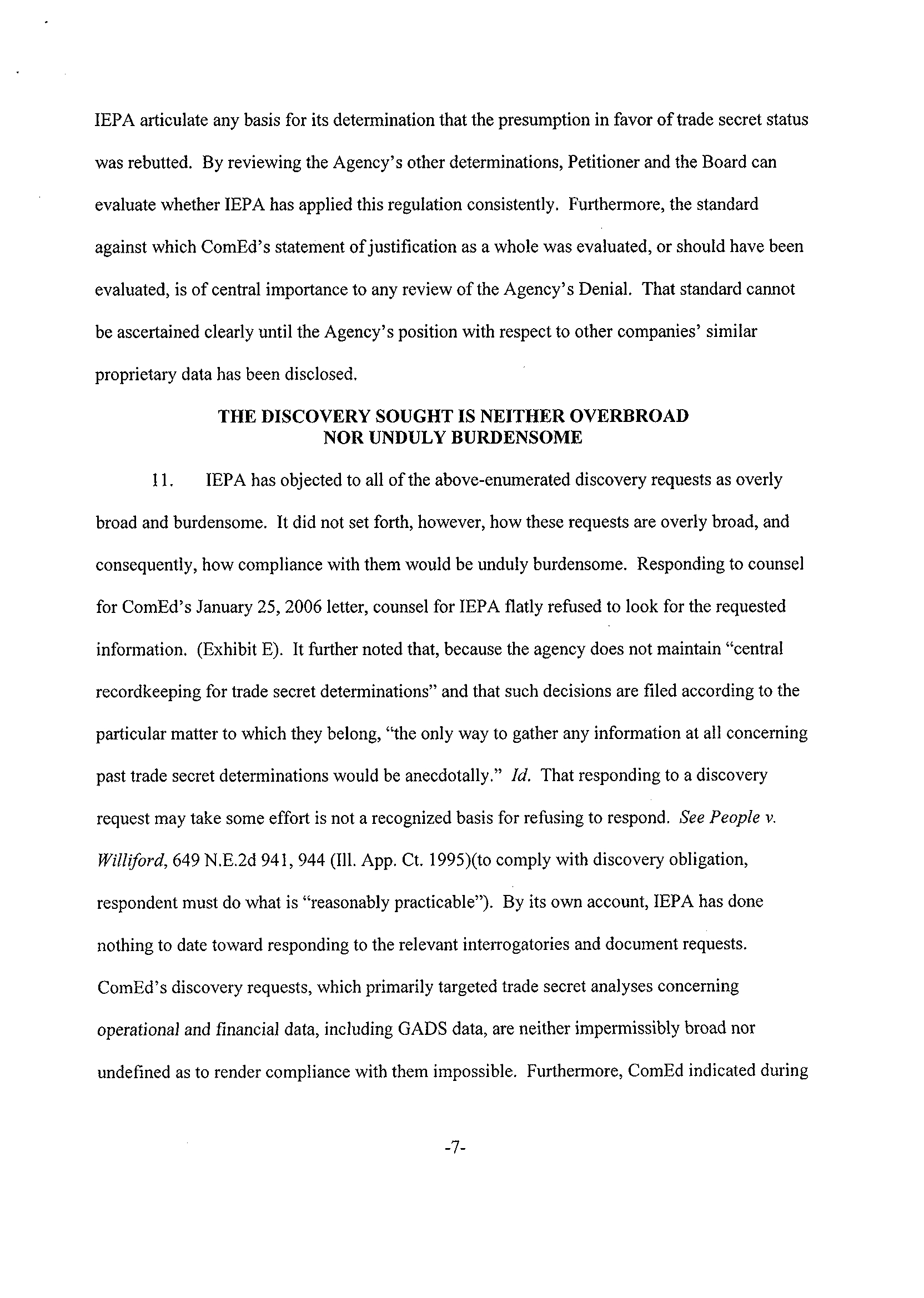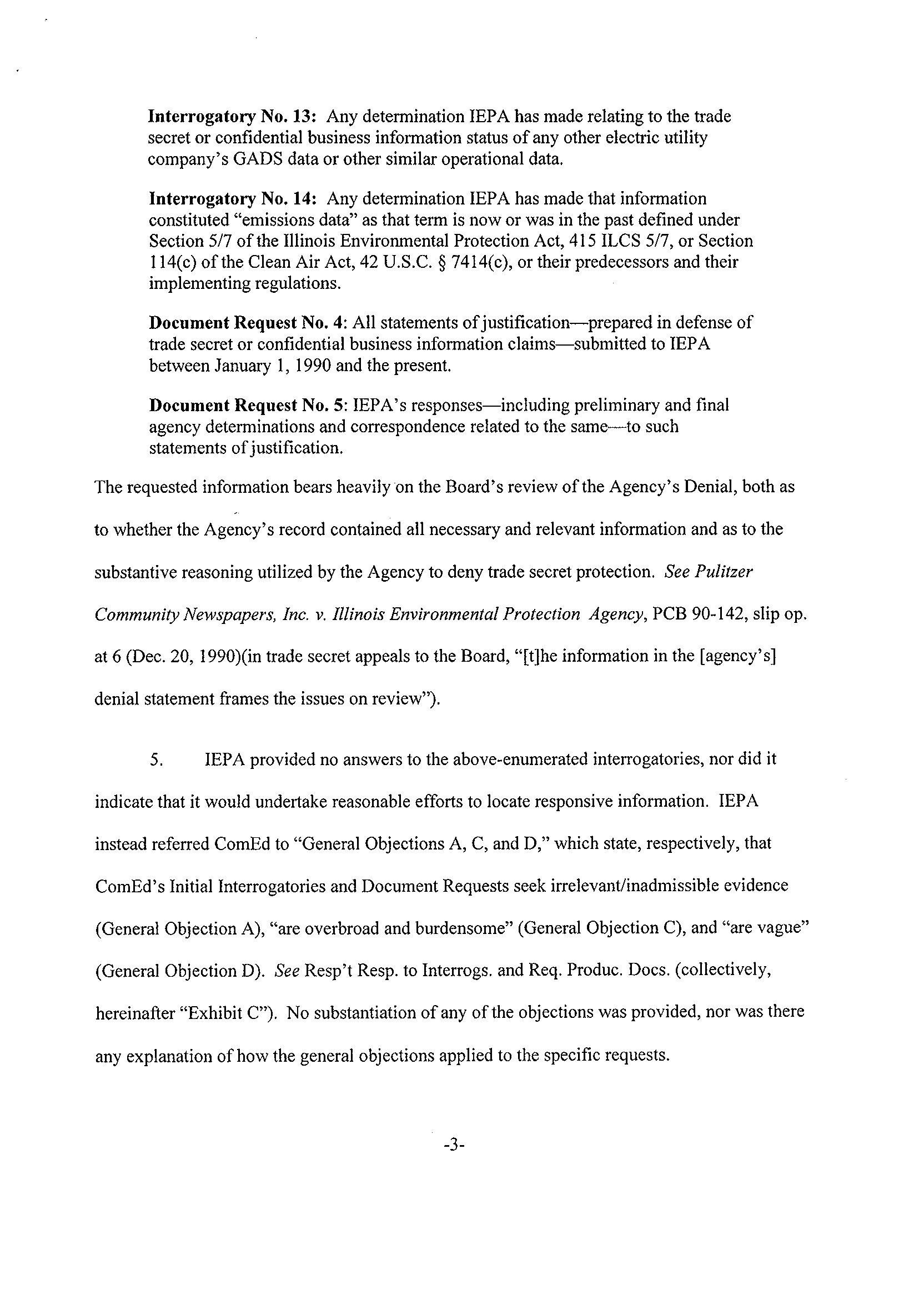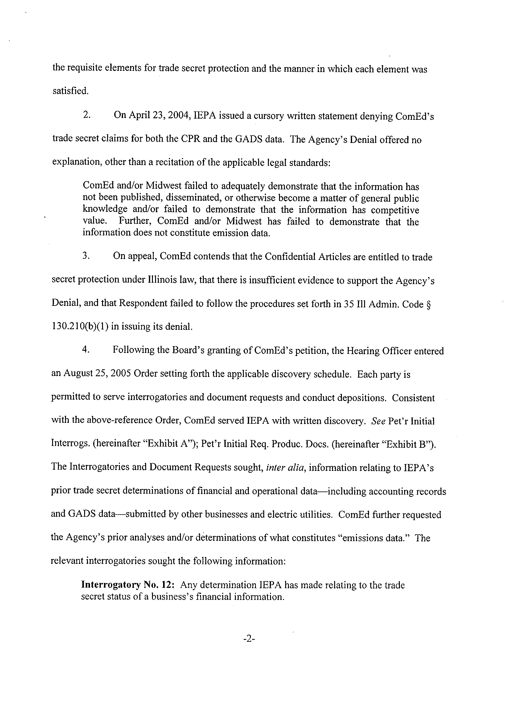 ComEd requests information concerning trade secret decisions dating back to 1990