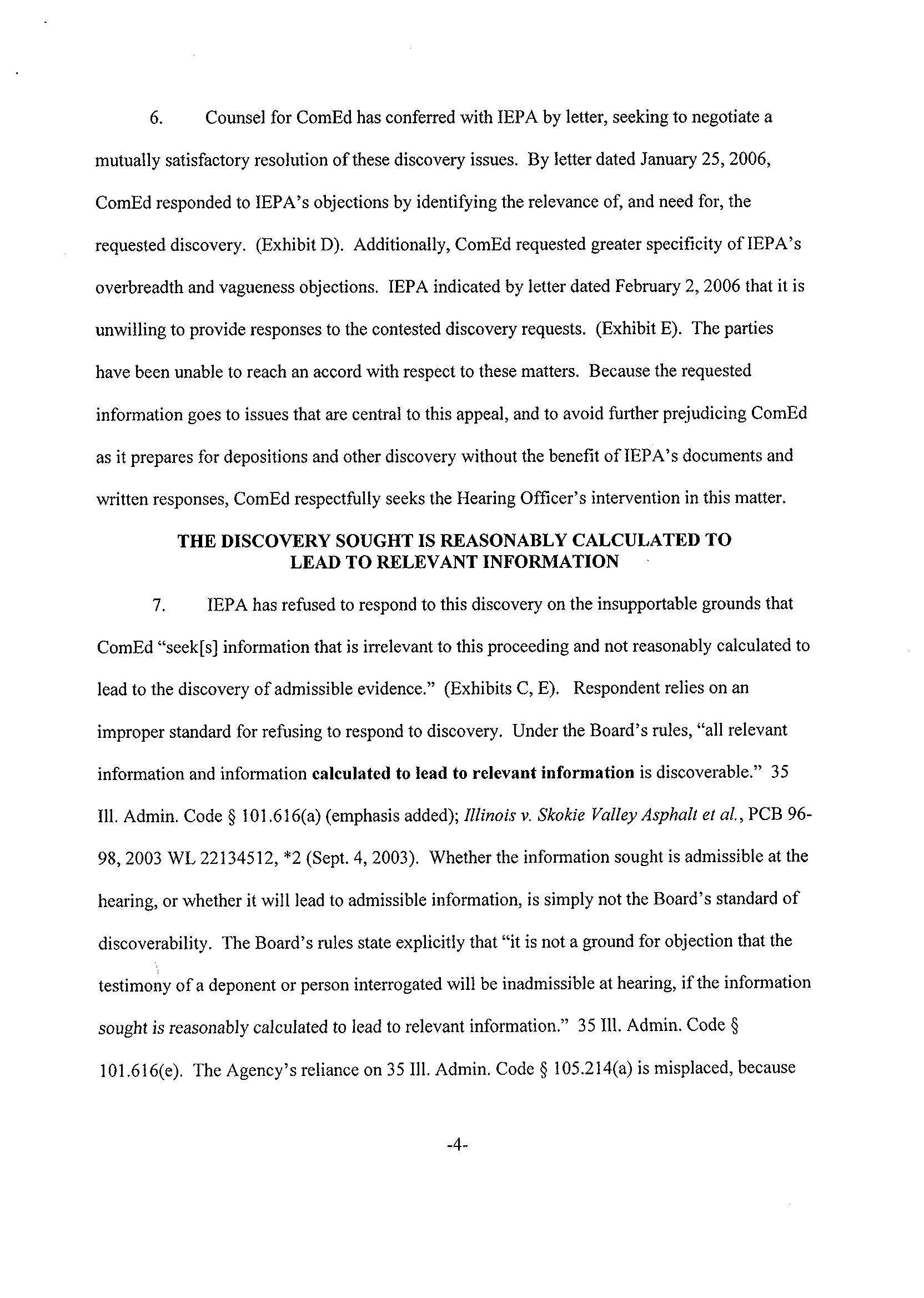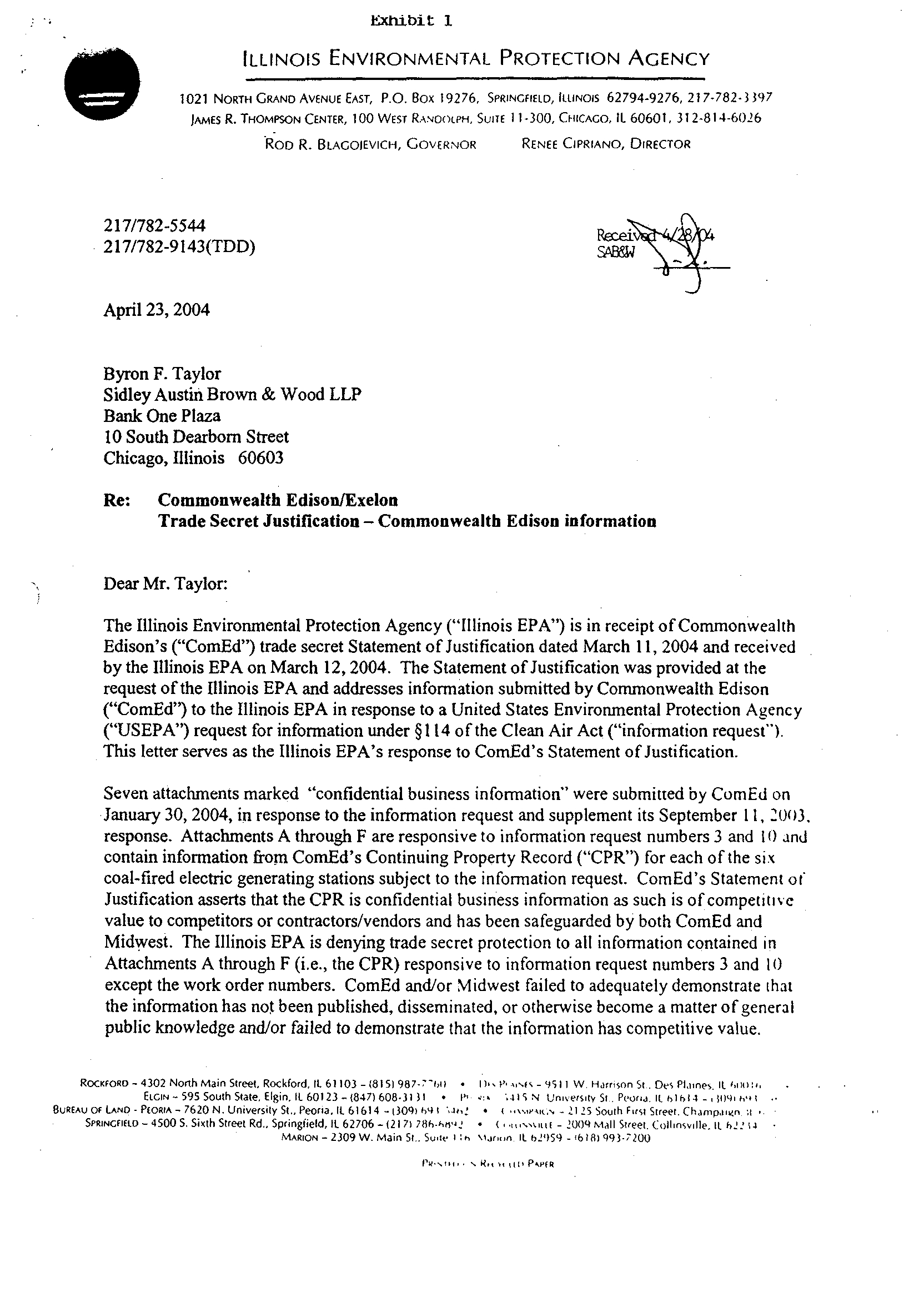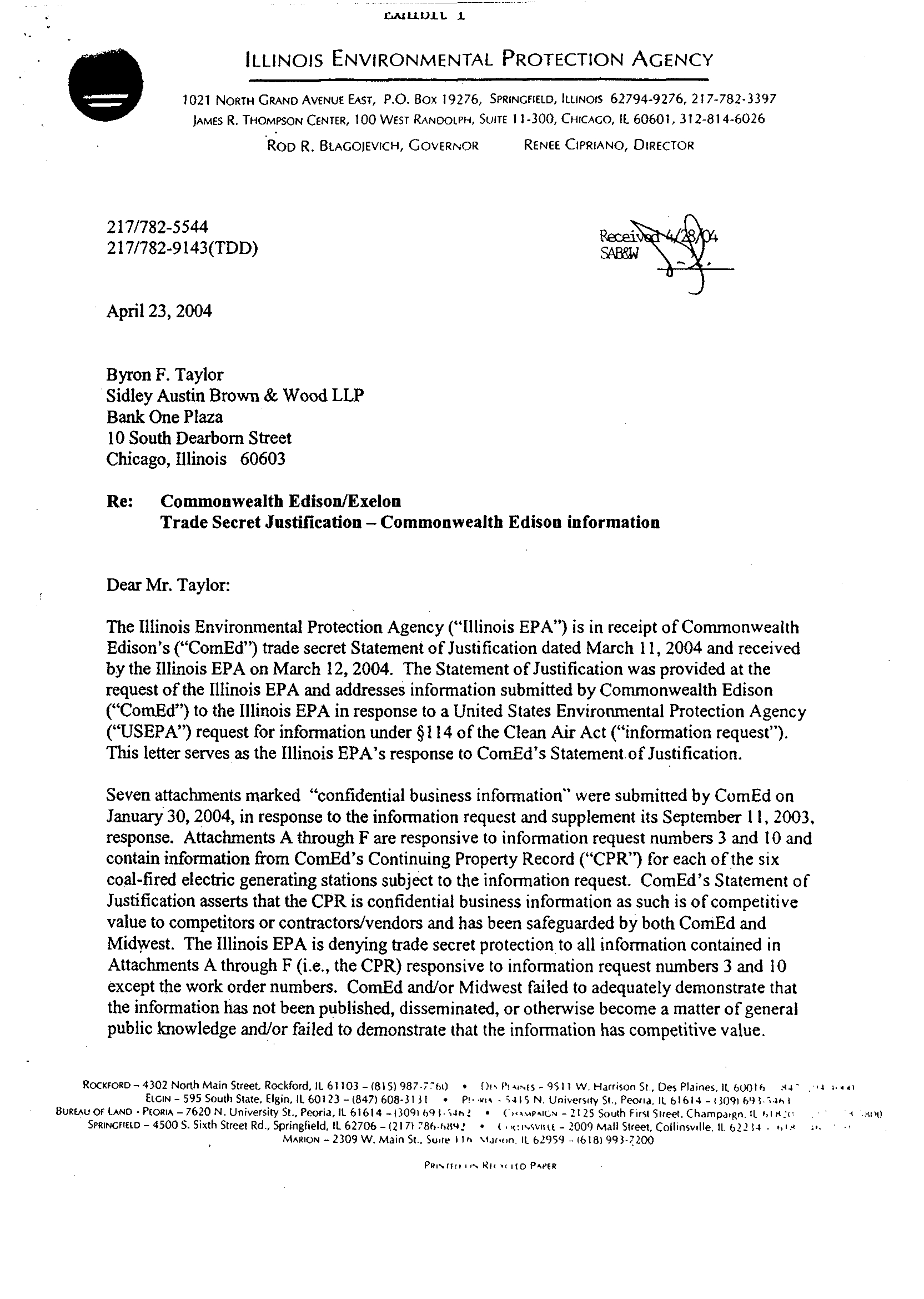 On April 23, 2004, IEPA issued a cursory written statement denying ComEd's