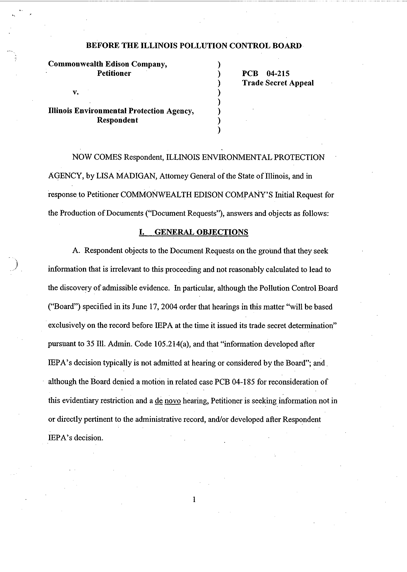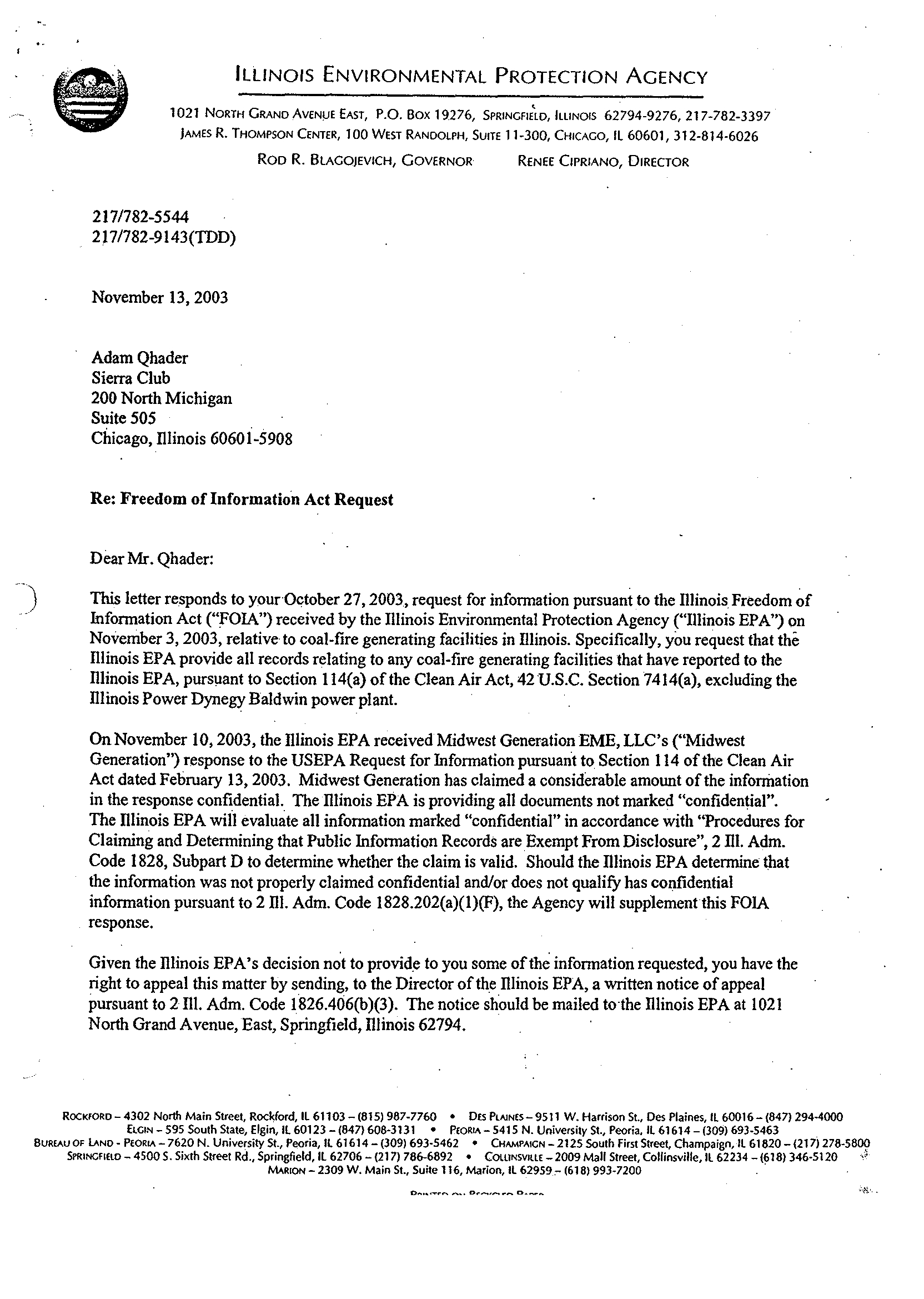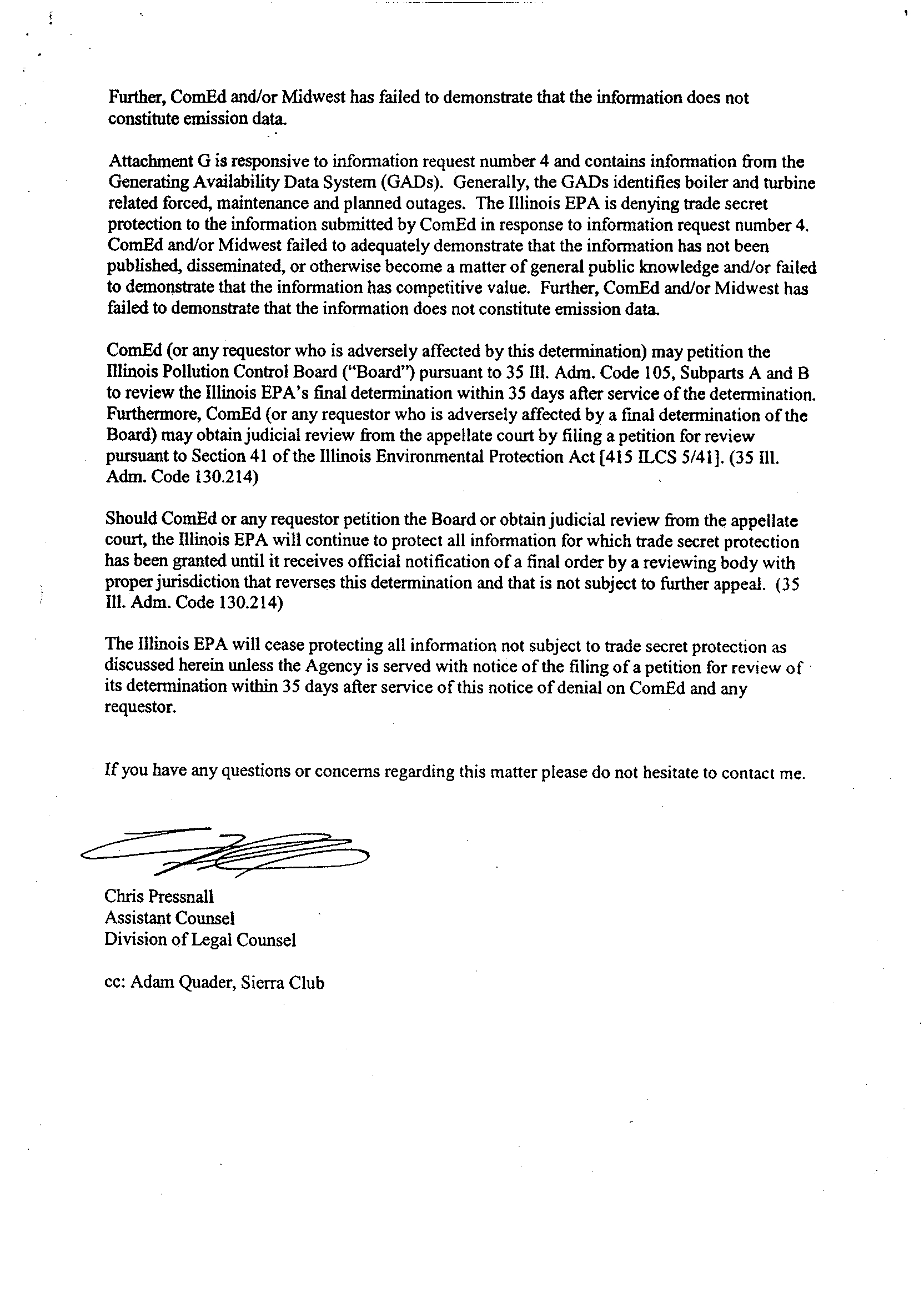 On April 23, 2004, IEPA issued a cursory written statement denying ComEd's