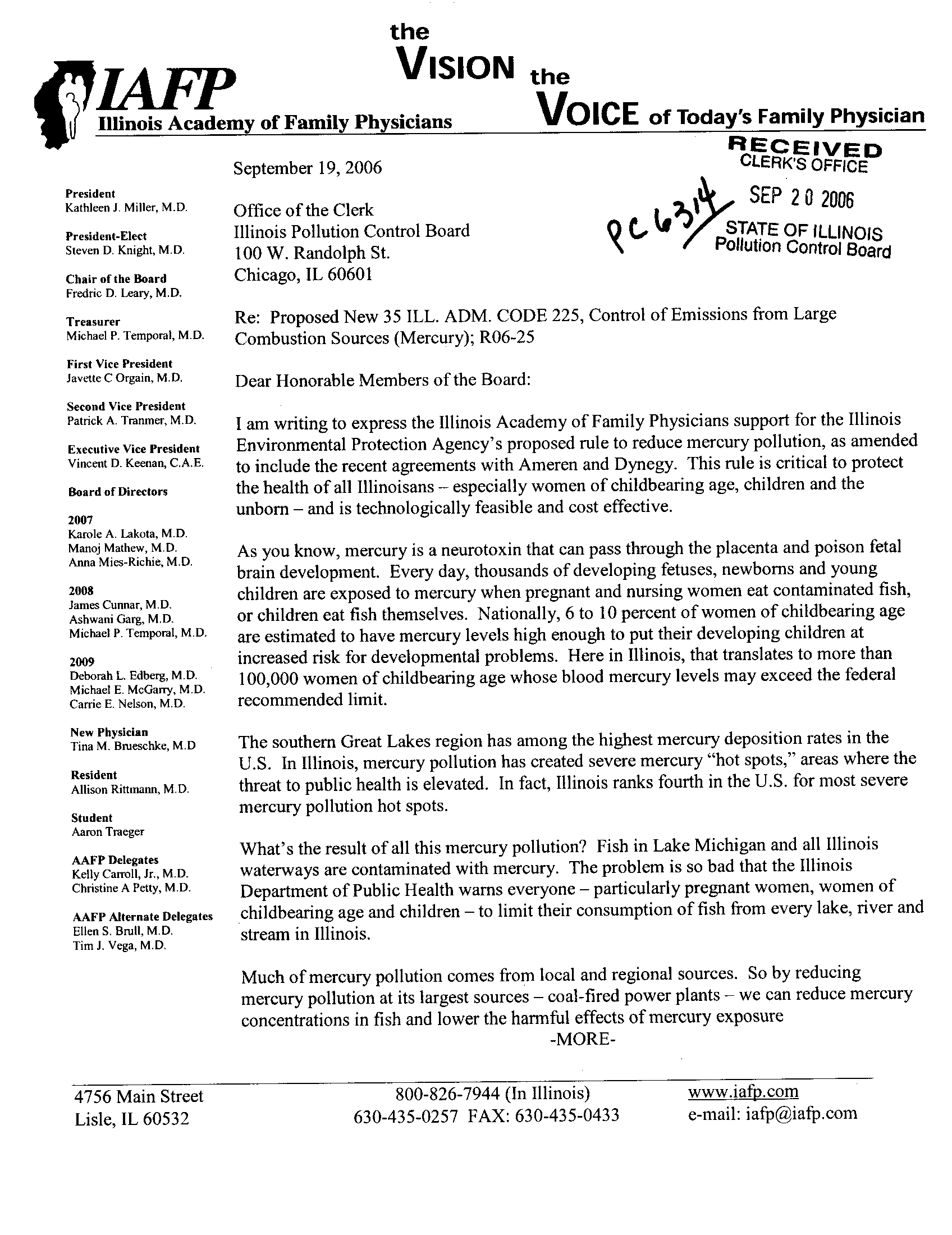 I am writing to express the Illinois Academy of Family Physicians support for the Illinois